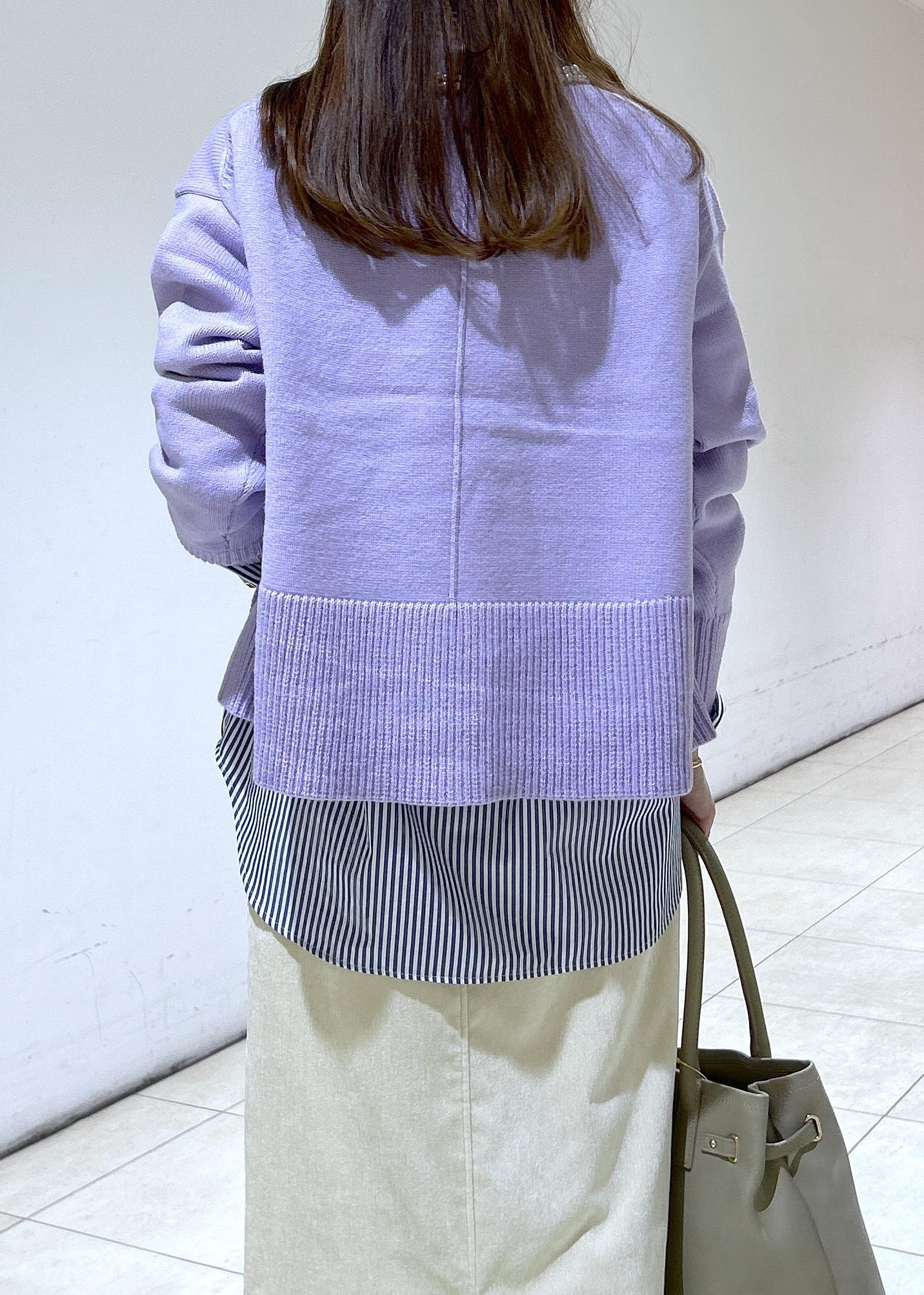 レイヤードスタイルがしやすい一枚となっております。カーディガンや、トレーナーなど合わせるのも相性○ -
