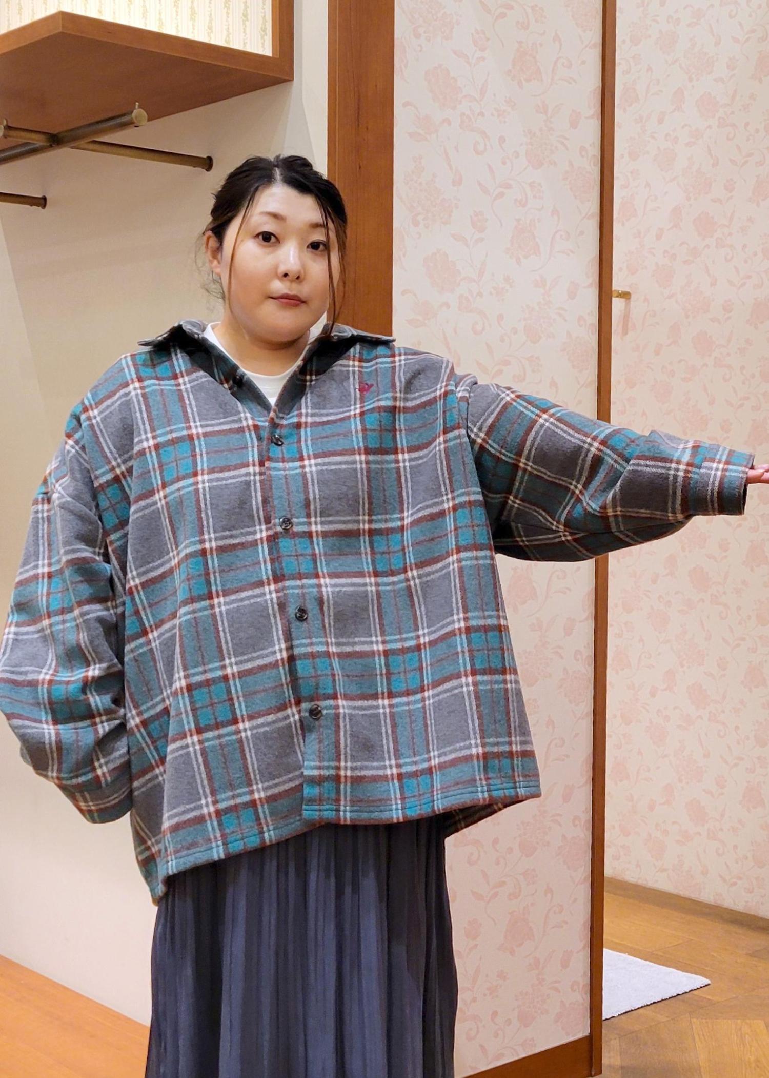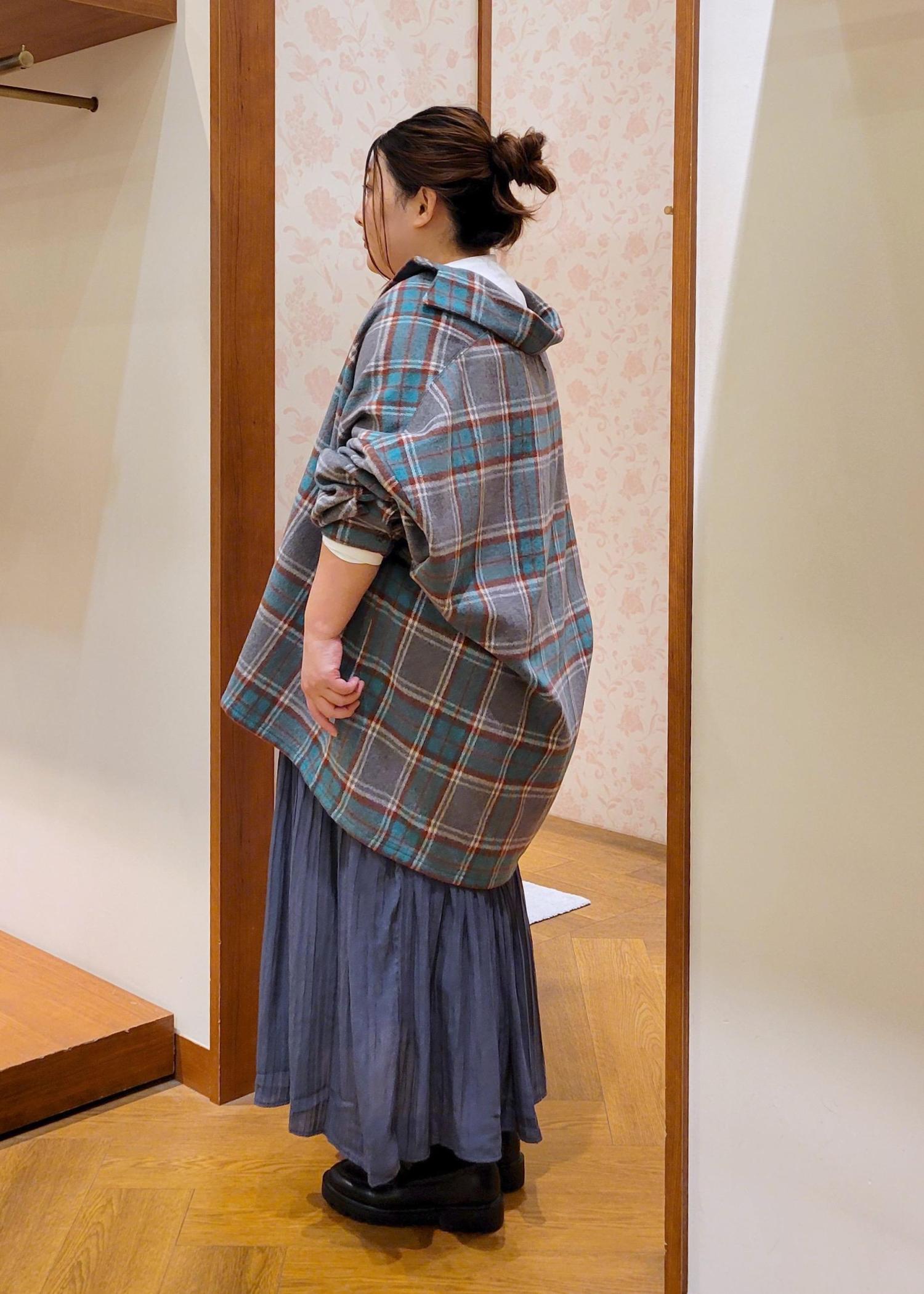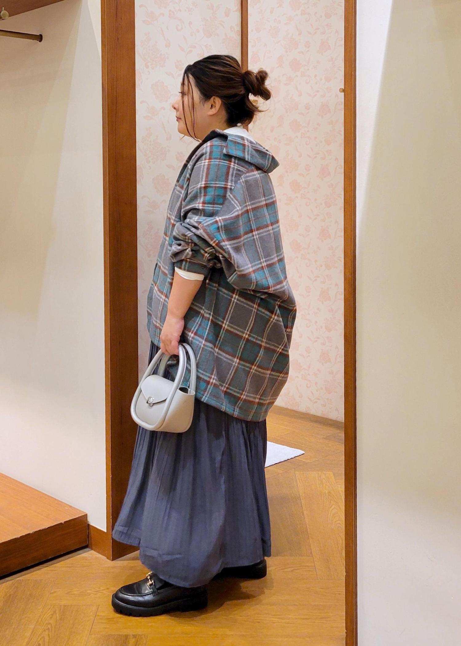 オーバーサイズのシャギーシャツにスカートを合わせた大人カジュアルスタイルです。BIGサイズがとってもお気に入りです。