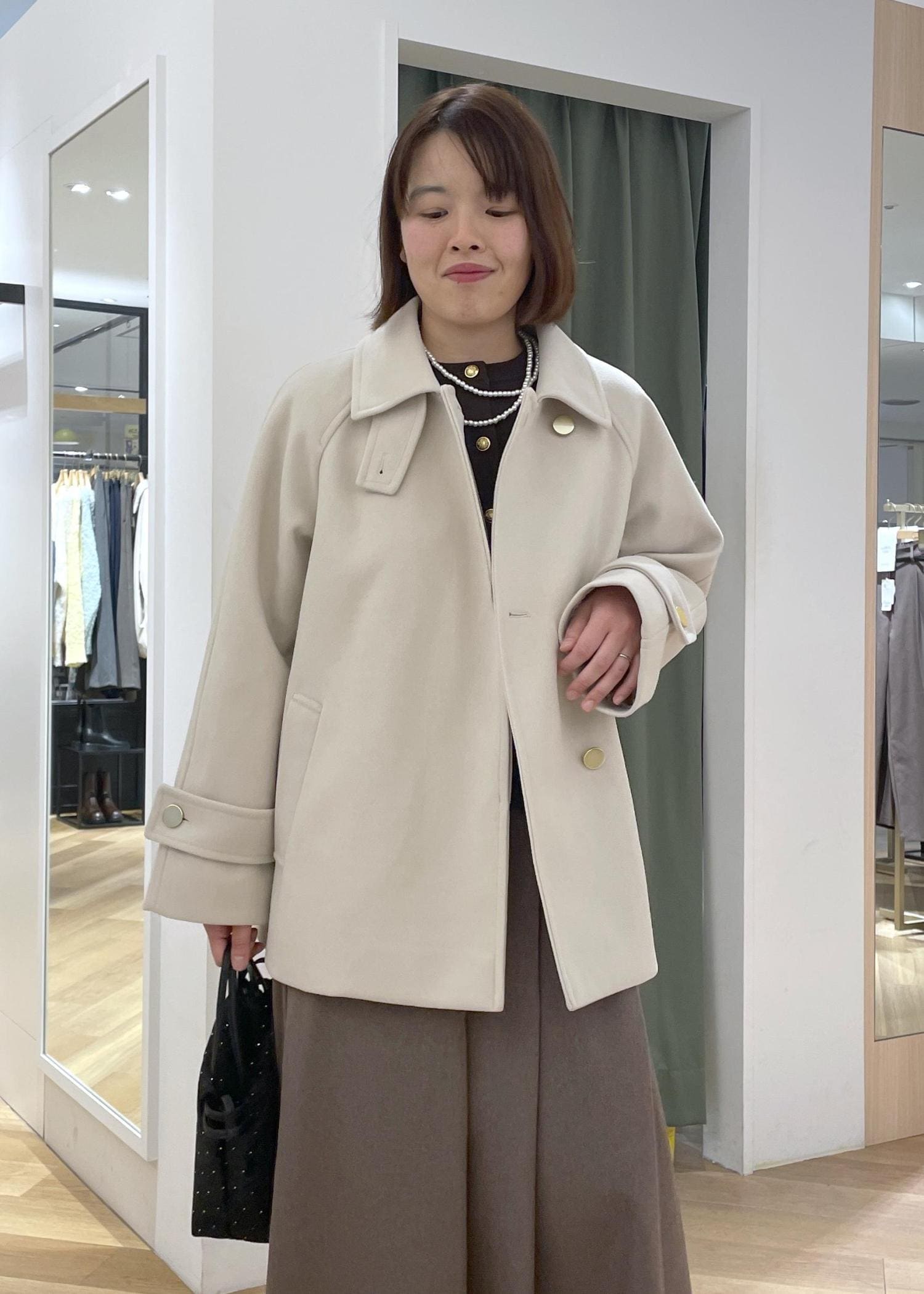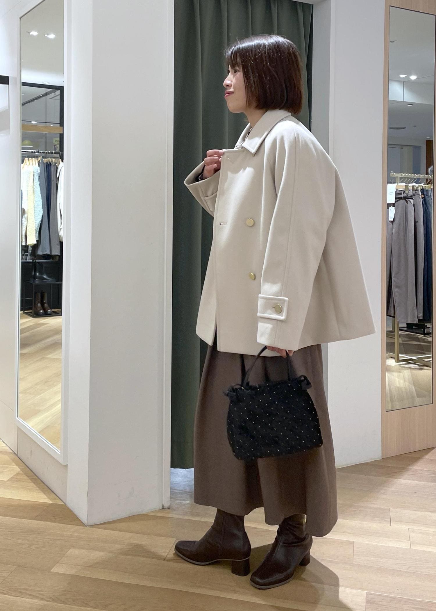 コートの中をブラウン系のカラーでまとめたコーデにしたので、コートベージュ系を合わせて明るさをプラスしました◎