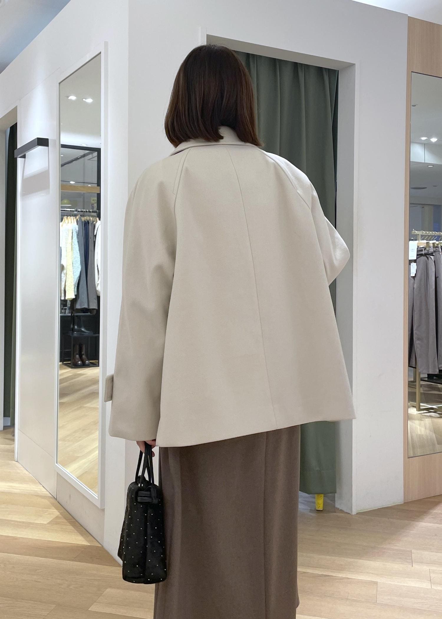 ROPÉ PICNICジャージーメルトンシリーズ 金ボタンミドル丈コート/リンクコーデベージュ / F¥7,692レビュー柔らかく軽い羽織り心地で、とても着やすいアウターです。ゆったりしたサイズ感なので、厚手のニットの上からでも羽織れます。また寒さが厳しい時期はインナーダウンを仕込んで着用するのもおすすめです。着丈はヒップが隠れるくらいの長さで、パンツにもスカートにも合わせやすいです。