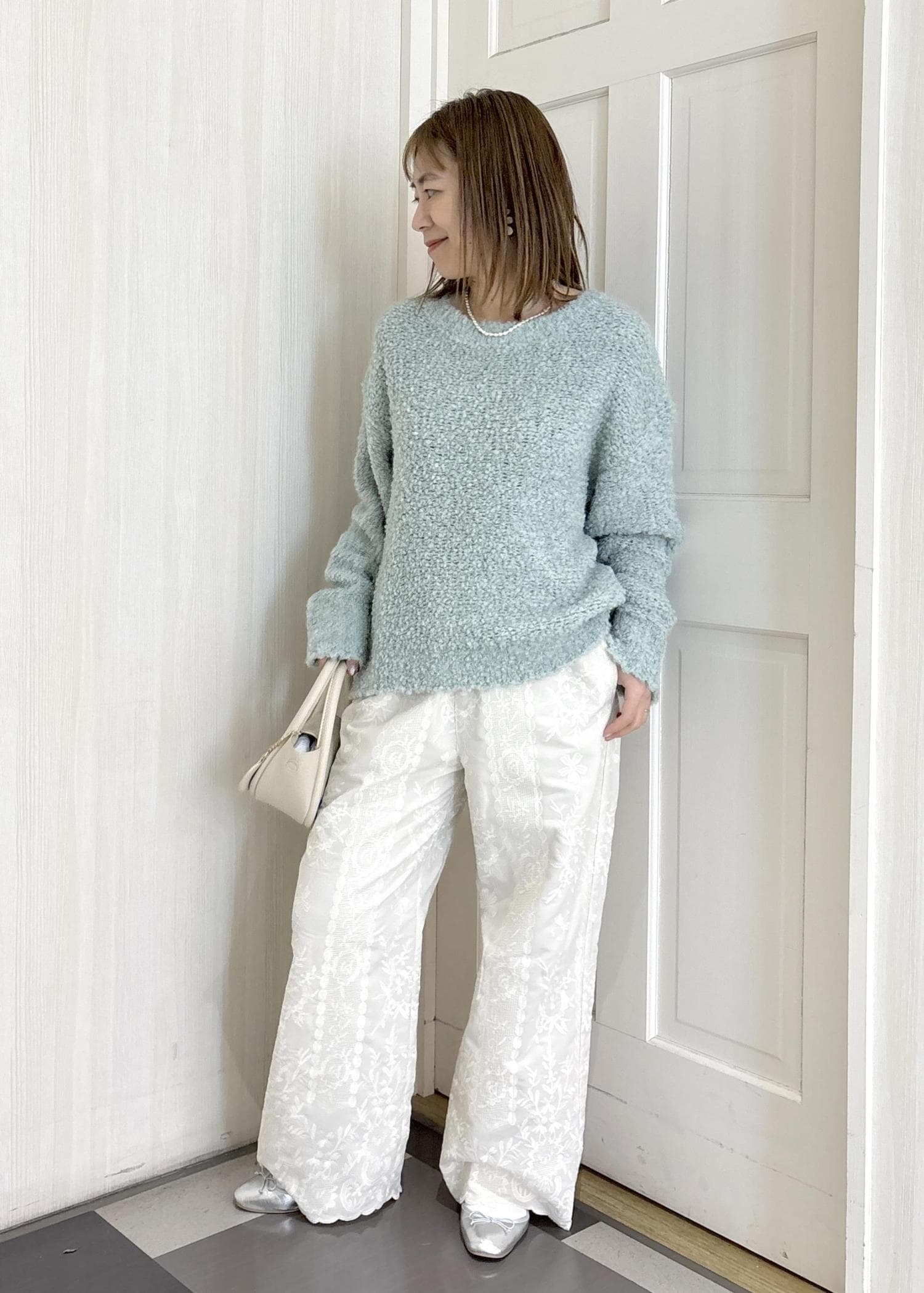 ROPÉ PICNICブークレカラーニットライトグリーン / F¥4,940レビューぷくぷくモコモコの風合いと、ミルキーカラーが可愛いニットです♡