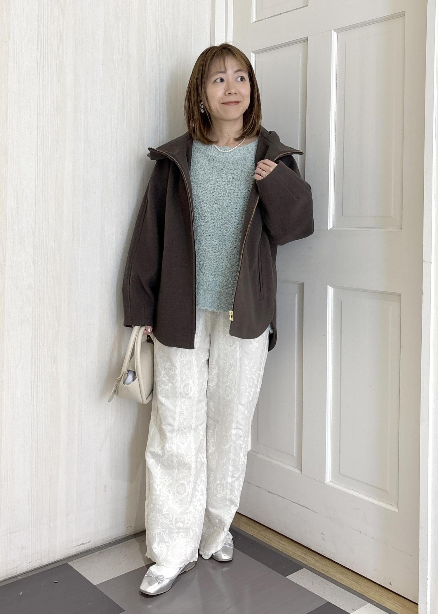 とっても可愛いカラーニットは、合わせるもの考えるのが楽しいし、身体のラインを拾わず着痩せして見せてくれるので個人的におすすめしてます♡