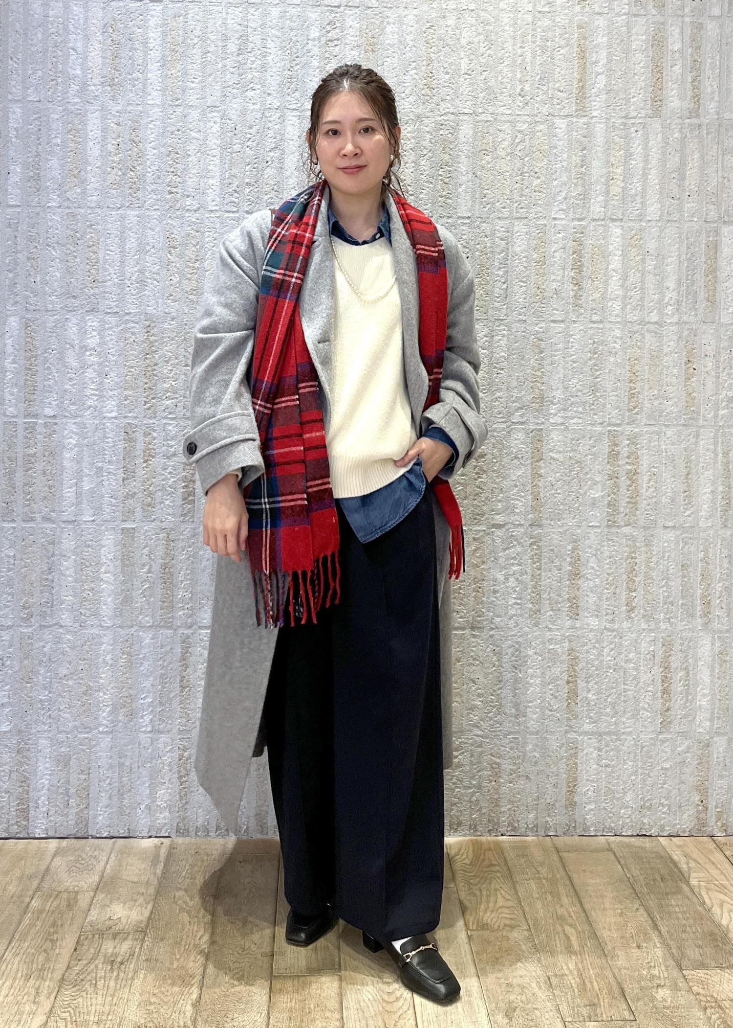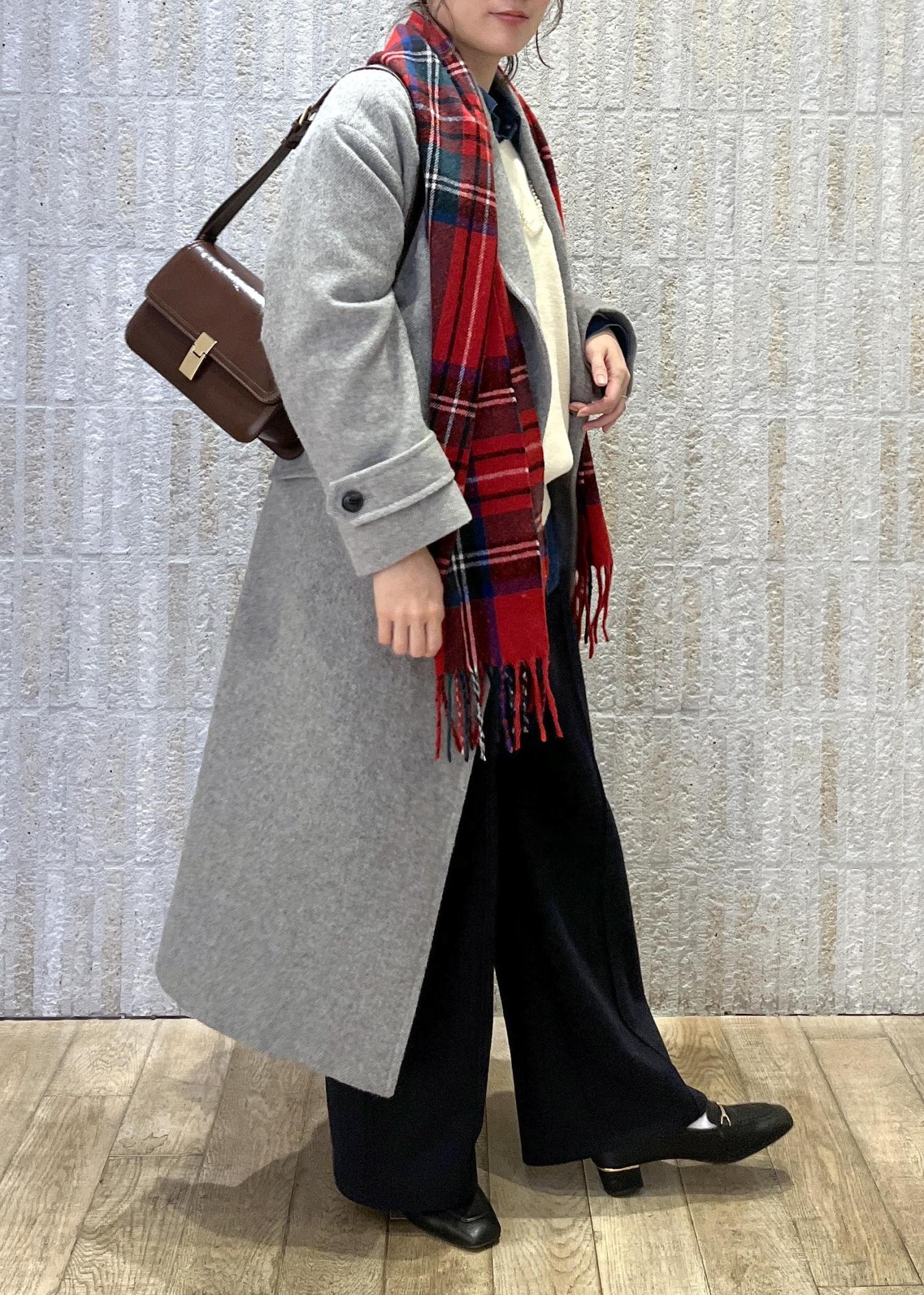 12月〜はウール素材のロングコートが暖かくおしゃれ見えも叶うためオススメ。