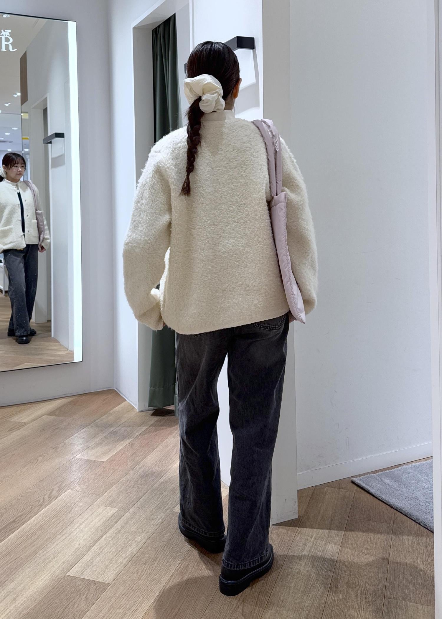 158cmでヒップが半分隠れるほどの丈感で、腰周りまでしっかり温かいです。 -