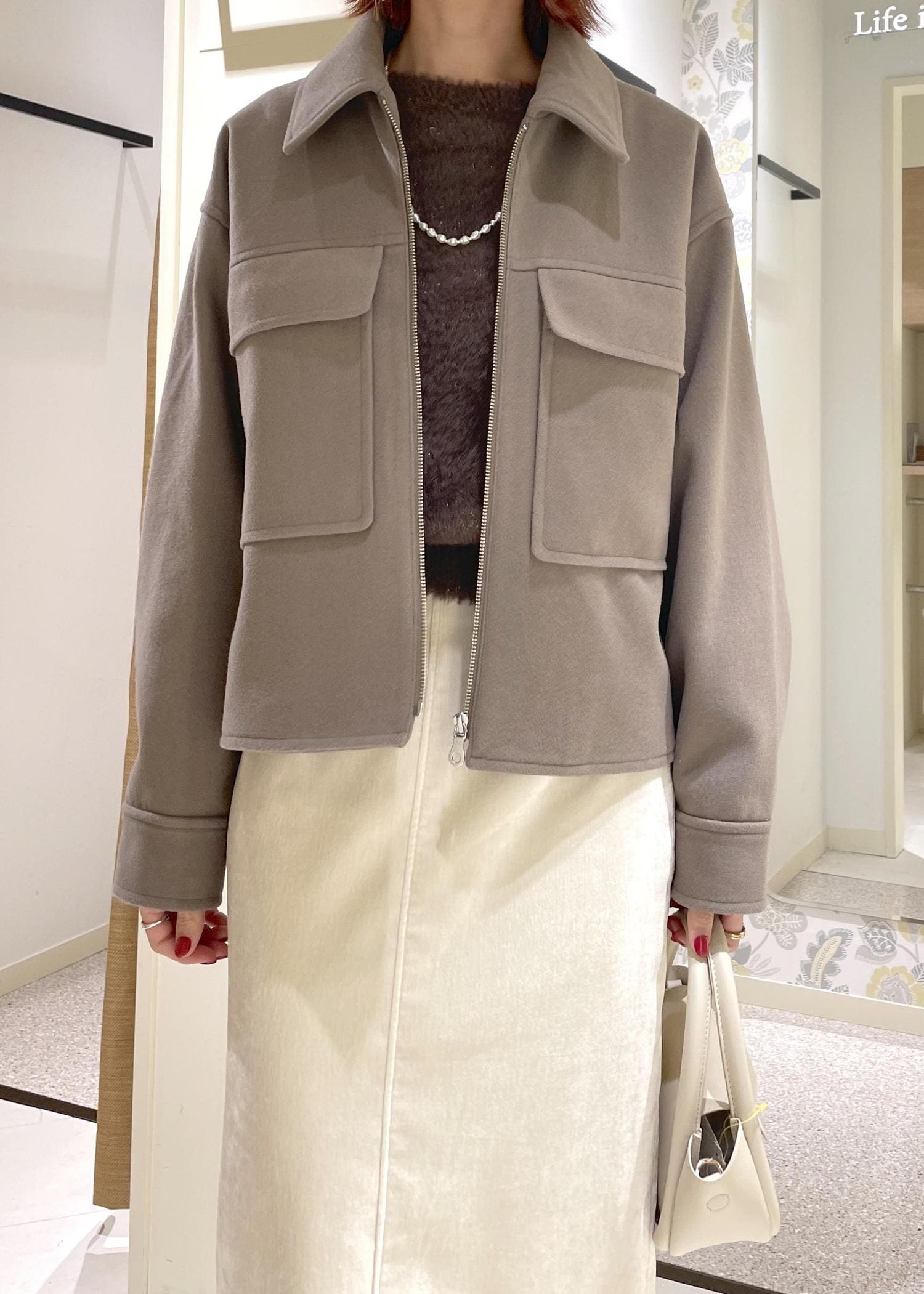 ジップブルゾンはすっきりとした着丈でバランス良くスタイルアップも狙えます◎