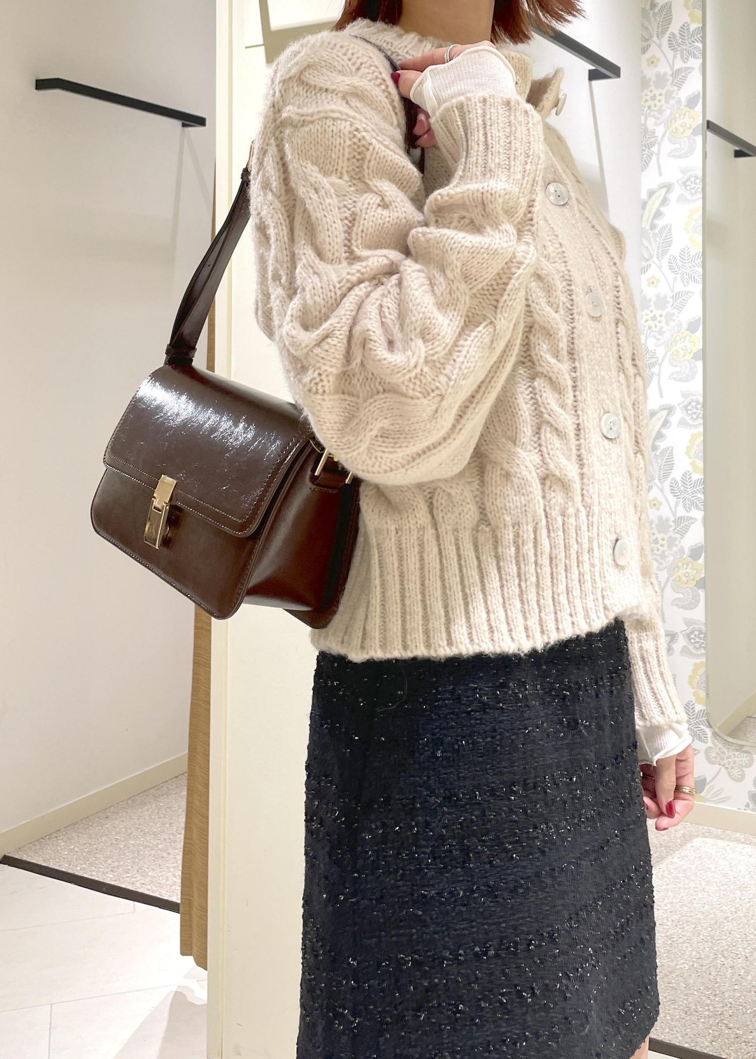 大きめのケーブル編みのデザインがコーディネートのポイントにもピッタリです◎