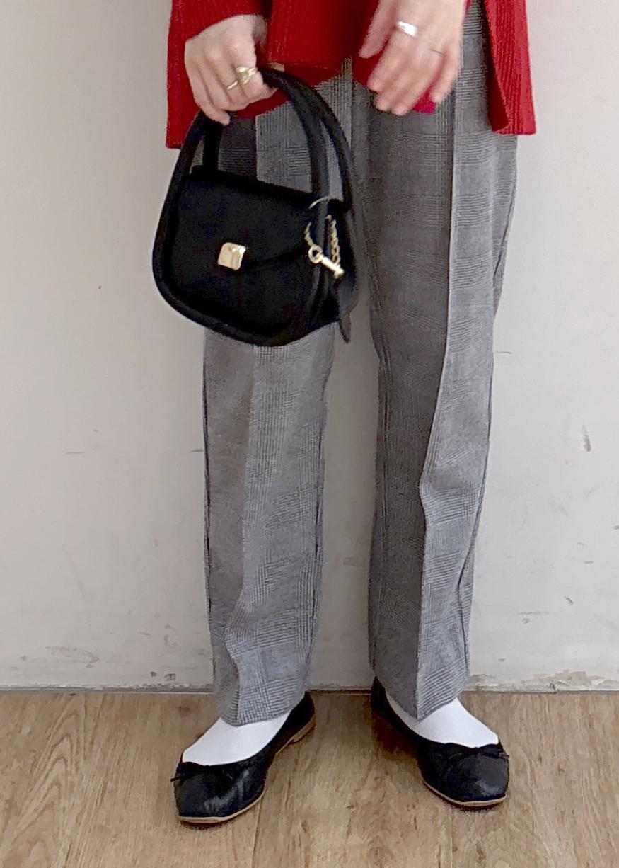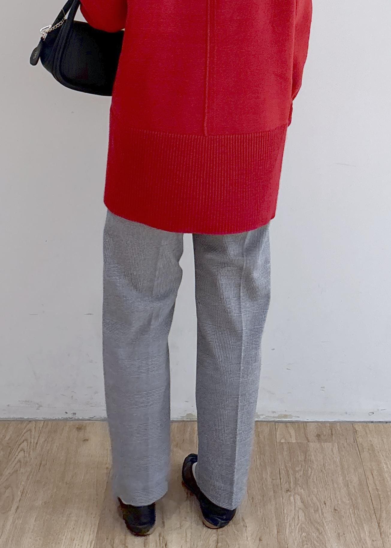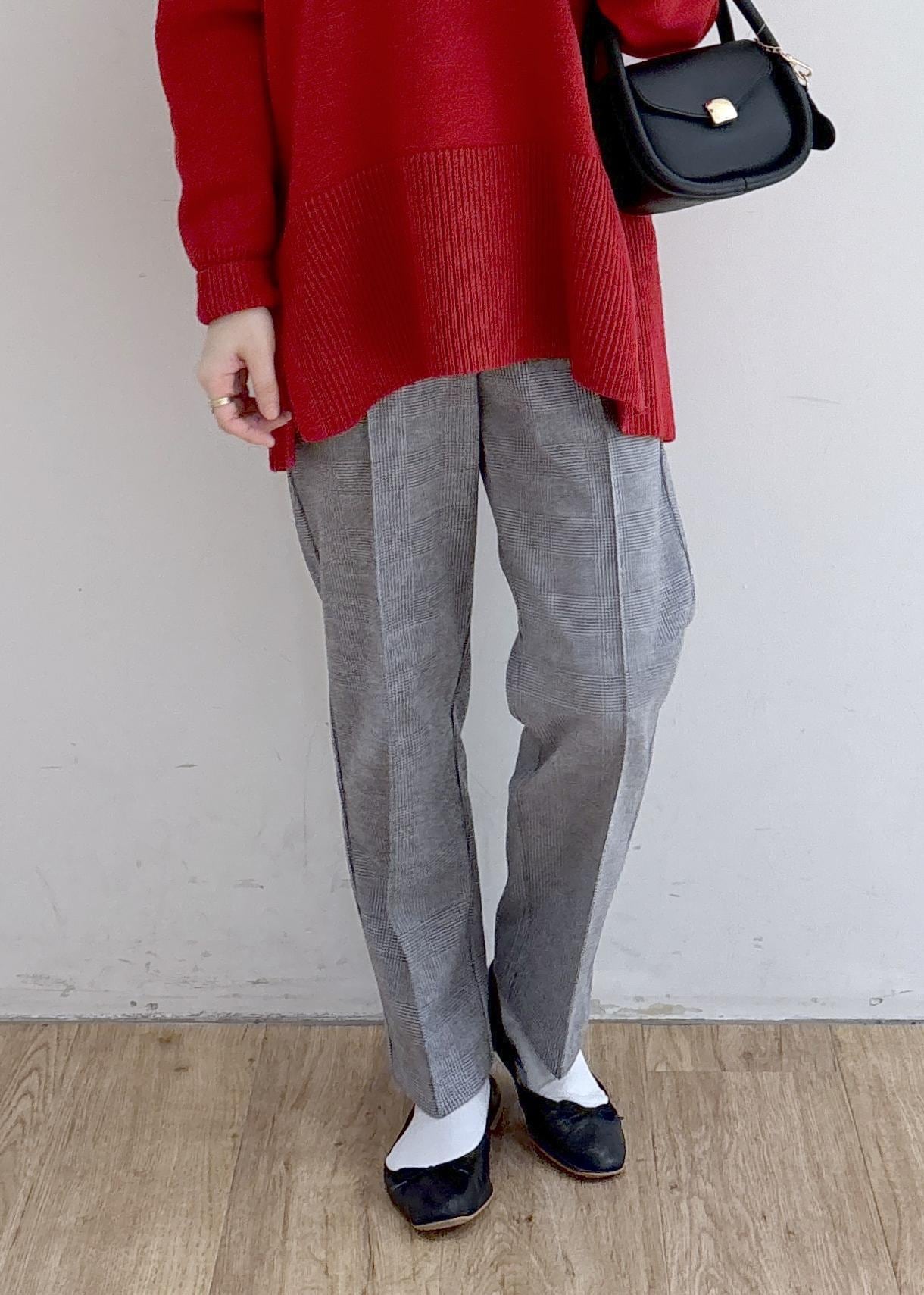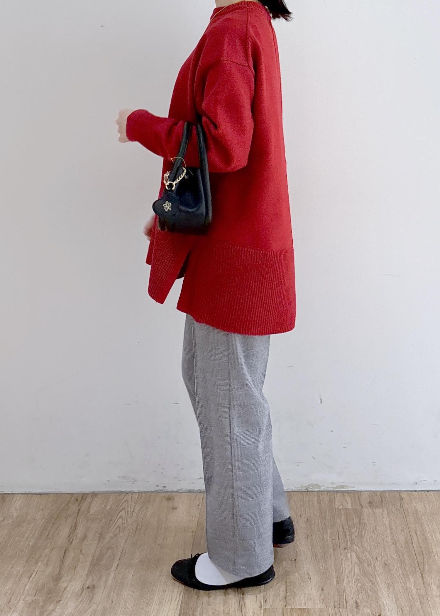 赤ニットを主役に楽チンおでかけコーデを組みました。カラーアイテムは気持ちも弾むのでおすすめです◎