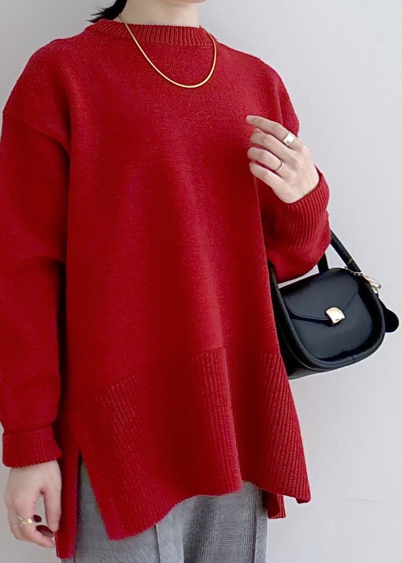 ROPÉ PICNIC【新色追加】着丈が選べるクルーネックサイドスリットニットプルオーバー/イージーケアレッド / MT¥3,993レビューロペピクニック定番のニットです。MTでヒップラインがすっぽり隠れます。幅はゆったりで、着用が楽です。