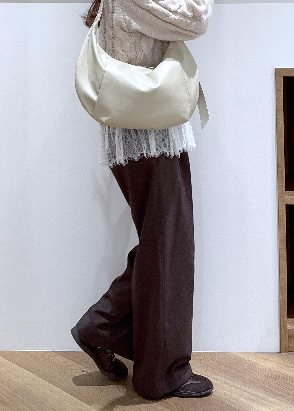 ワイドパンツですが、裾は広がりすぎない印象なのできれいめなコーディネートとも相性が良いです。