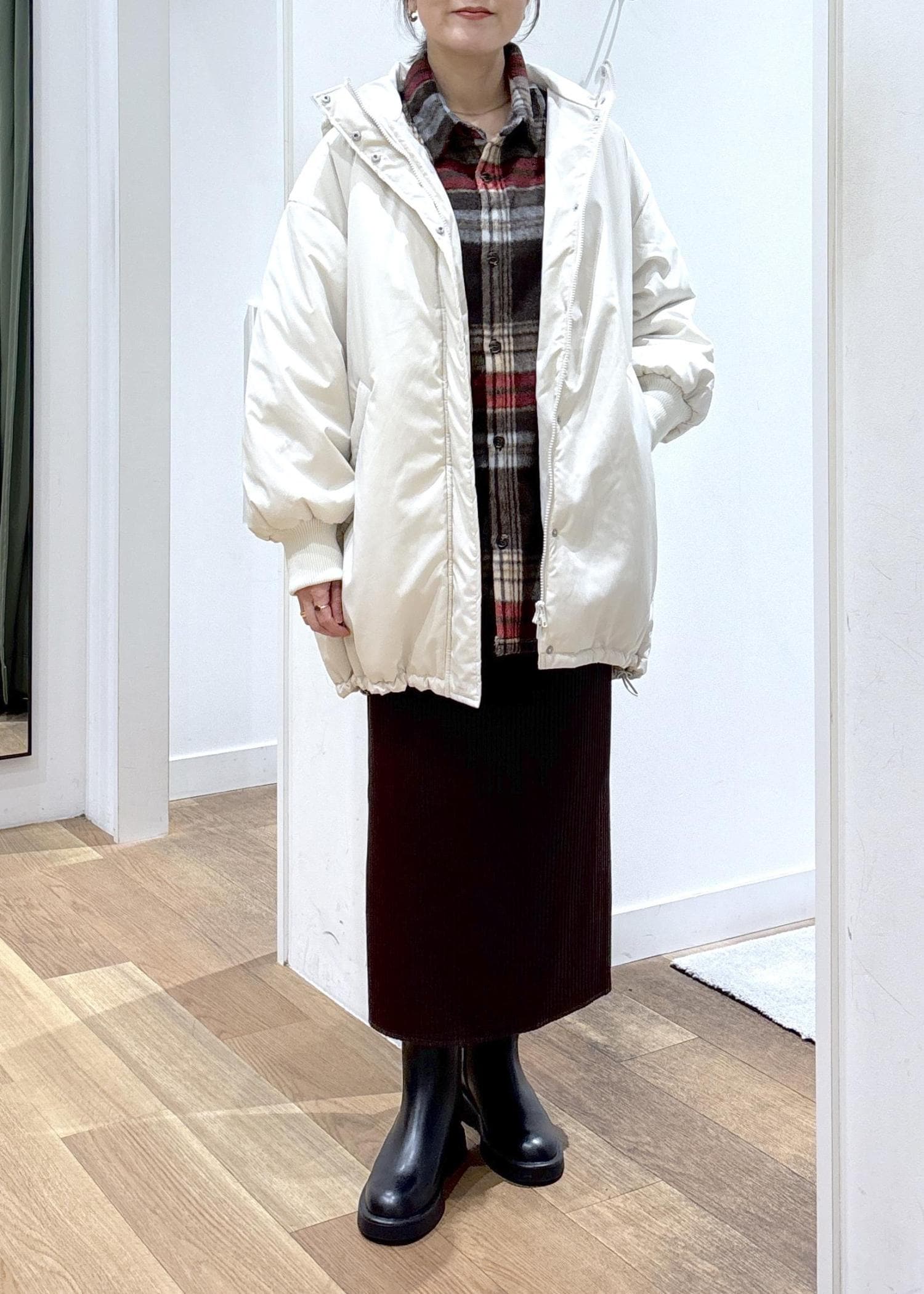 ROPÉ PICNIC中綿モンスターコートキナリ / F¥6,999レビュー中綿がしっかり厚めに入っており、軽く暖かく着ていただけます。ゆったりとしたオーバーサイズのシルエットで、裾が絞れるので着用時のシルエットを調節していただけます。
