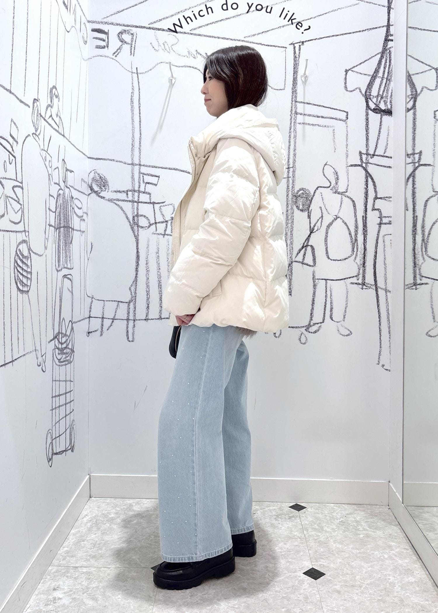 冬本番におすすめのダウンをカジュアルなデニムと併せたスタイリングです。