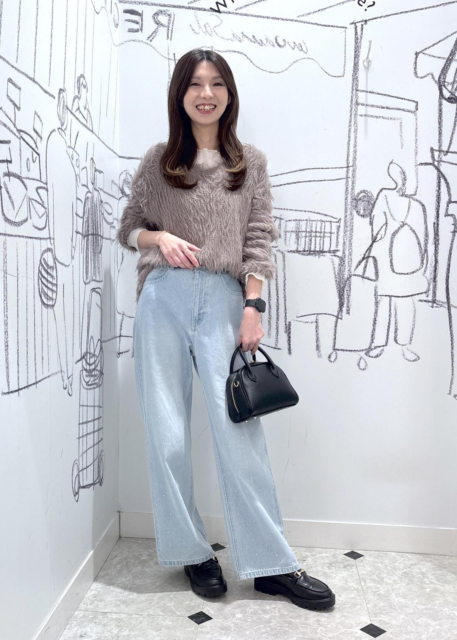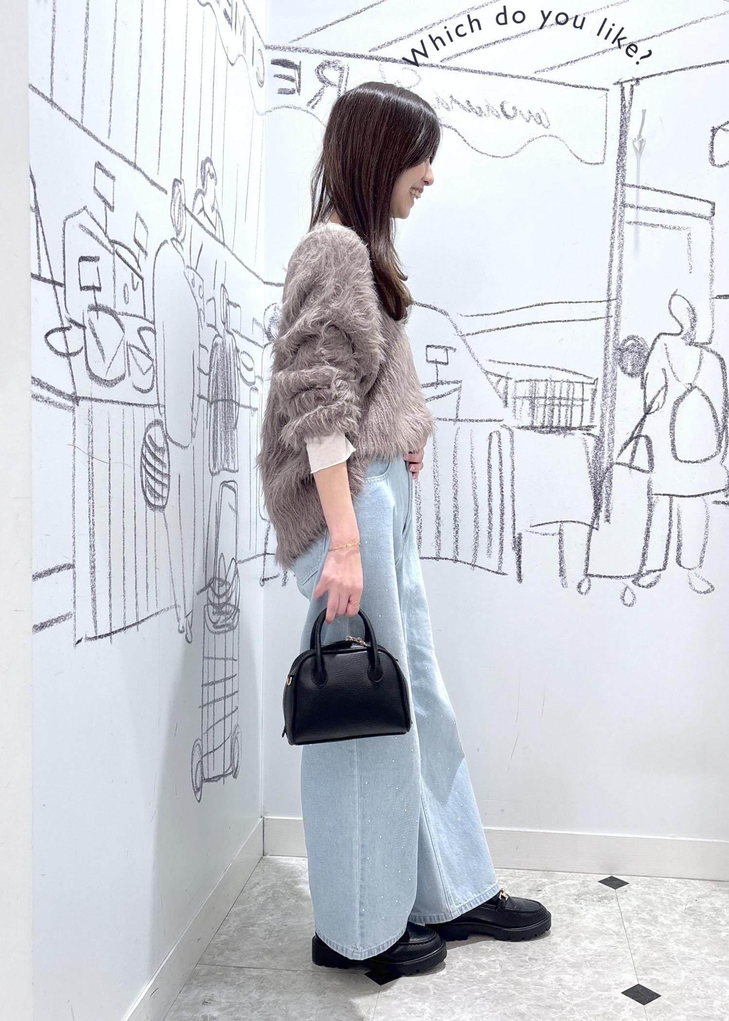 インナーにはフェザーのトップスで、暖かさとトレンド感をプラスしました!