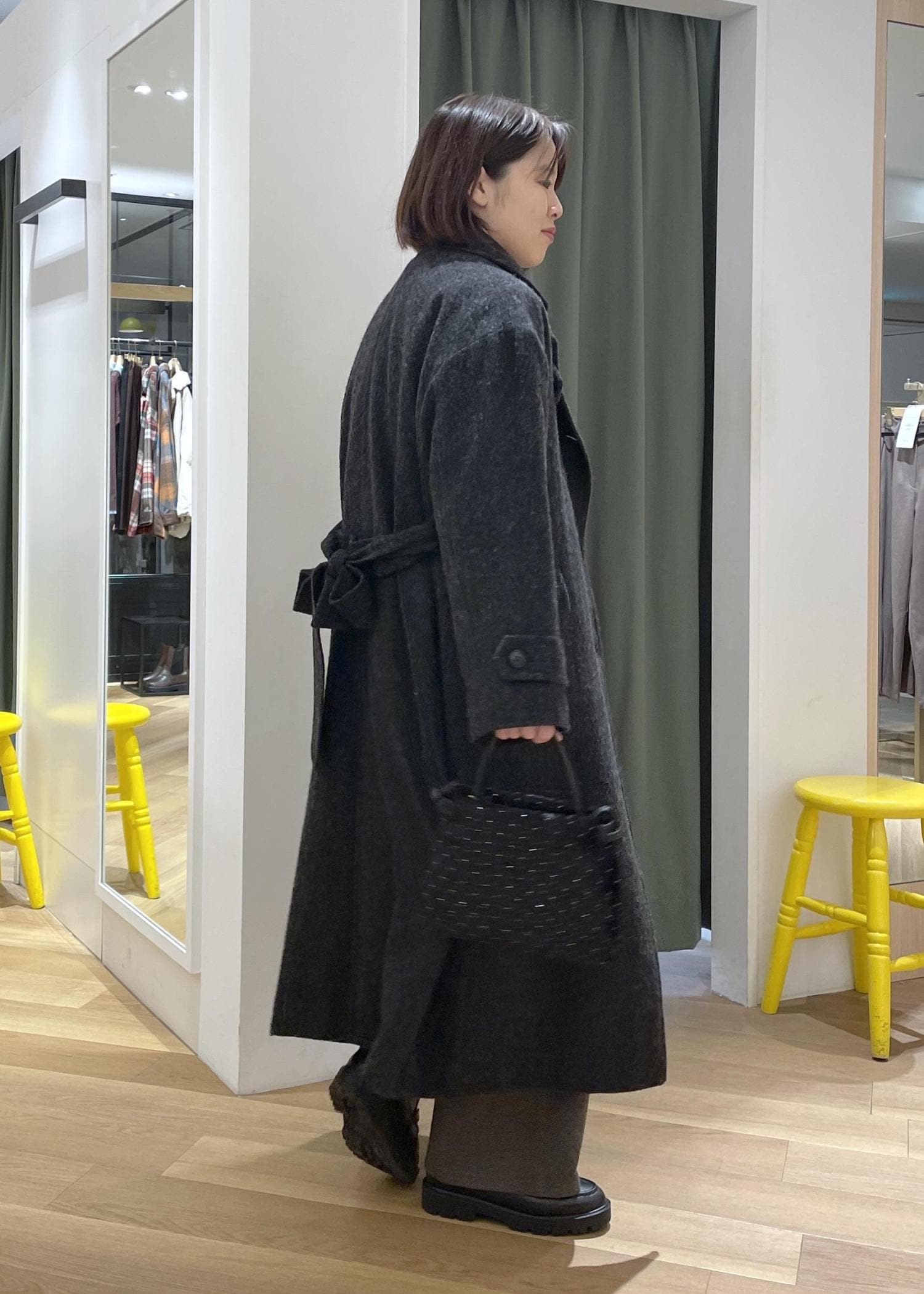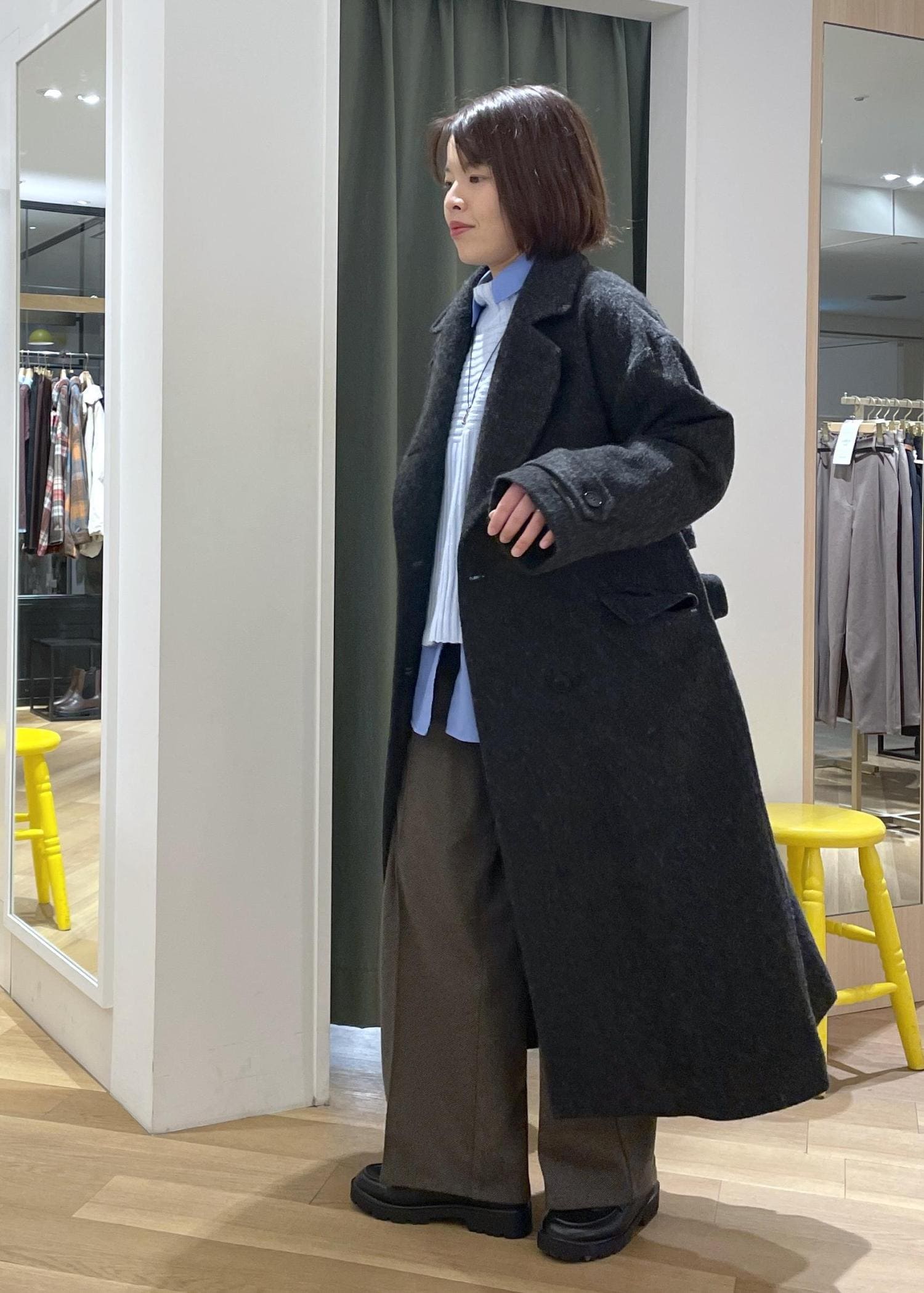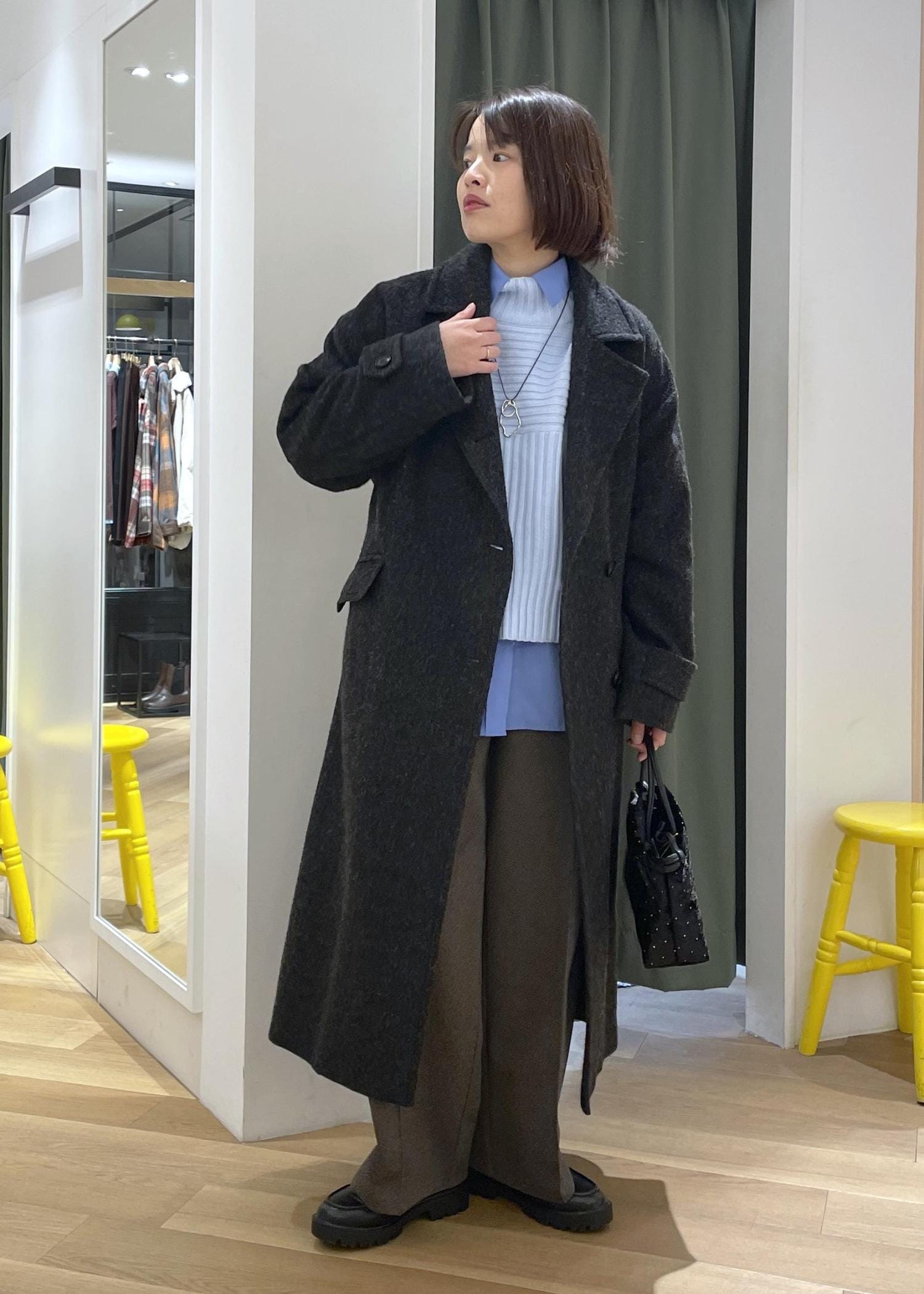 重くなりがちなロングアウターですが、コートインに明るめのカラーニットを合わせることで軽やかで柔らかな印象のスタイルに◎