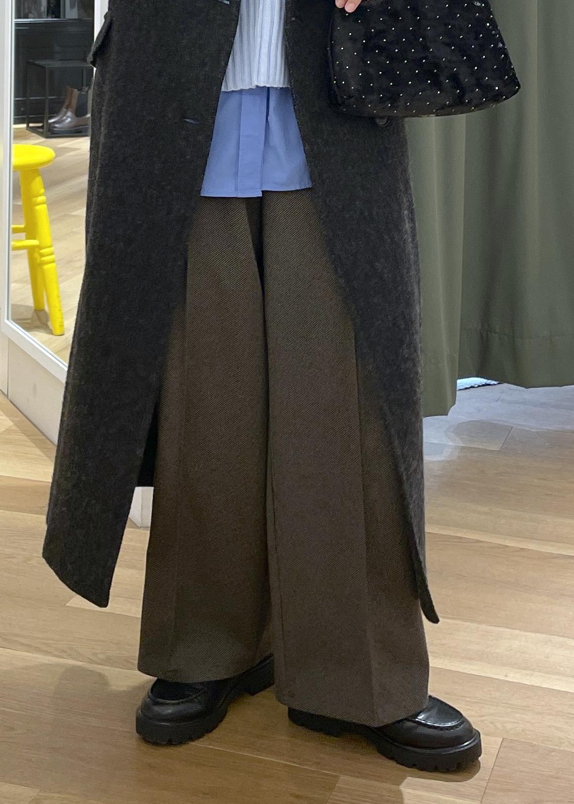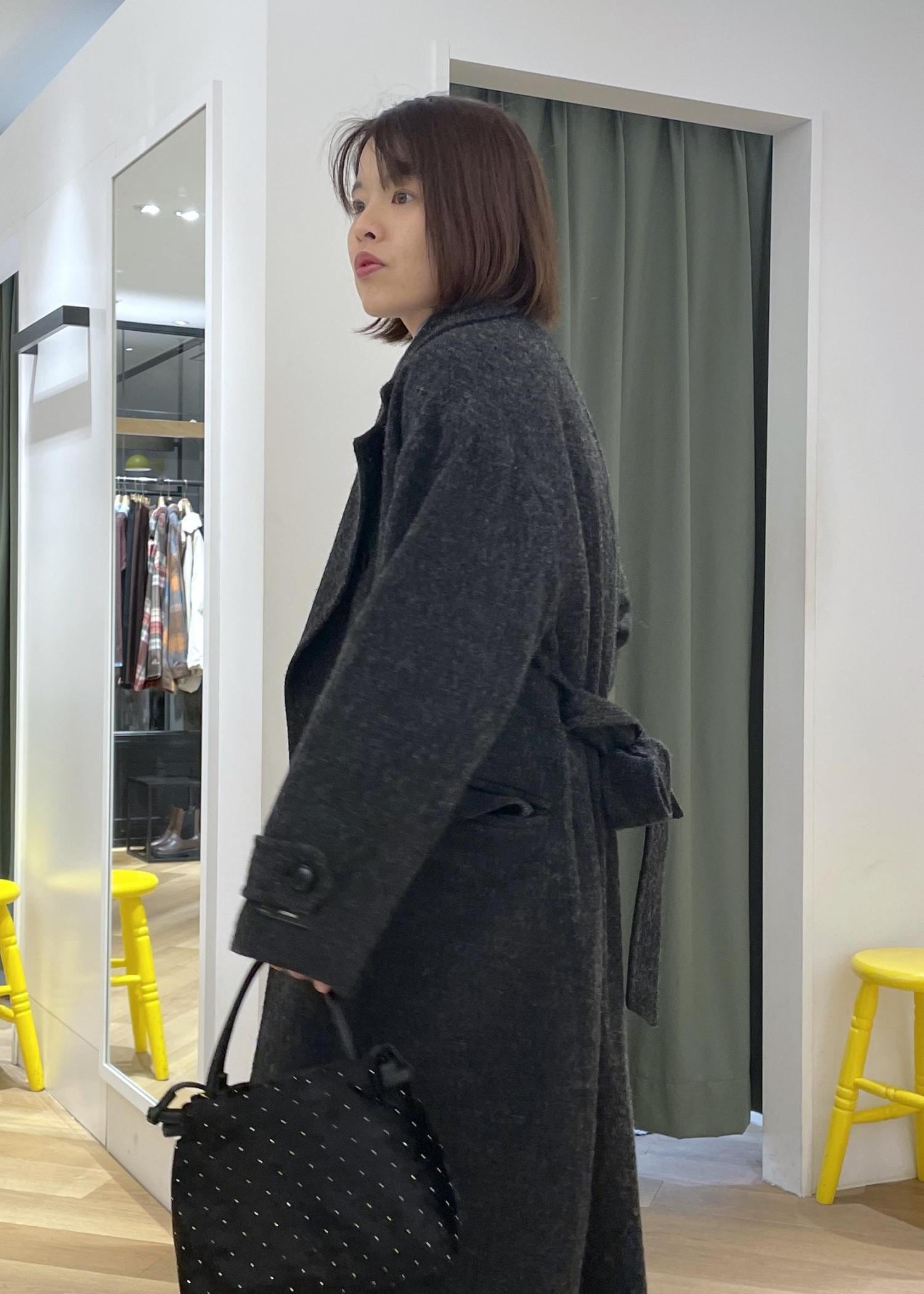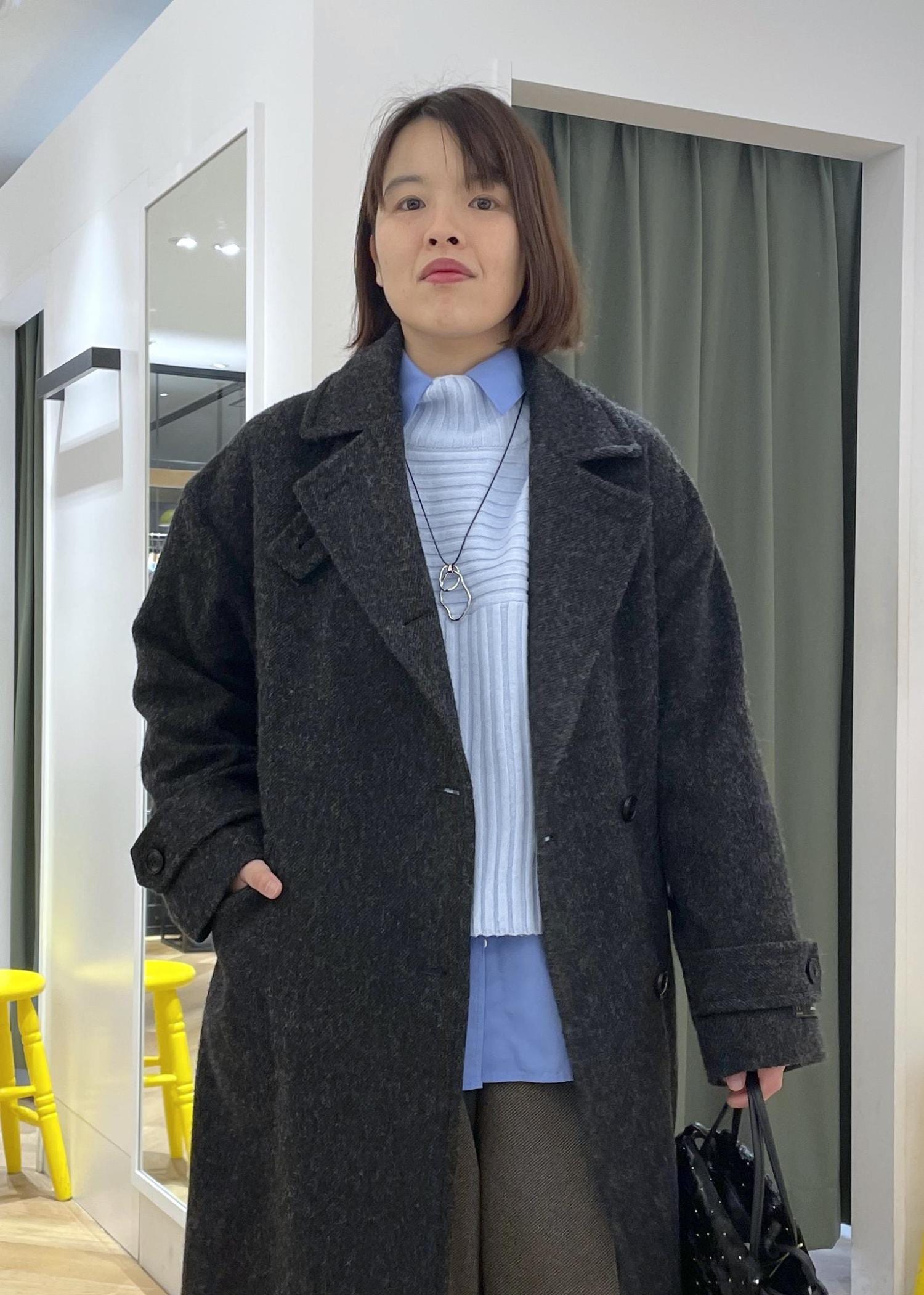 重くなりがちなロングアウターですが、コートインに明るめのカラーニットを合わせることで軽やかで柔らかな印象のスタイルに◎