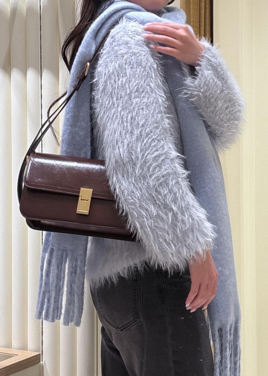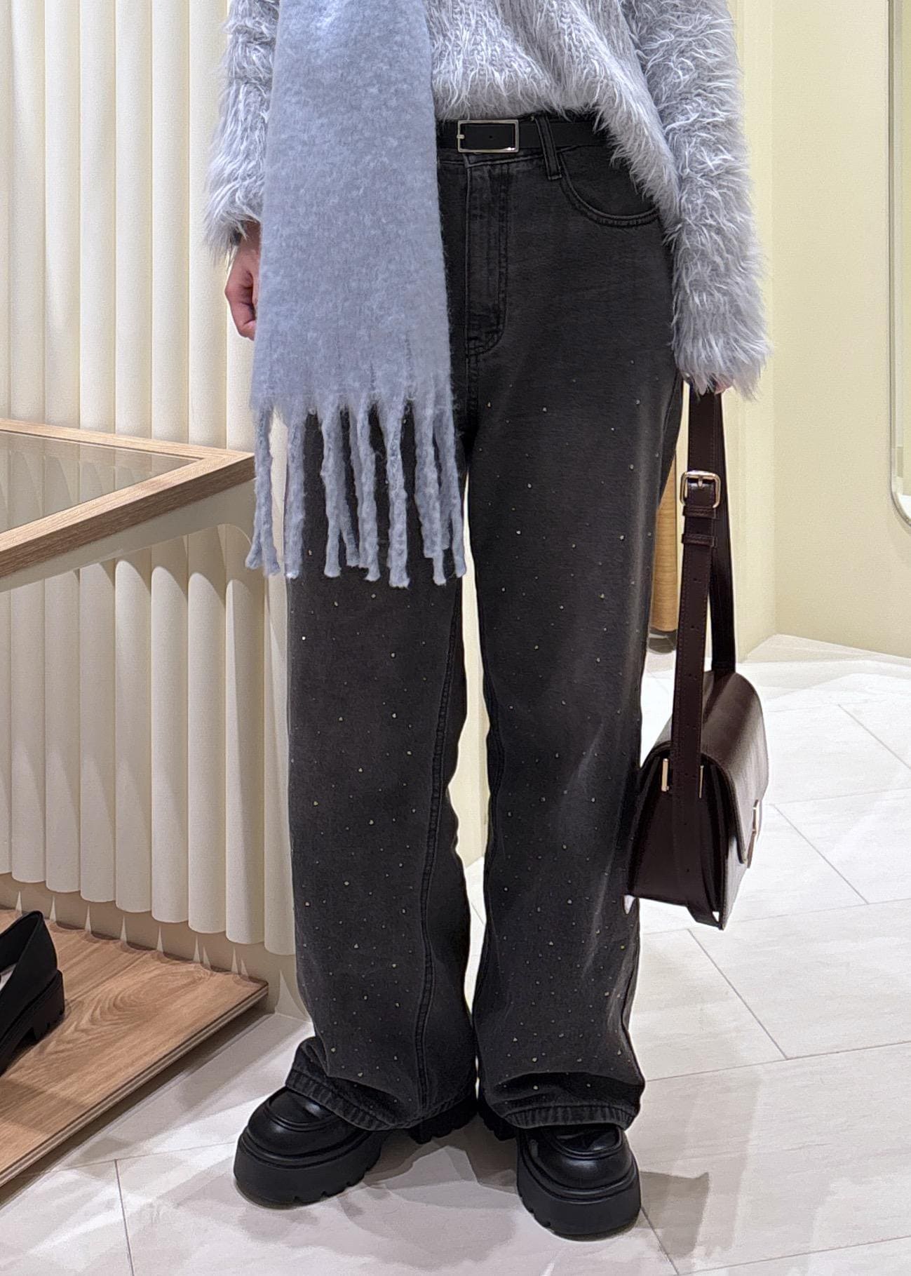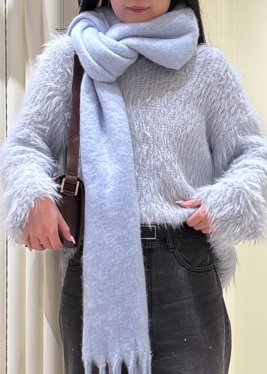 フェザーニットとストールをセット風に合わせてみました。トレンド感のある韓国っぽコーデです。