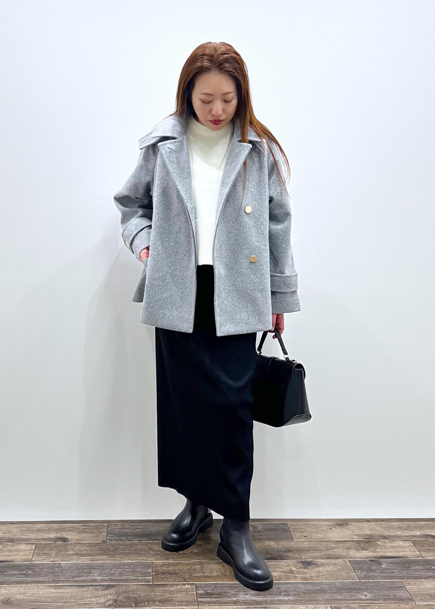 ROPÉ PICNICジャージーメルトンシリーズ 金ボタンミドル丈コート/リンクコーデライトグレー / F¥7,692レビューとても軽く程よいゆとりがあるのでインナーにも着込んでいただけます。
