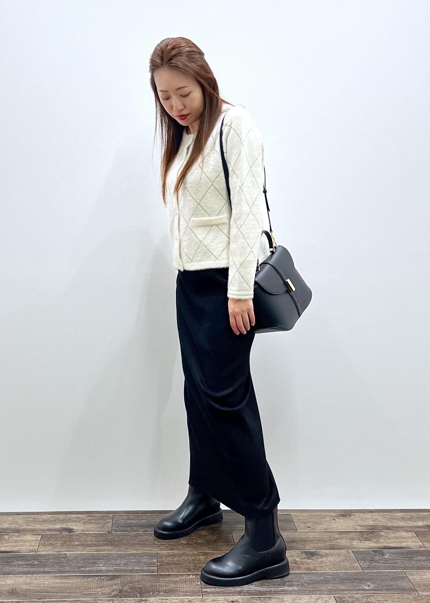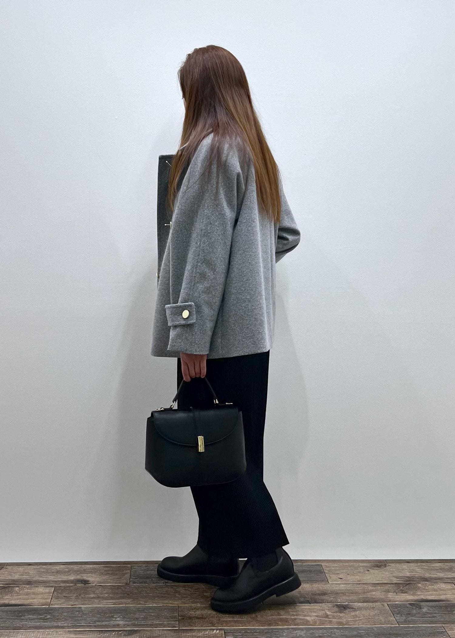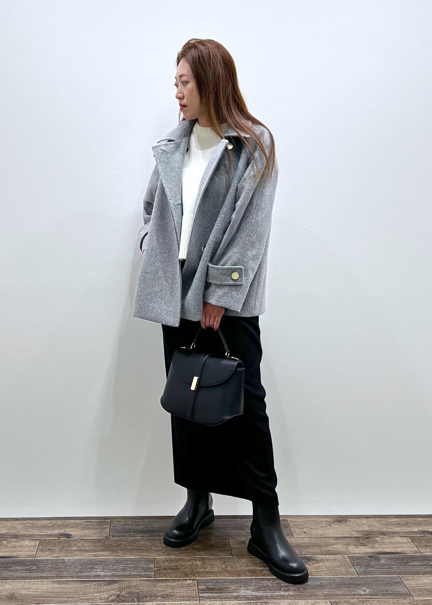 上はオーバーサイズのコートなので、ボトムスはコンパクトにまとめました。