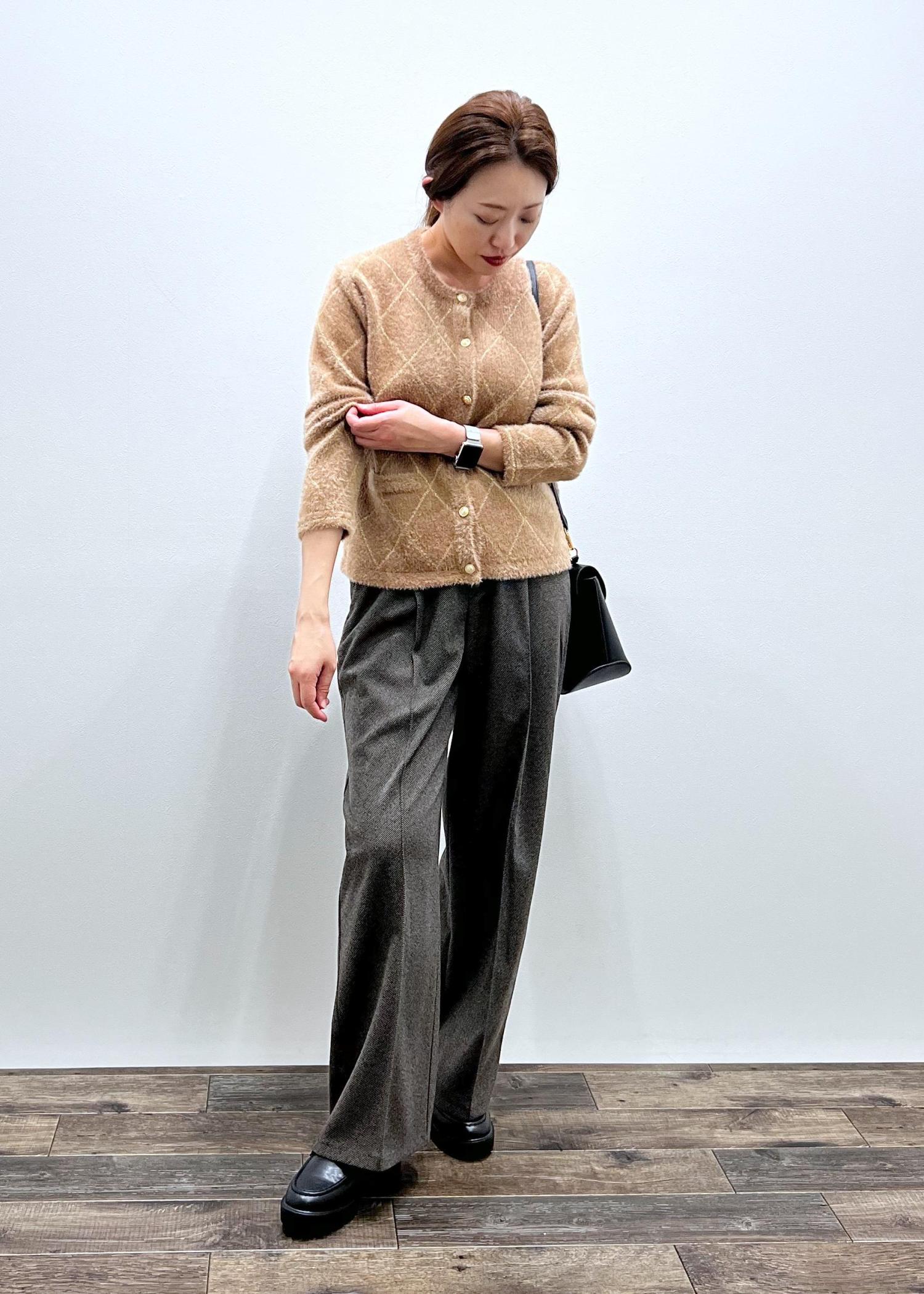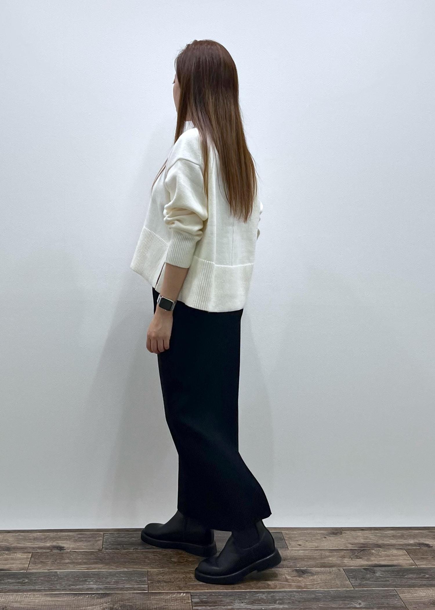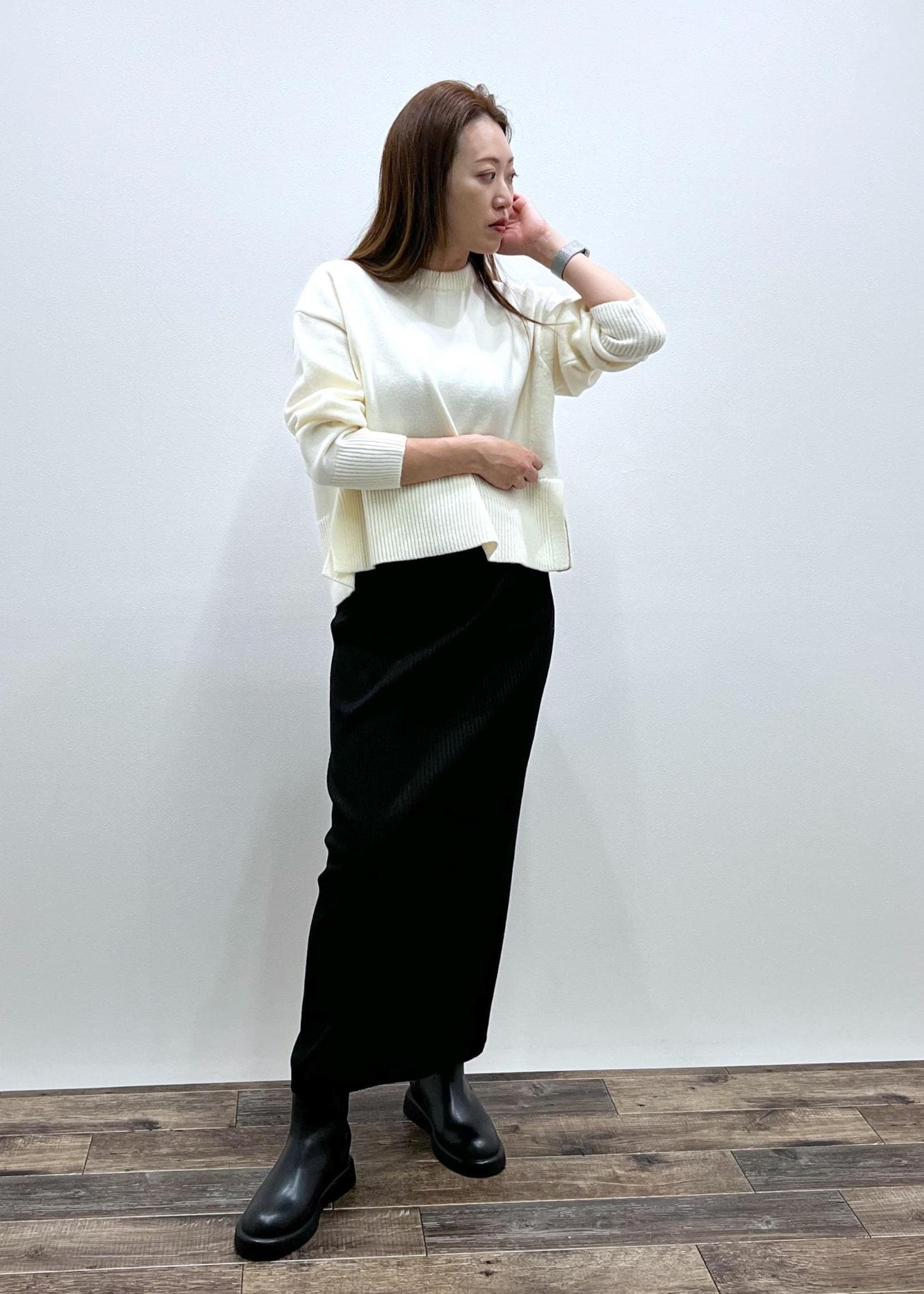 上はオーバーサイズのコートなので、ボトムスはコンパクトにまとめました。