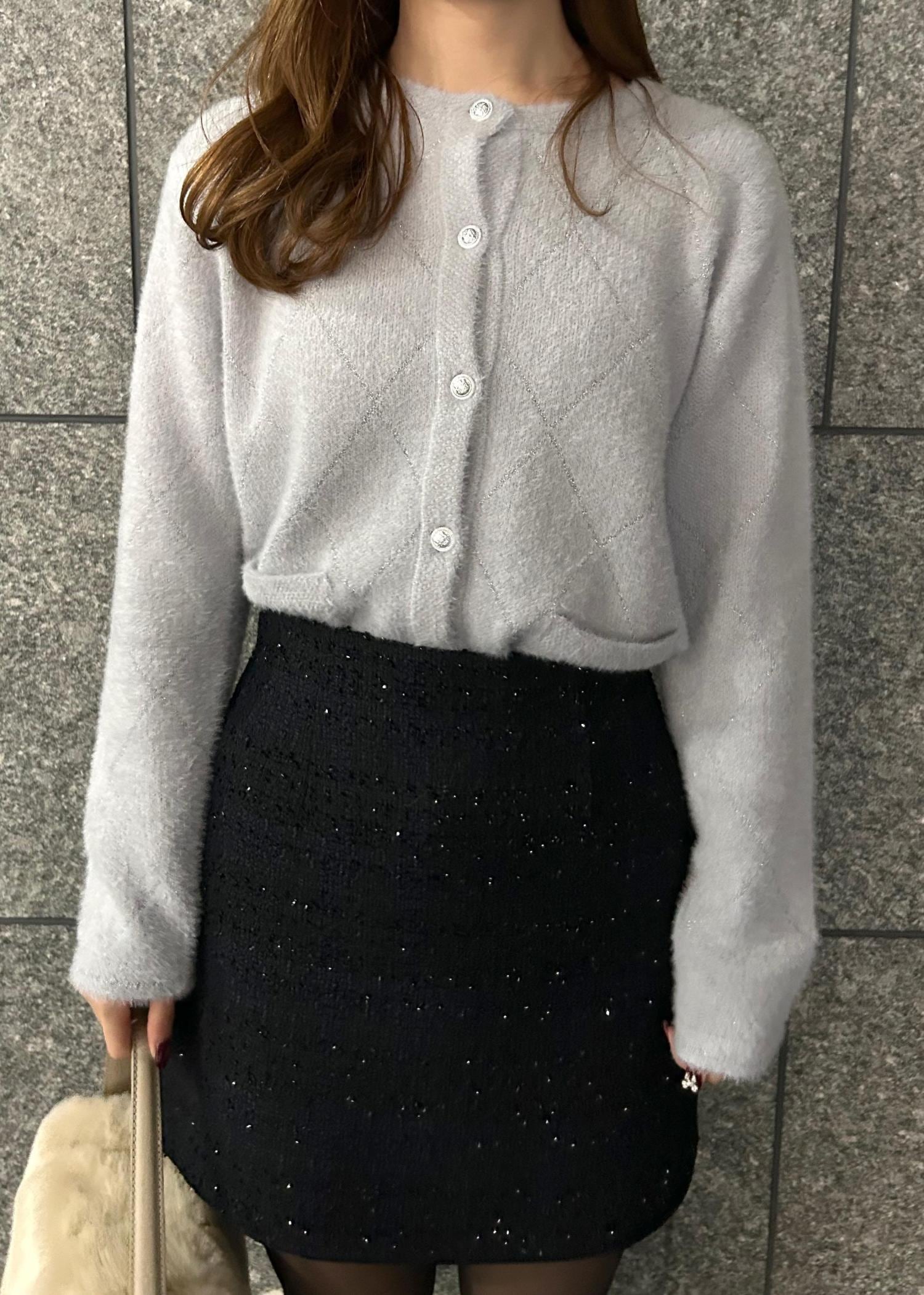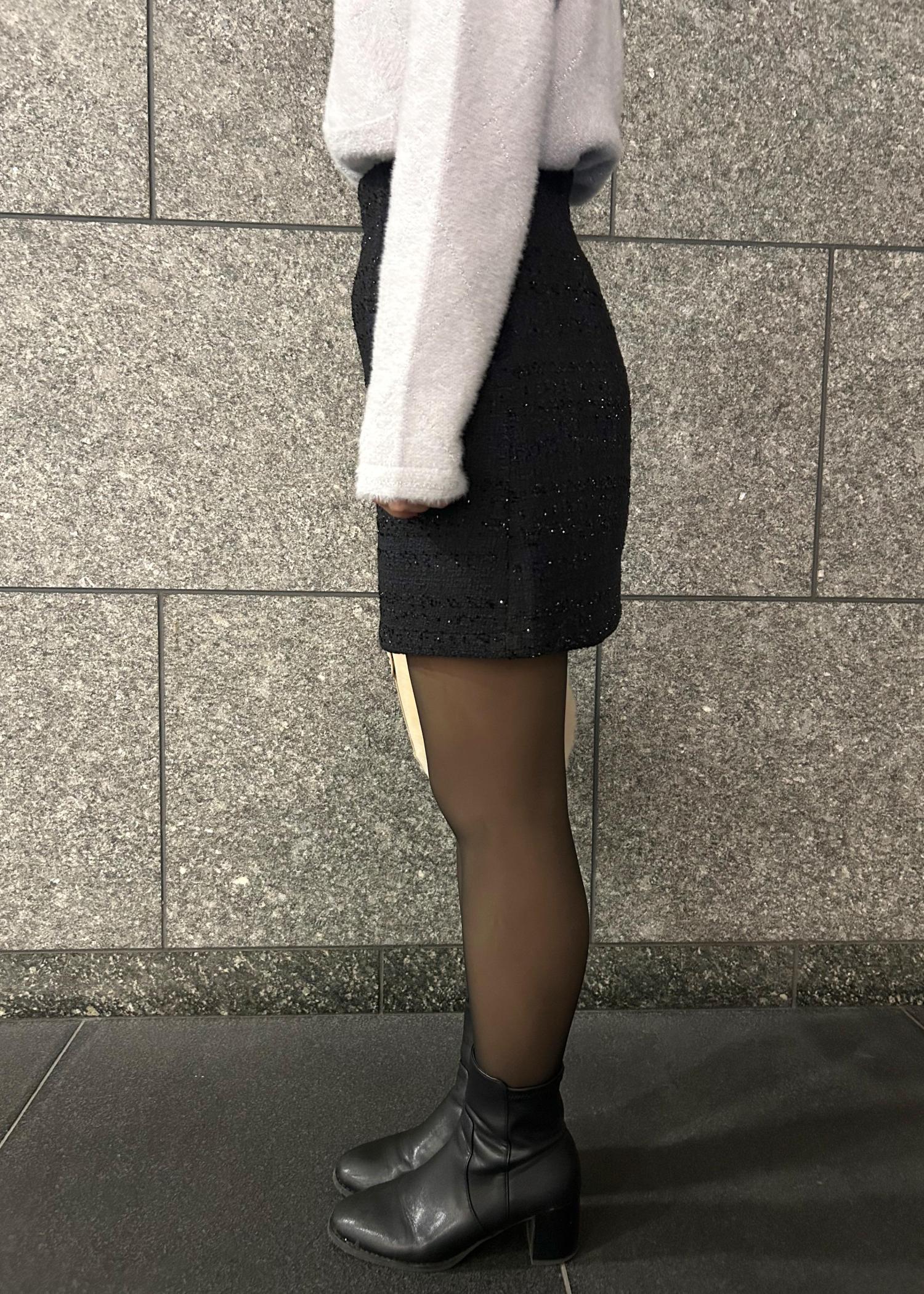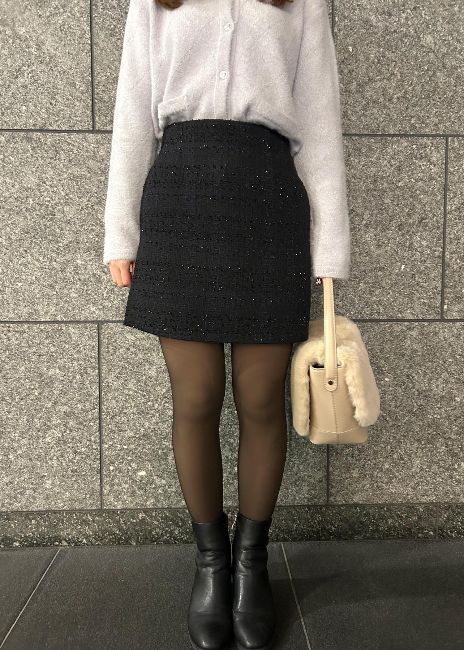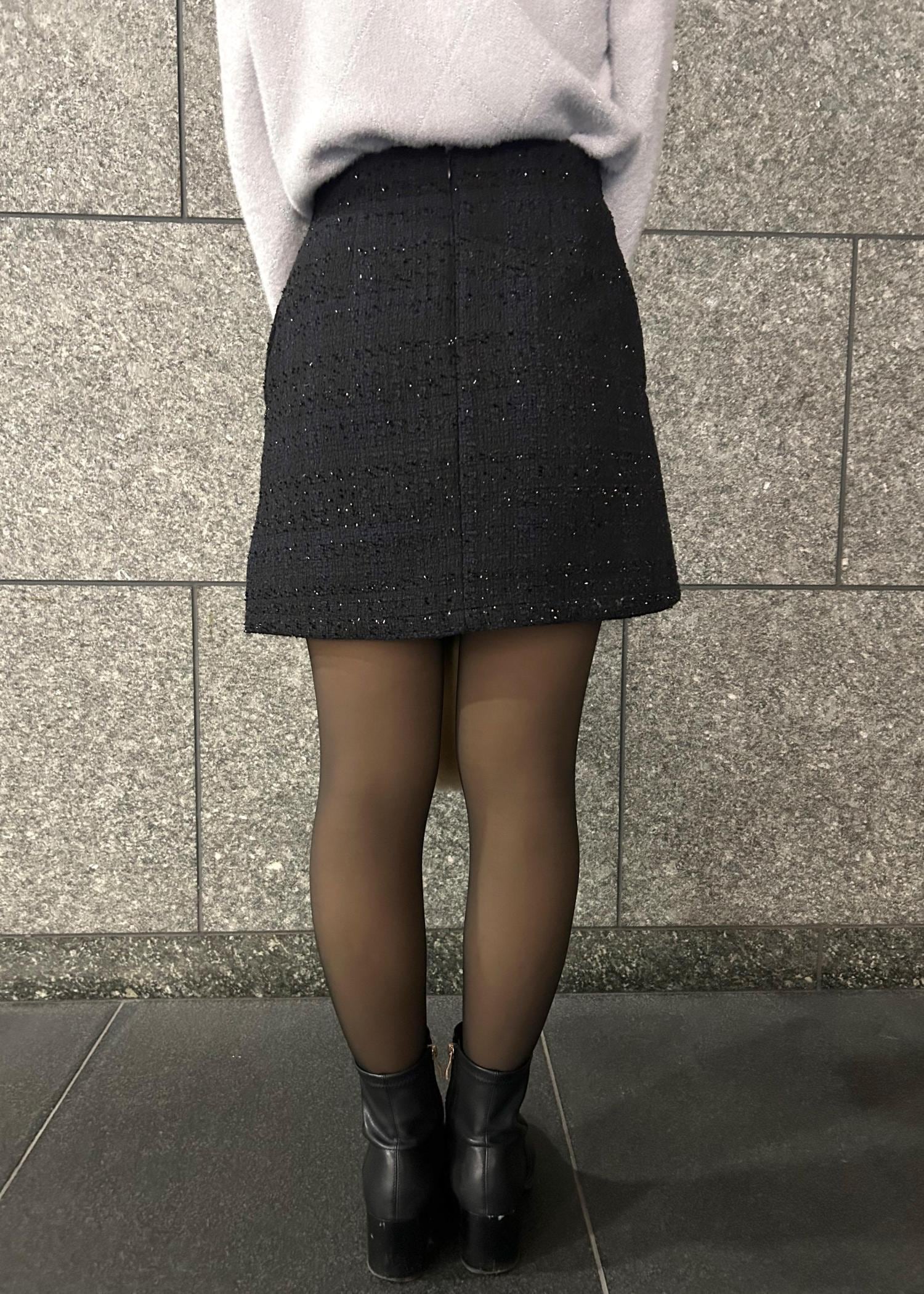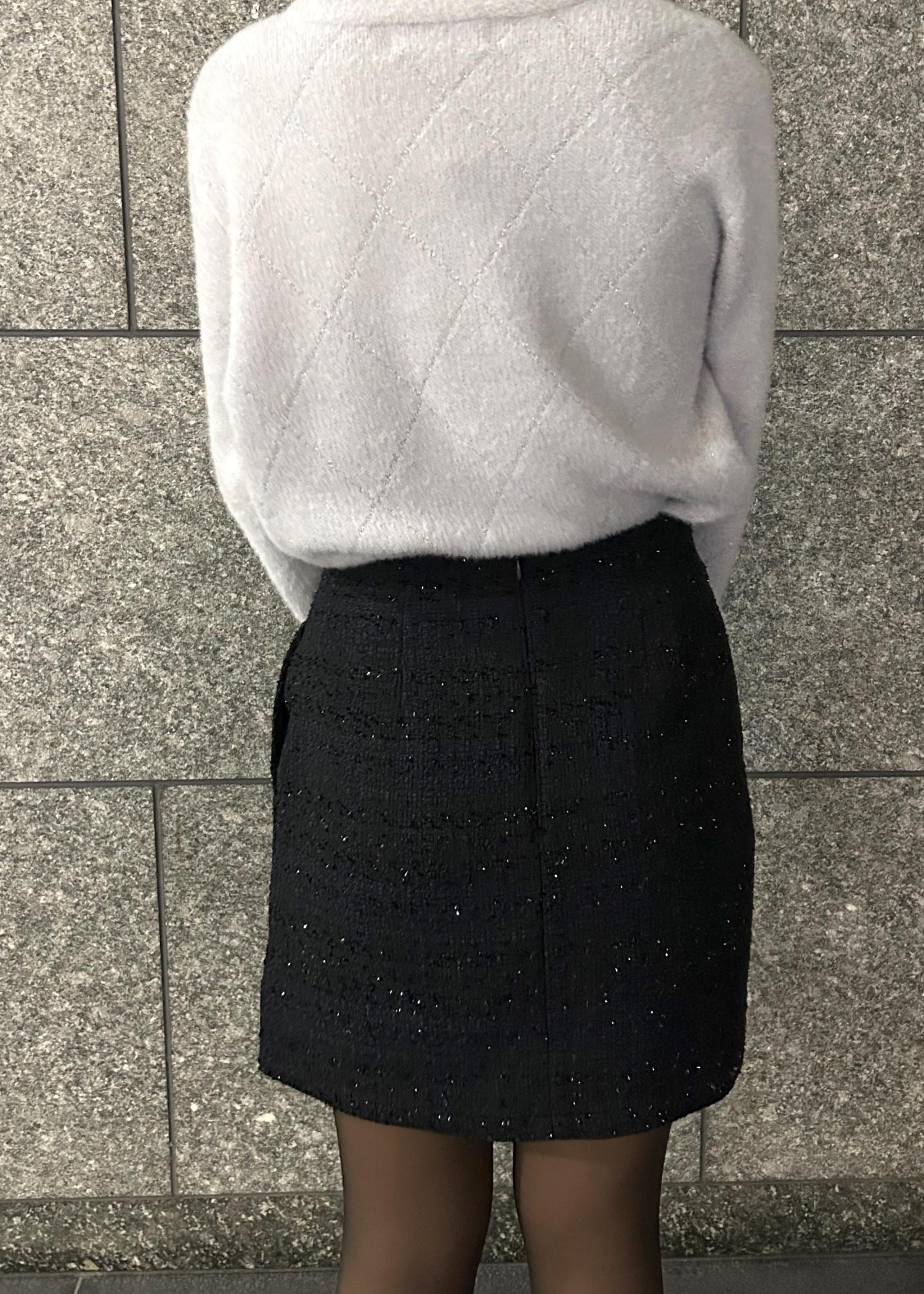 トップスとスカートの程よいラメ感が女性らしさを演出してくれます!クリスマスなどの冬のデートにぴったりです!