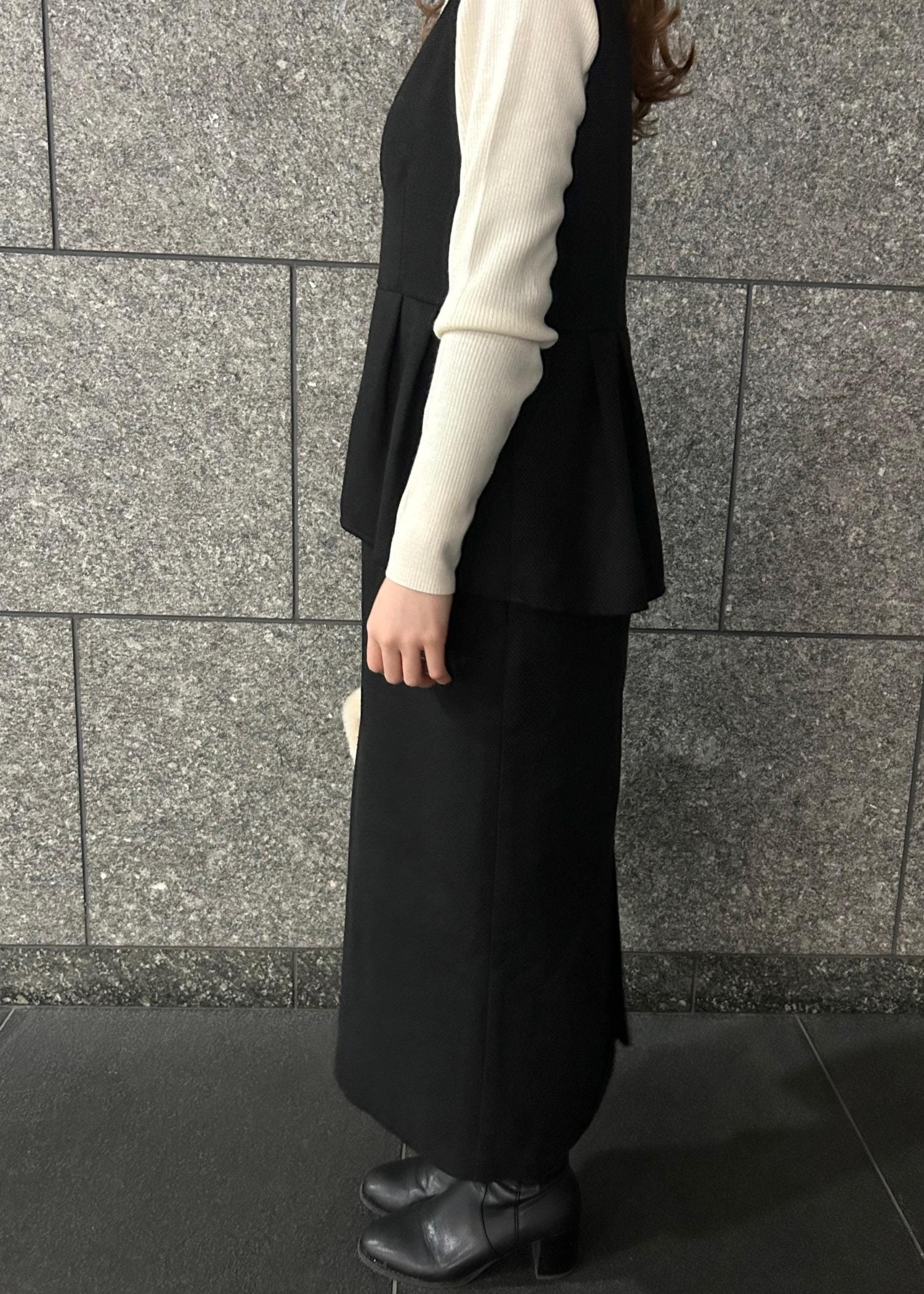 ペプラムデザインが腰回りをカバーしてくれるので安心して着ていただけます!
