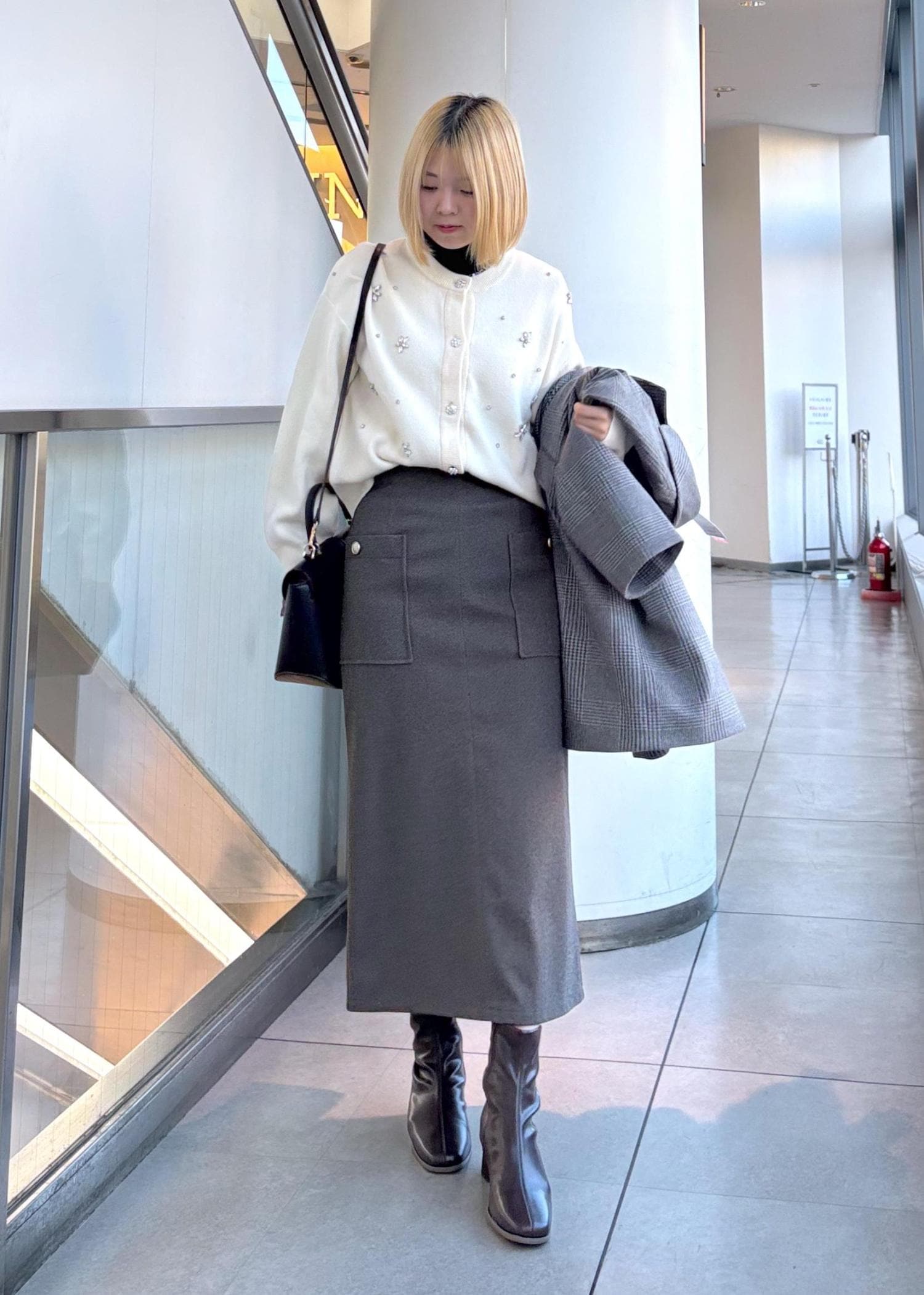 ビジューカーディガンを使用した綺麗めコーデにしてみました☺︎