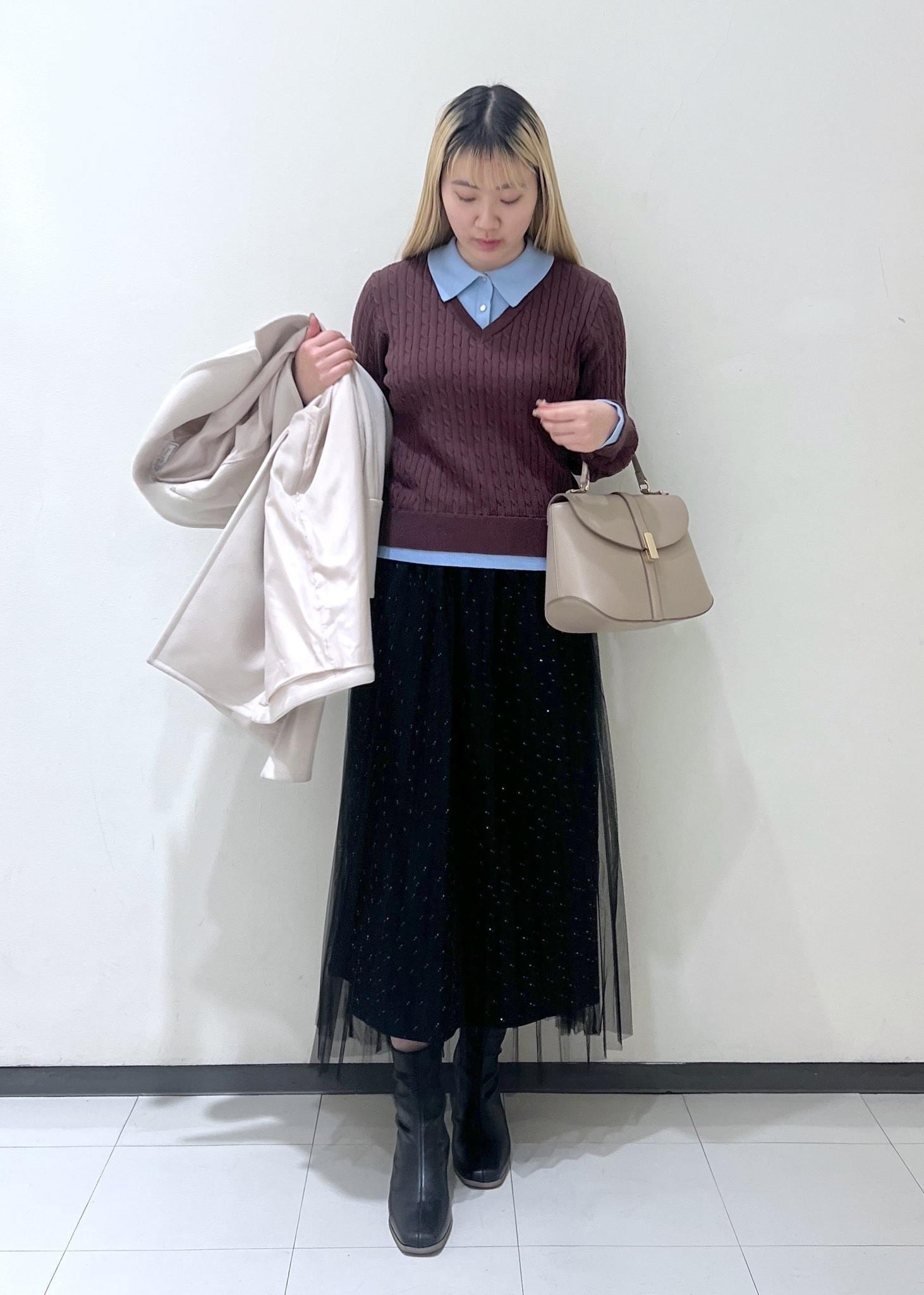 シルエットは広がりすぎないのできれいめなコーディネートにおすすめです◎