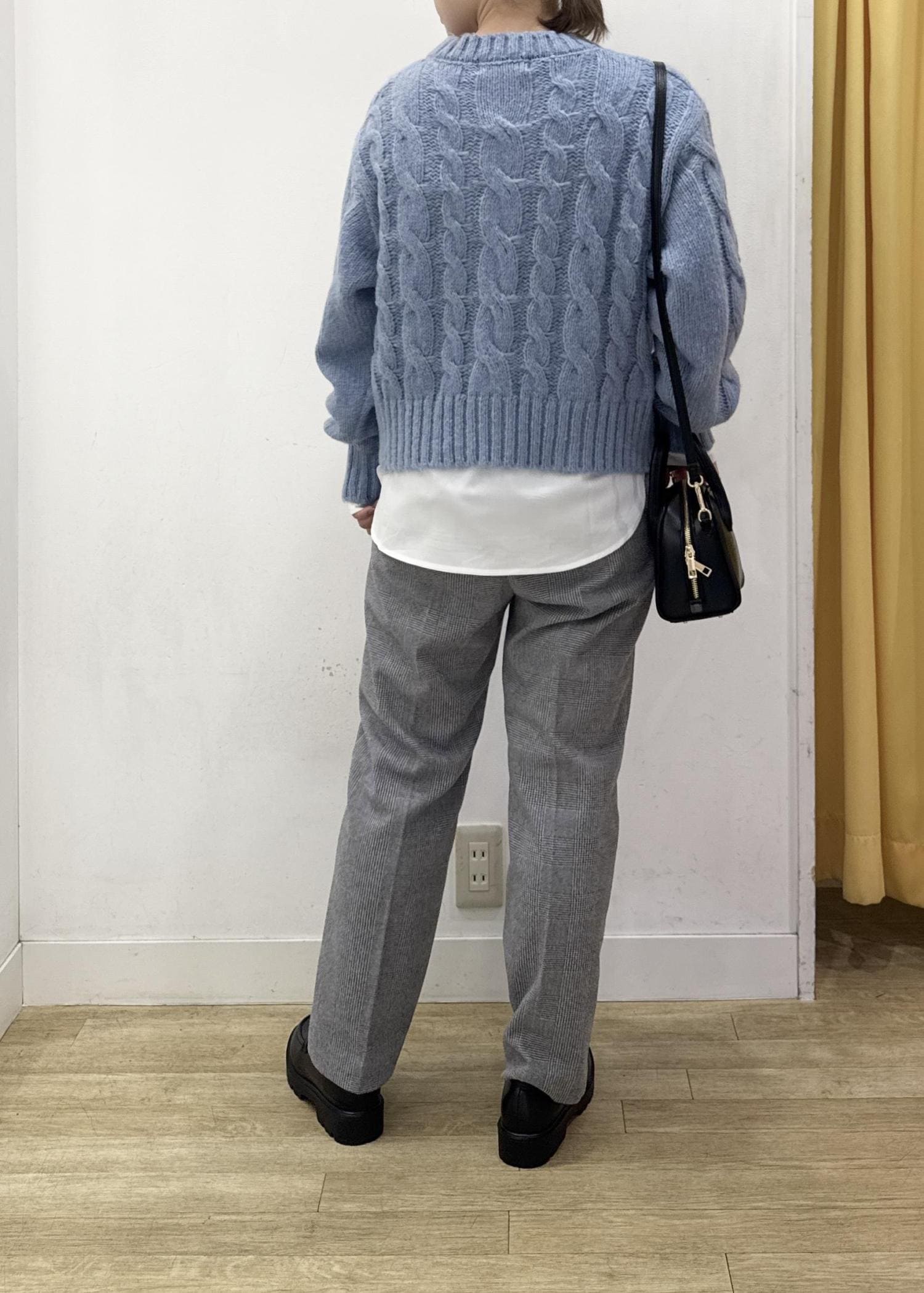 少し短めのケーブルニットに、レイヤードにオススメのカットトップスをイン!