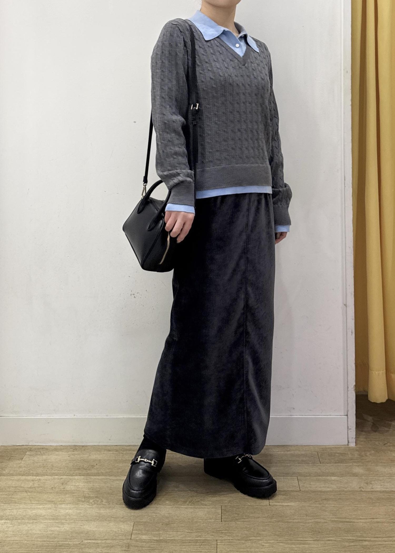 ROPÉ PICNICシェニール織アイラインスカートチャコール / M¥6,490レビューSサイズはジャストサイズ、Mサイズは少しゆとりがありラクに穿けるサイズ感。