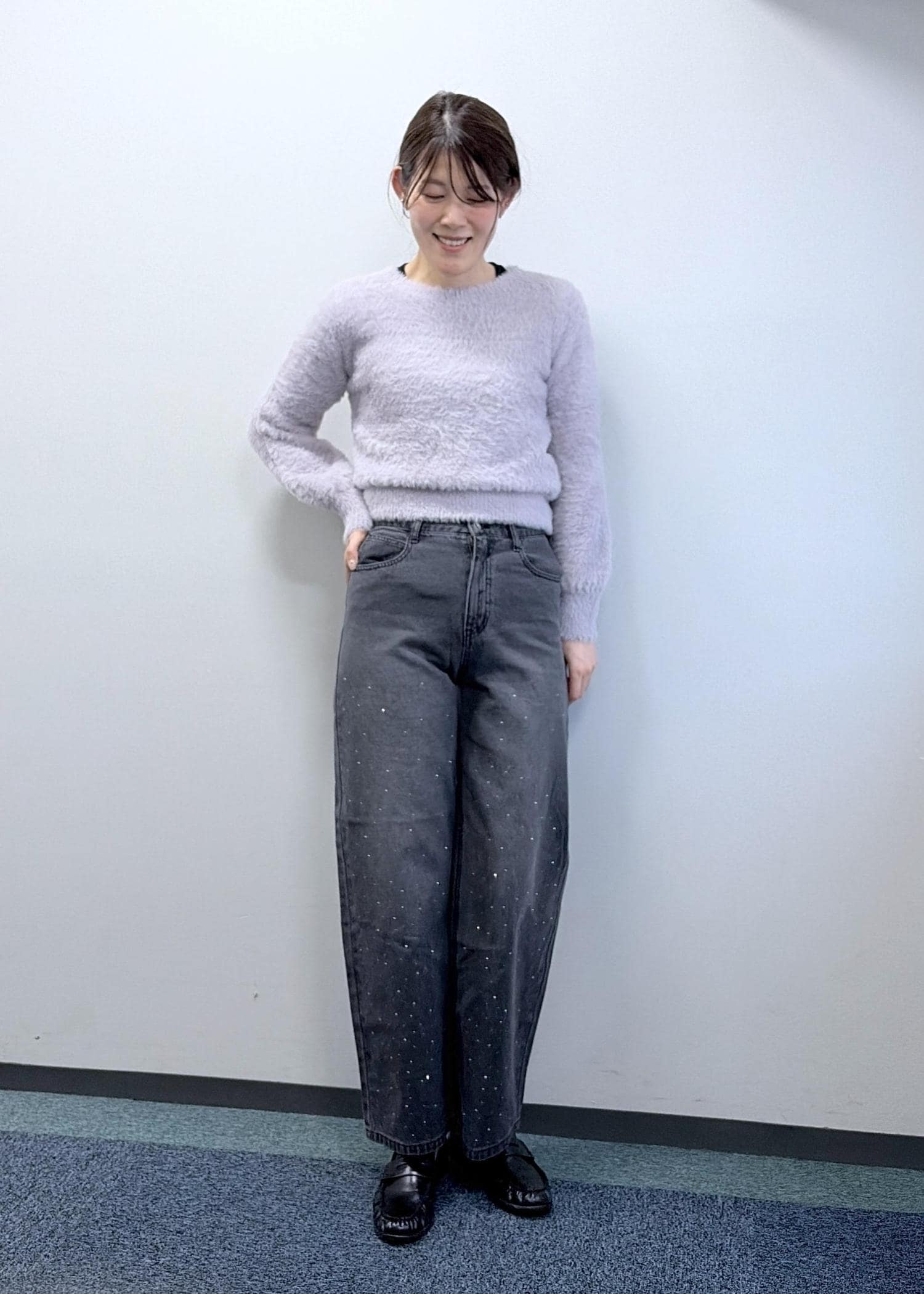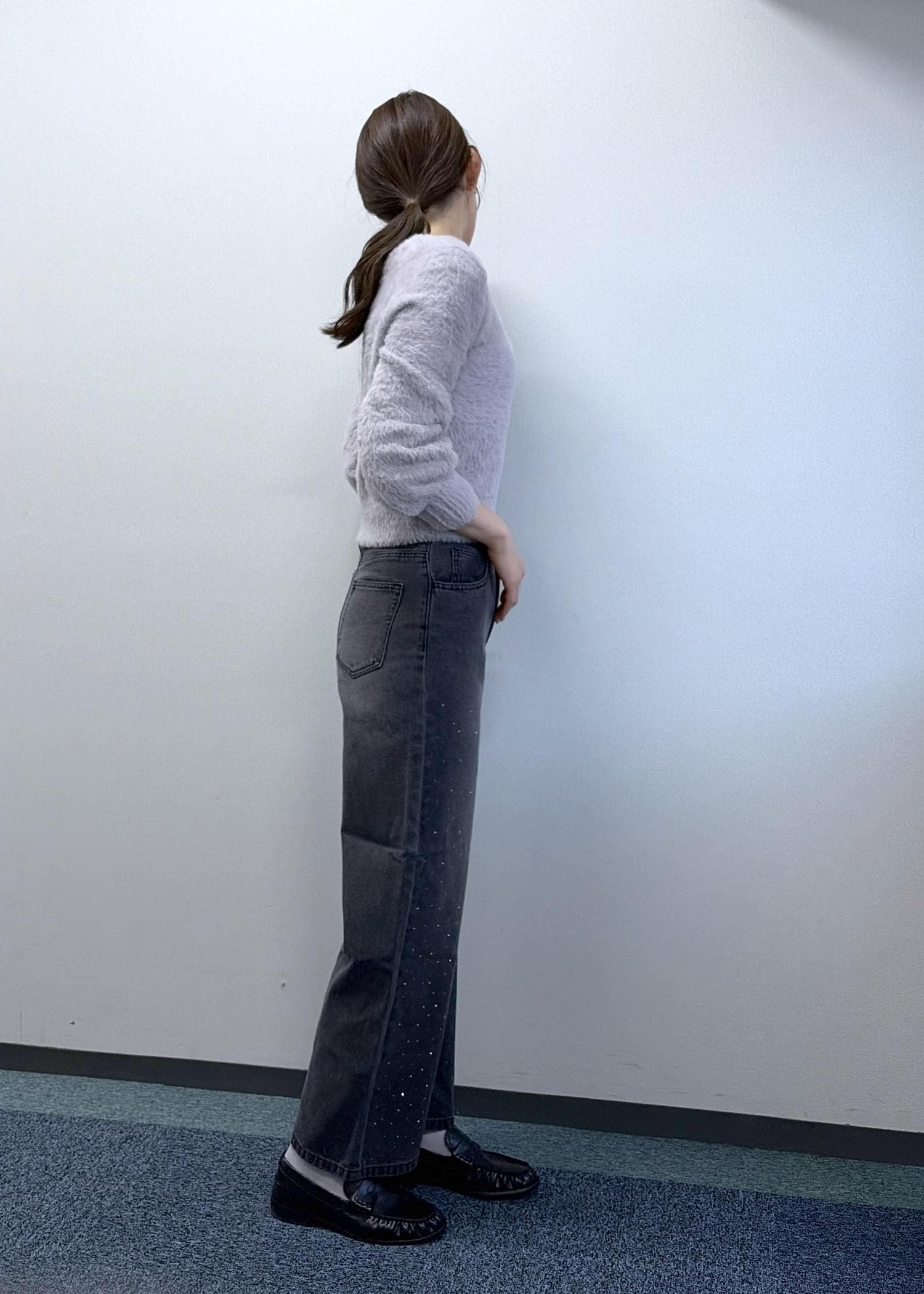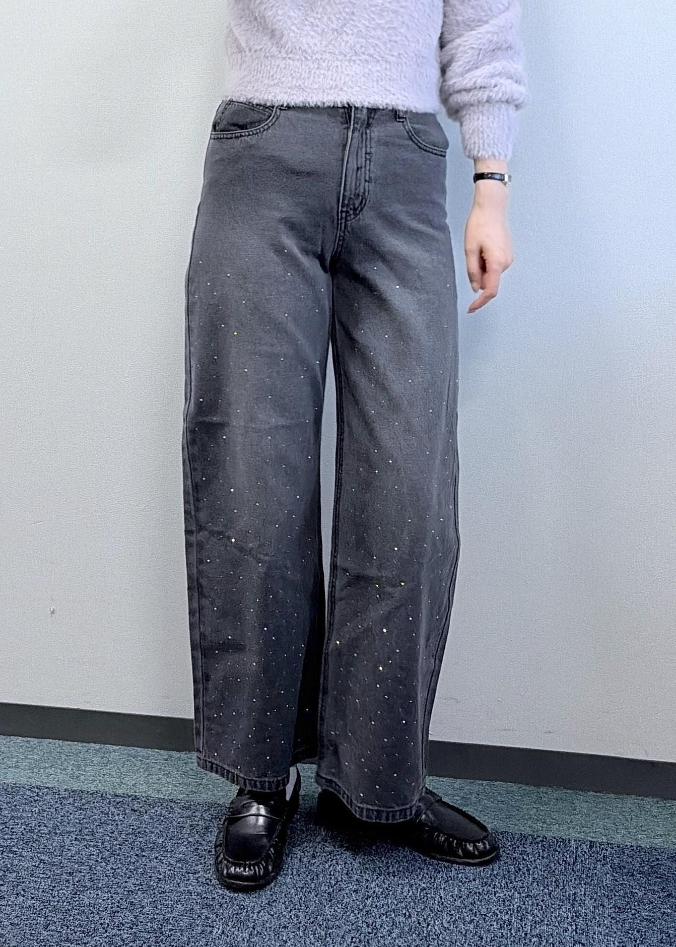 ROPÉ PICNIC【新色追加】キラキラビジューデニムブラック系 / 40¥7,491レビューハイウエストでワイドシルエットのスタイルアップできるデニム。ストレッチは効いていますが、他のデニムに比べると少し固めになります。