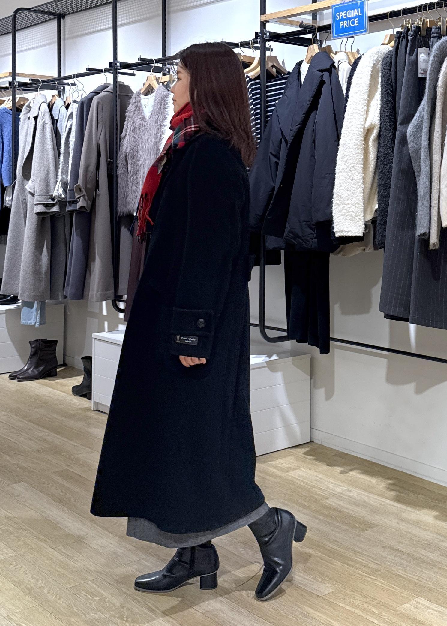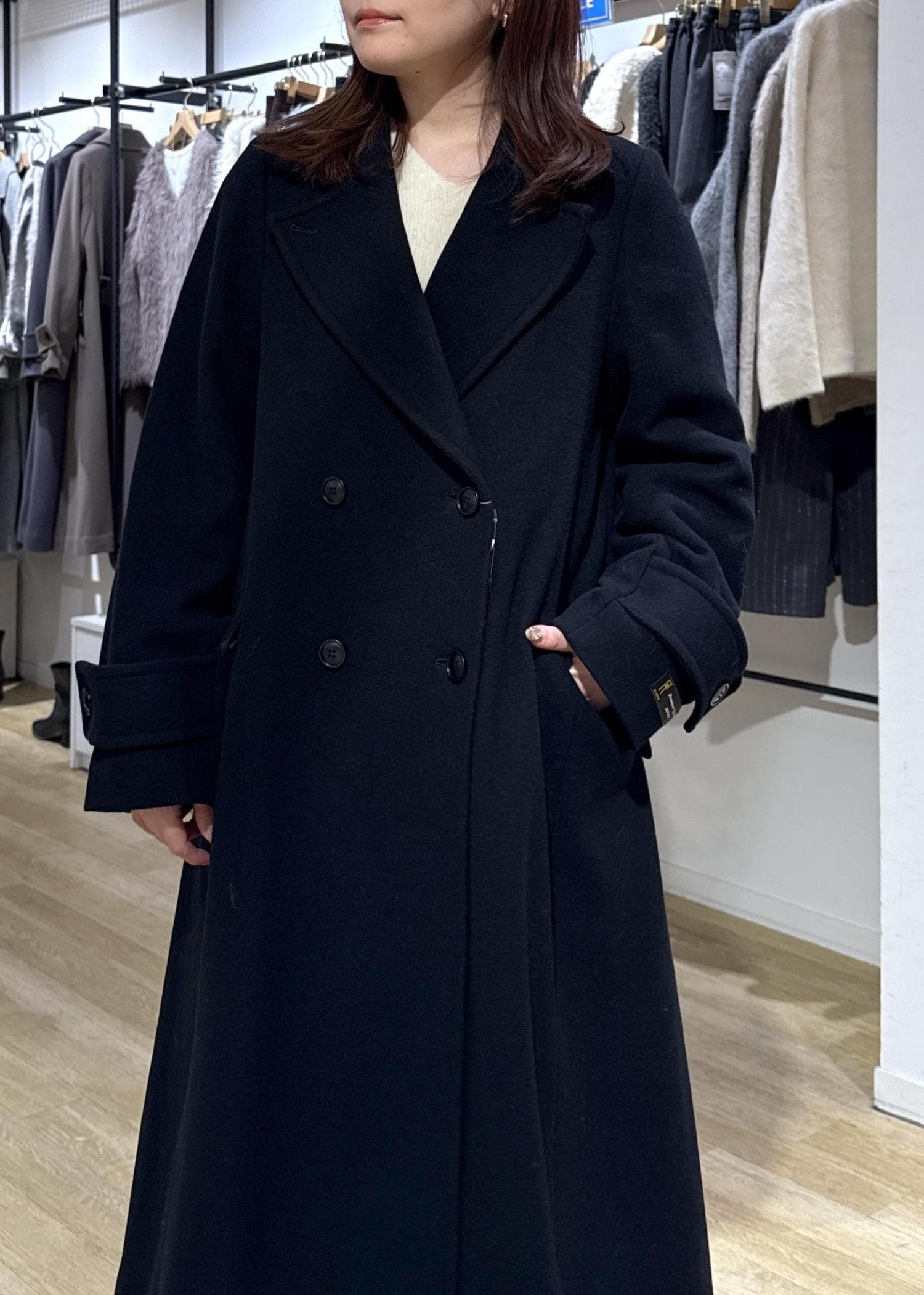 ROPÉ PICNICJAPAN FABRIC ダブルチェスターコート/一部WEB限定カラーブラック / F¥19,800レビュー着丈は脛が隠れる長さで、袖丈も手の甲が隠れる長さです。