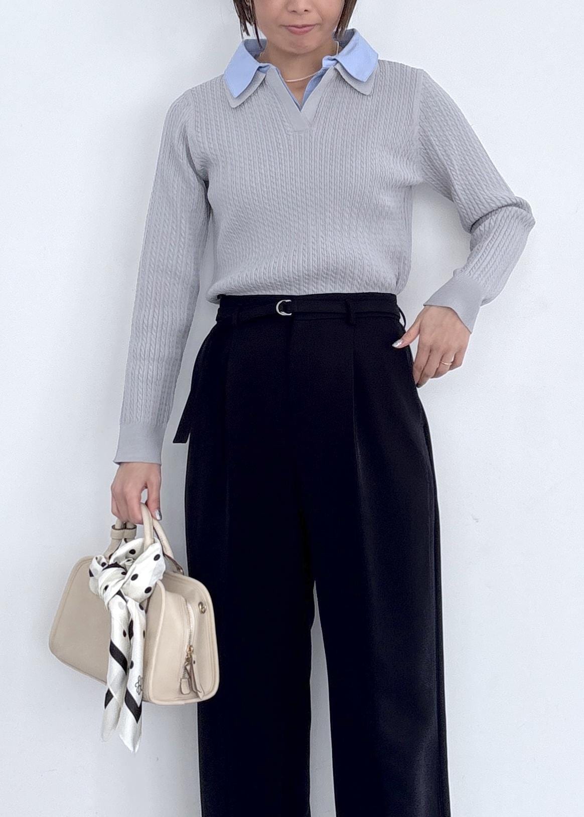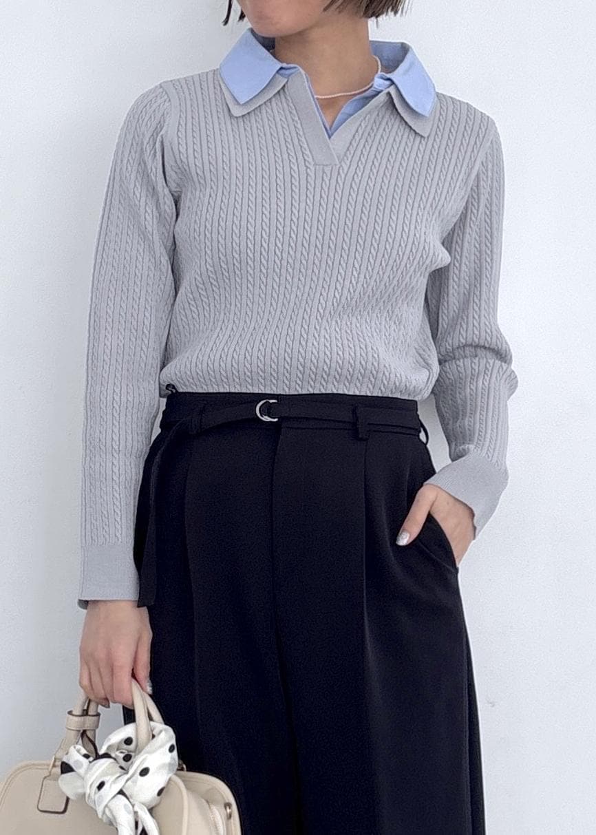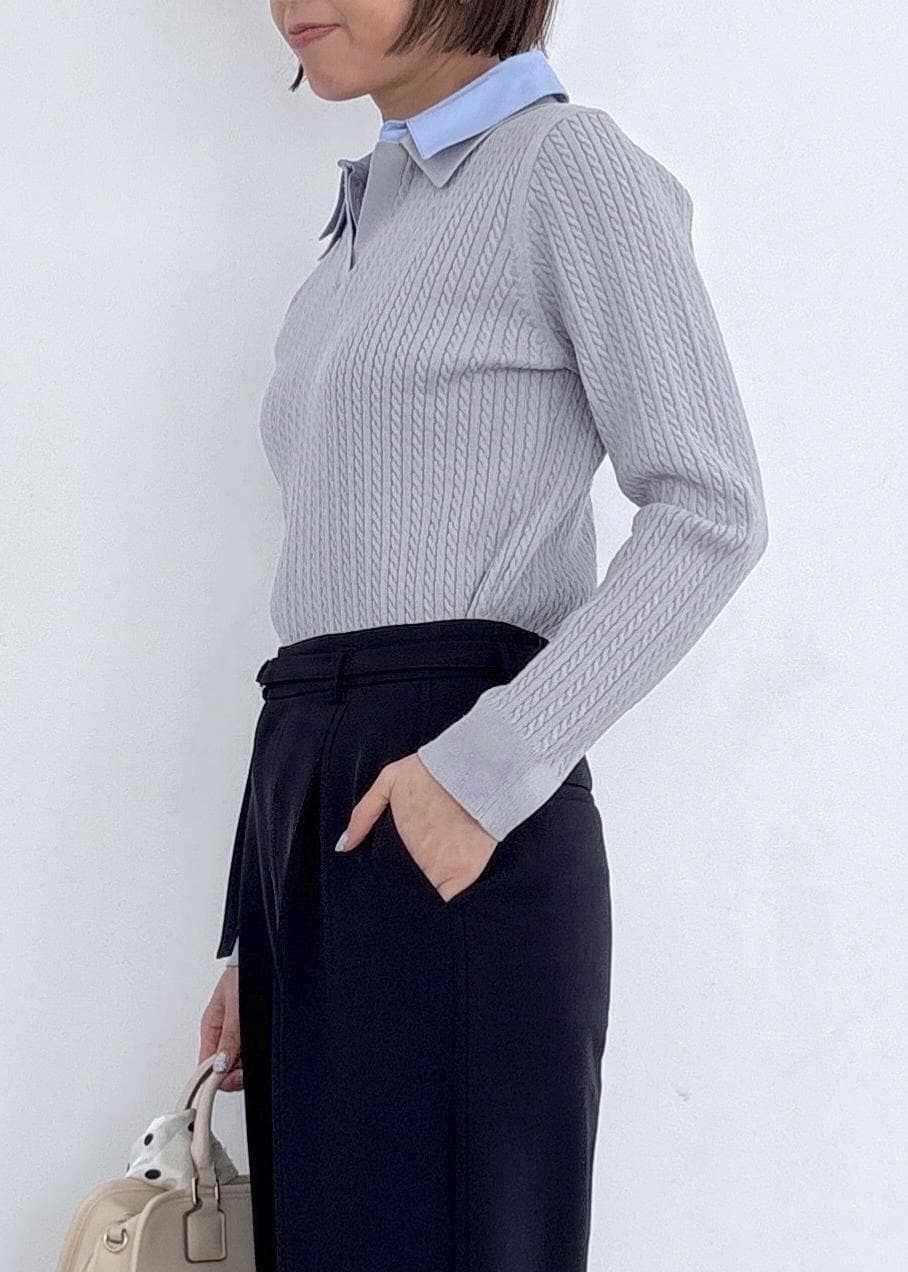 予約ROPÉ PICNICダブルカラーミニケーブルニットグレー / F¥5,995レビュー身幅に程よくゆとりがありとても柔らかな着心地でした。一枚できちんと感を出してくれるニットです♪