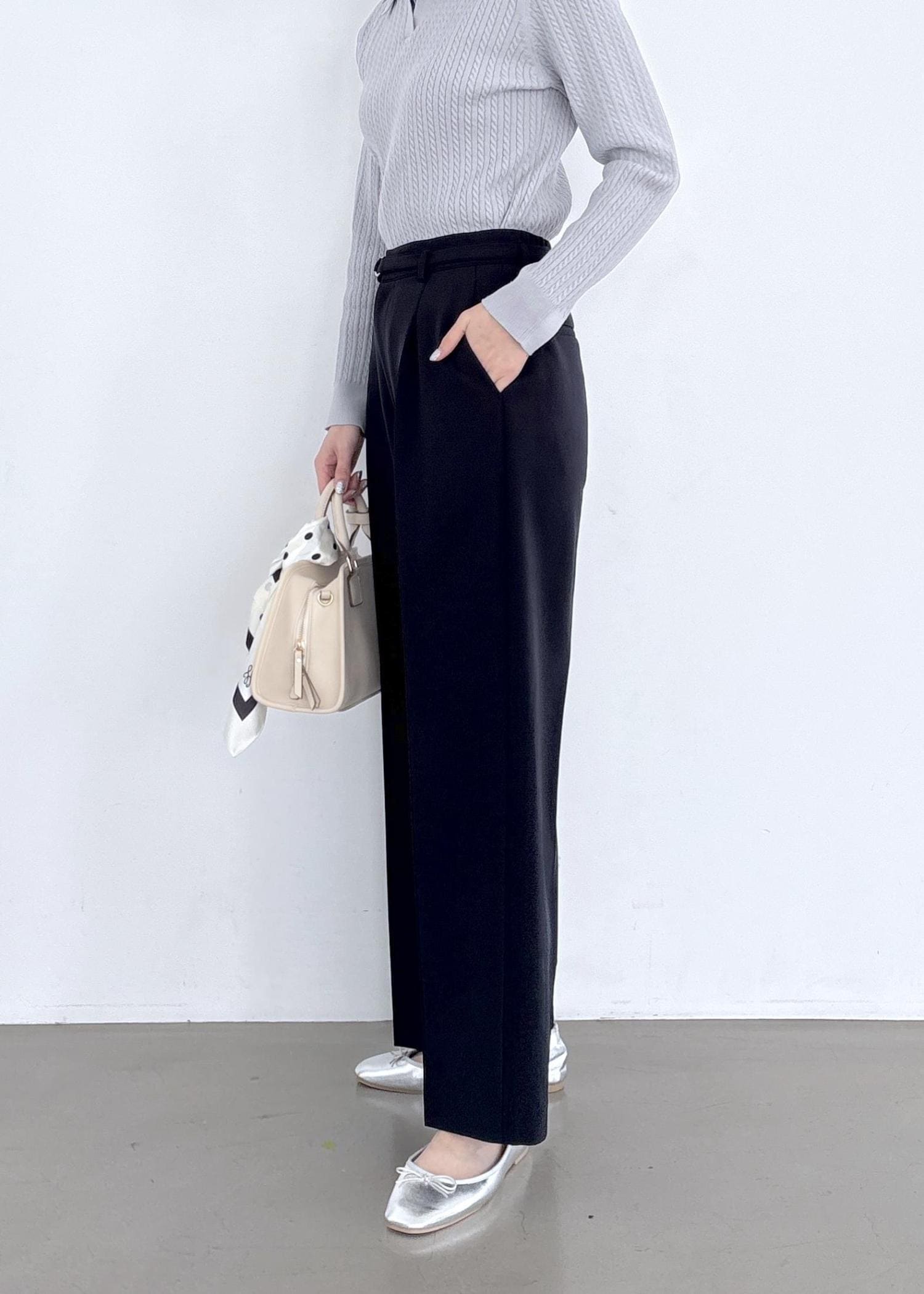 ウエスト部分にはベルトが付いているのでウエスト調整がしやすかったです。着丈はMサイズ着用でかかとがしっかり見える程の長さでした。