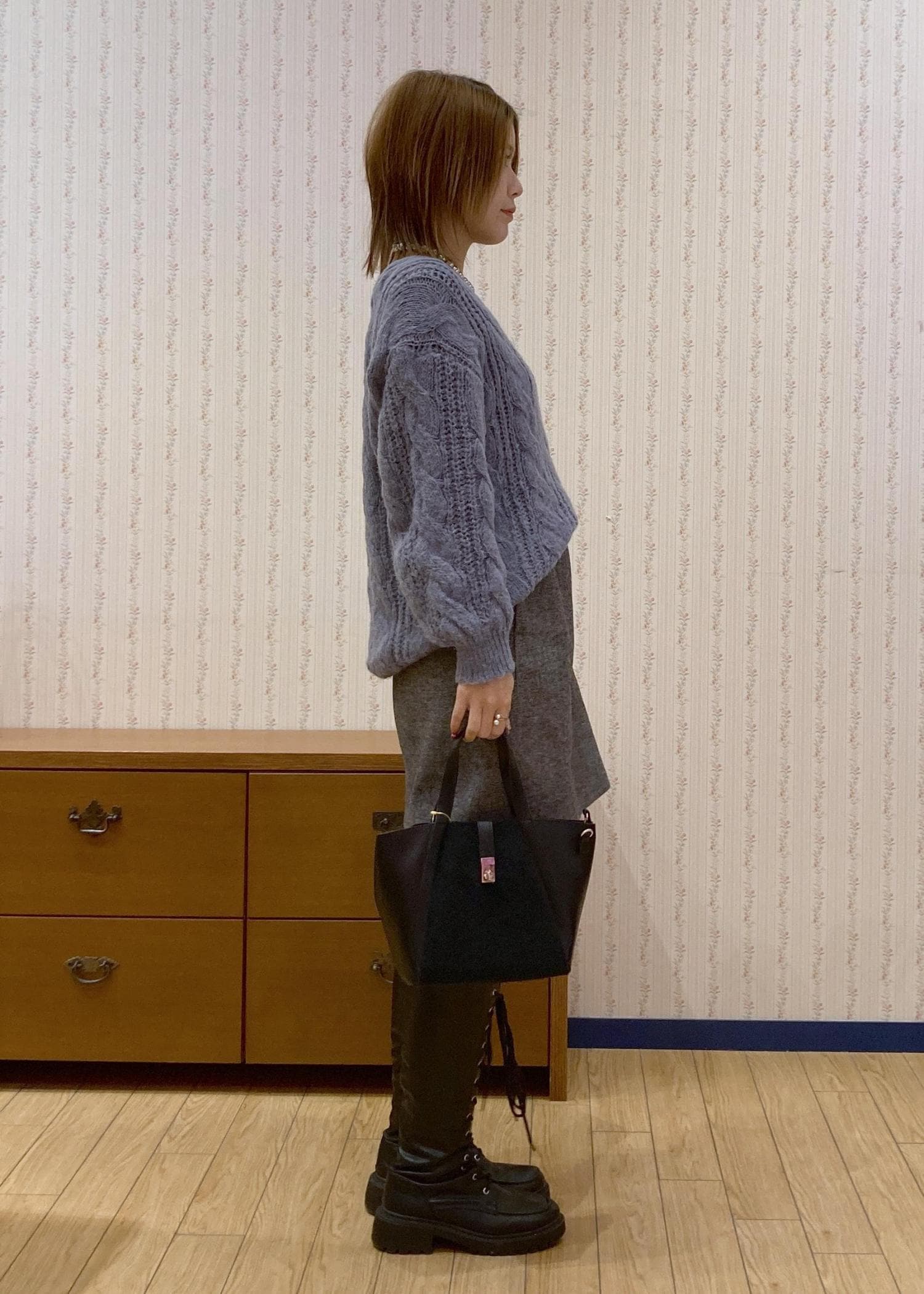Mサイズで脛あたりの着丈なのでミドル丈のブーツとの相性がよかったです。