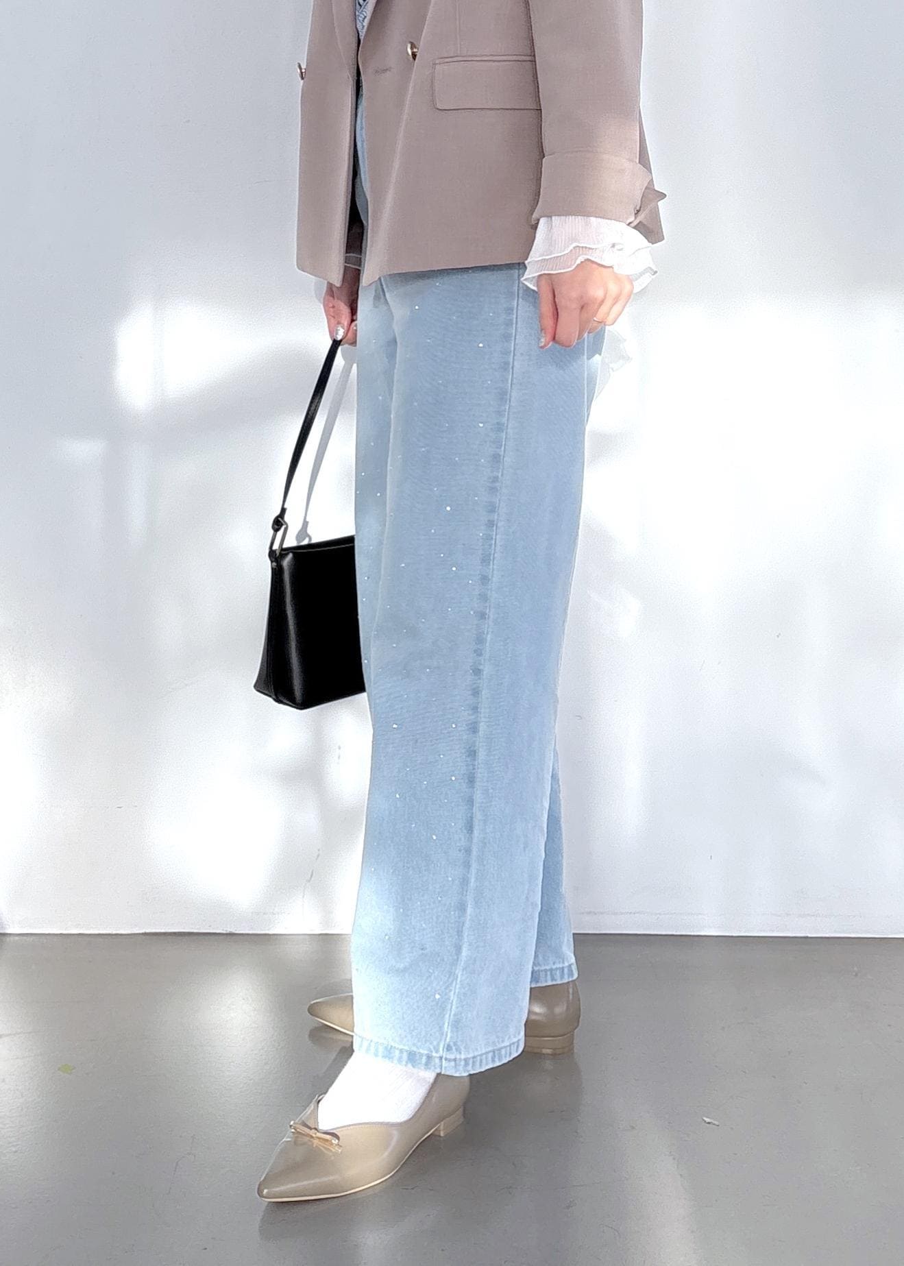 コーディネートに馴染んでくれるキラキラ感がポイントのデニムパンツです。 -