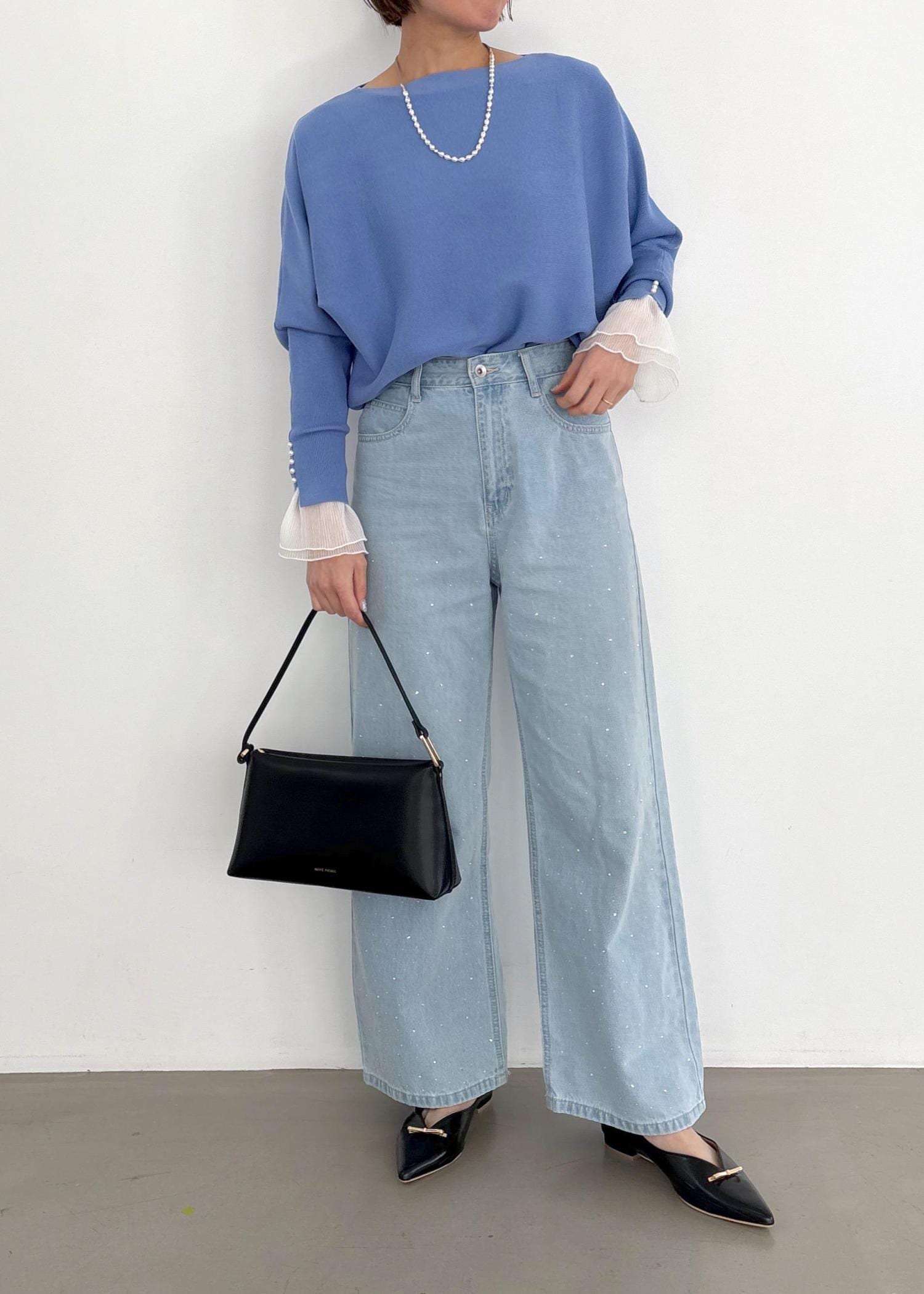 コーディネートに馴染んでくれるキラキラ感がポイントのデニムパンツです。 -