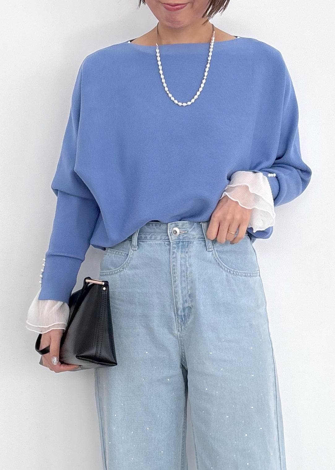 予約ROPÉ PICNICマシュマロ袖パールドルマンニット/イージーケア・リンクコーデブルー系 / F¥5,489レビューゆとりのあるシルエットで身体のラインを拾わず着用できました。着丈は腰にかかるほどの長さです。