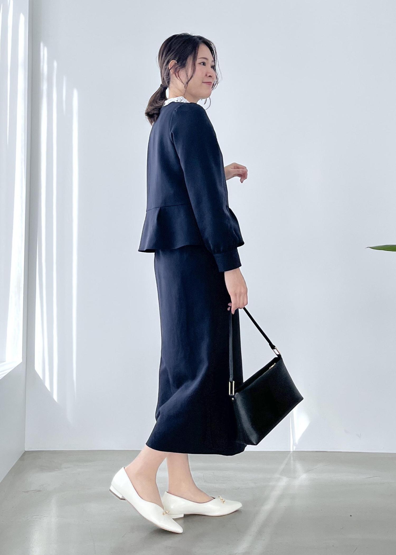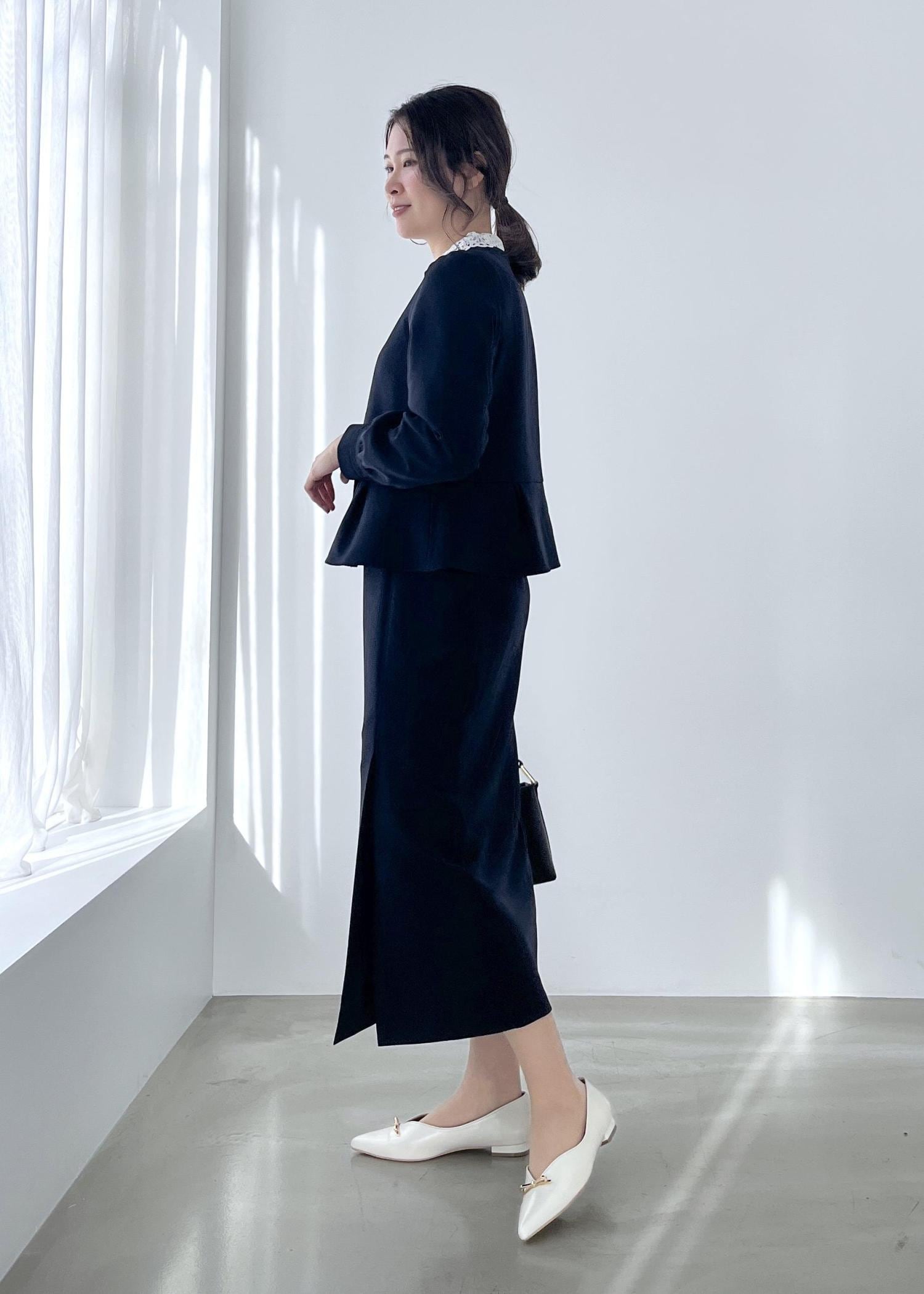 ペプラムデザインはウエスト位置あたりでスタイルアップ効果あり。