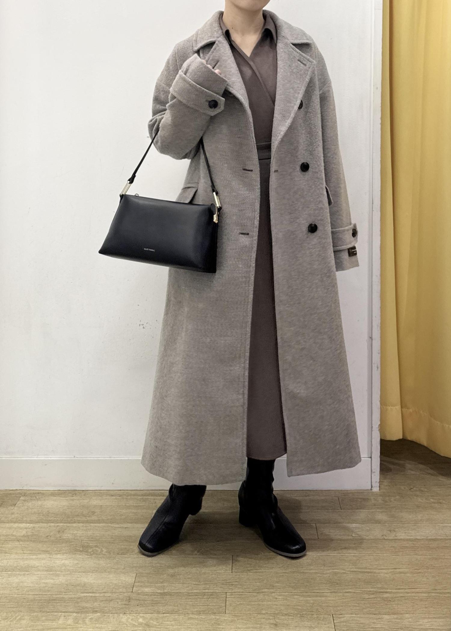 ワンピースとアウターをワントーンにまとめて、小物はブラックでまとめてメリハリのある印象に☺︎