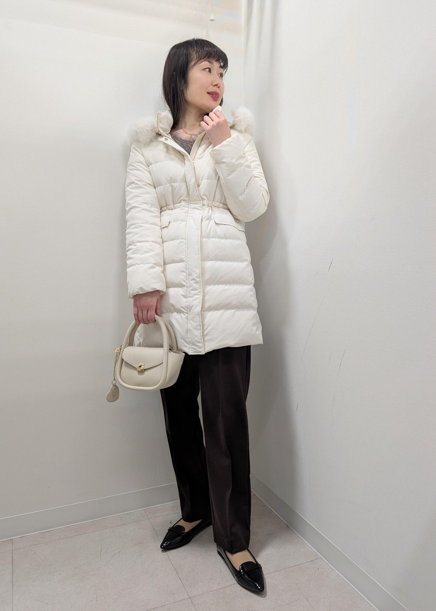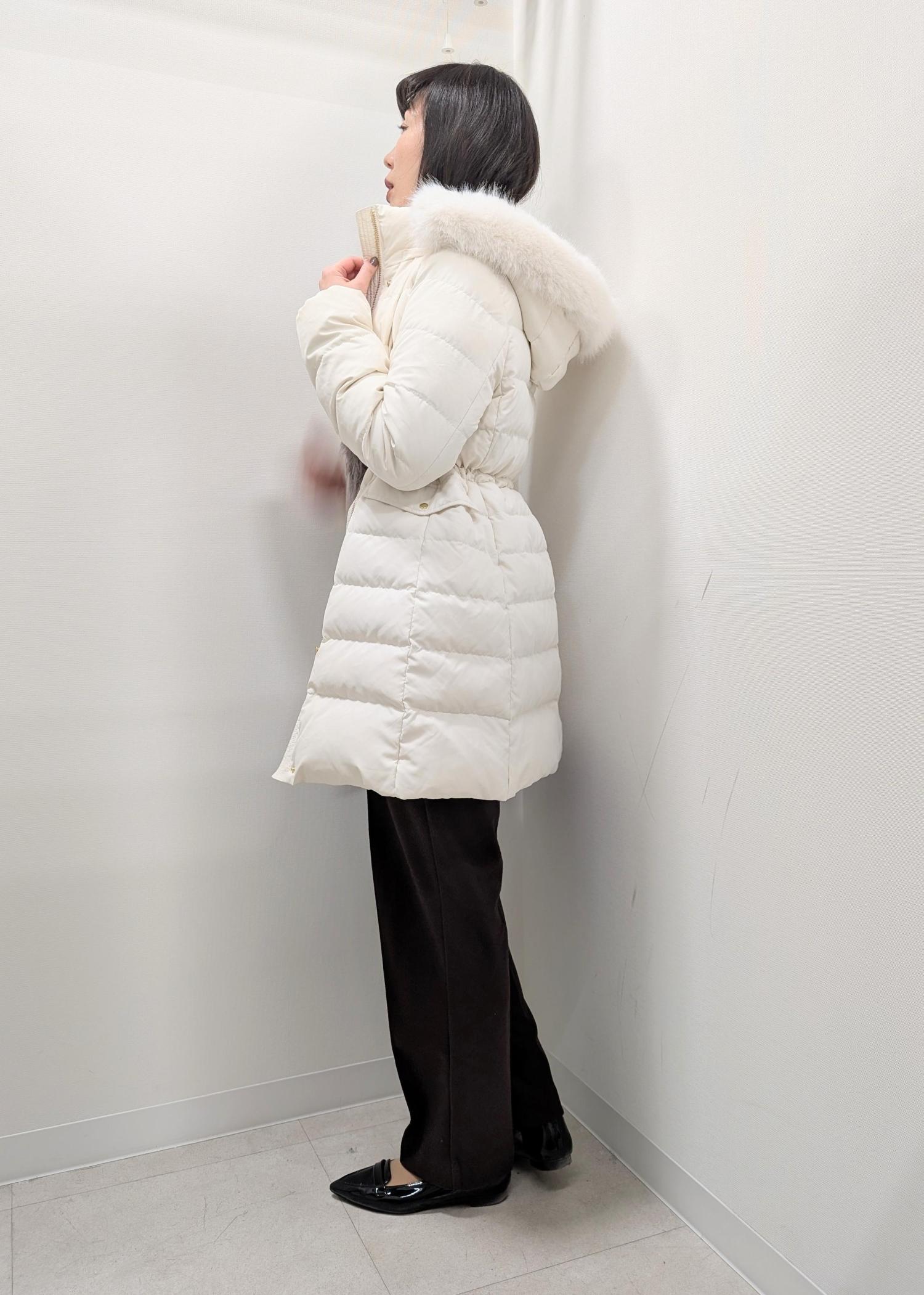 ROPÉ PICNIC【GREEN DOWN/グリーンダウン】ファー付きダウンロングコート/一部WEB限定カラーオフホワイト / S¥19,800レビュー肩幅、身幅ともにスッキリしたサイズ感ですが、アームホールが広めなので窮屈感はないです。