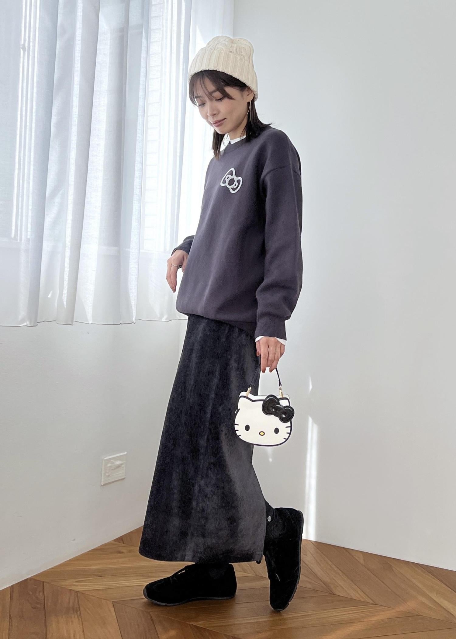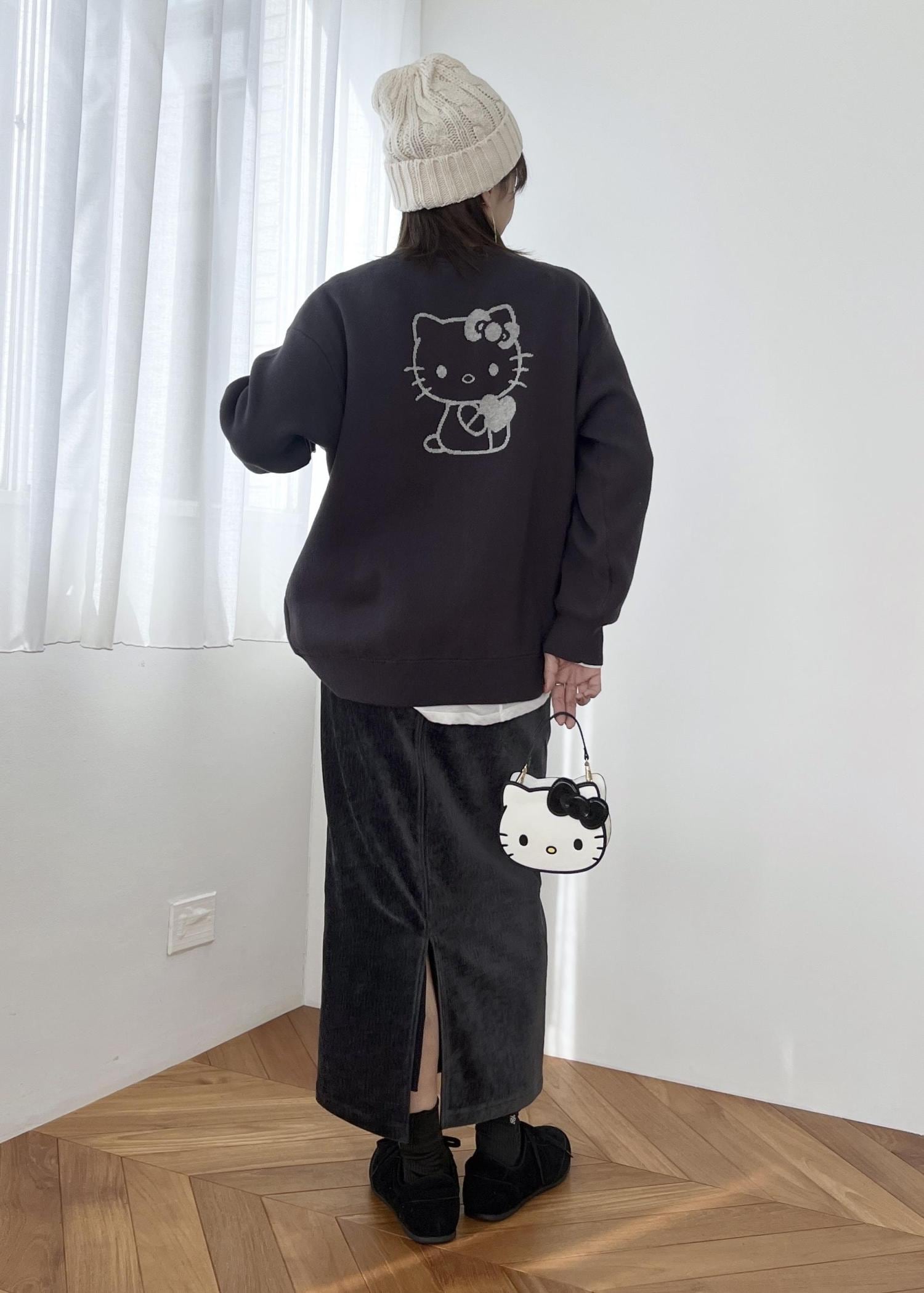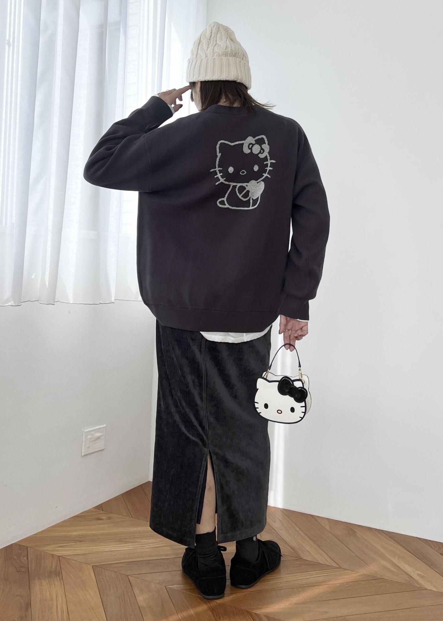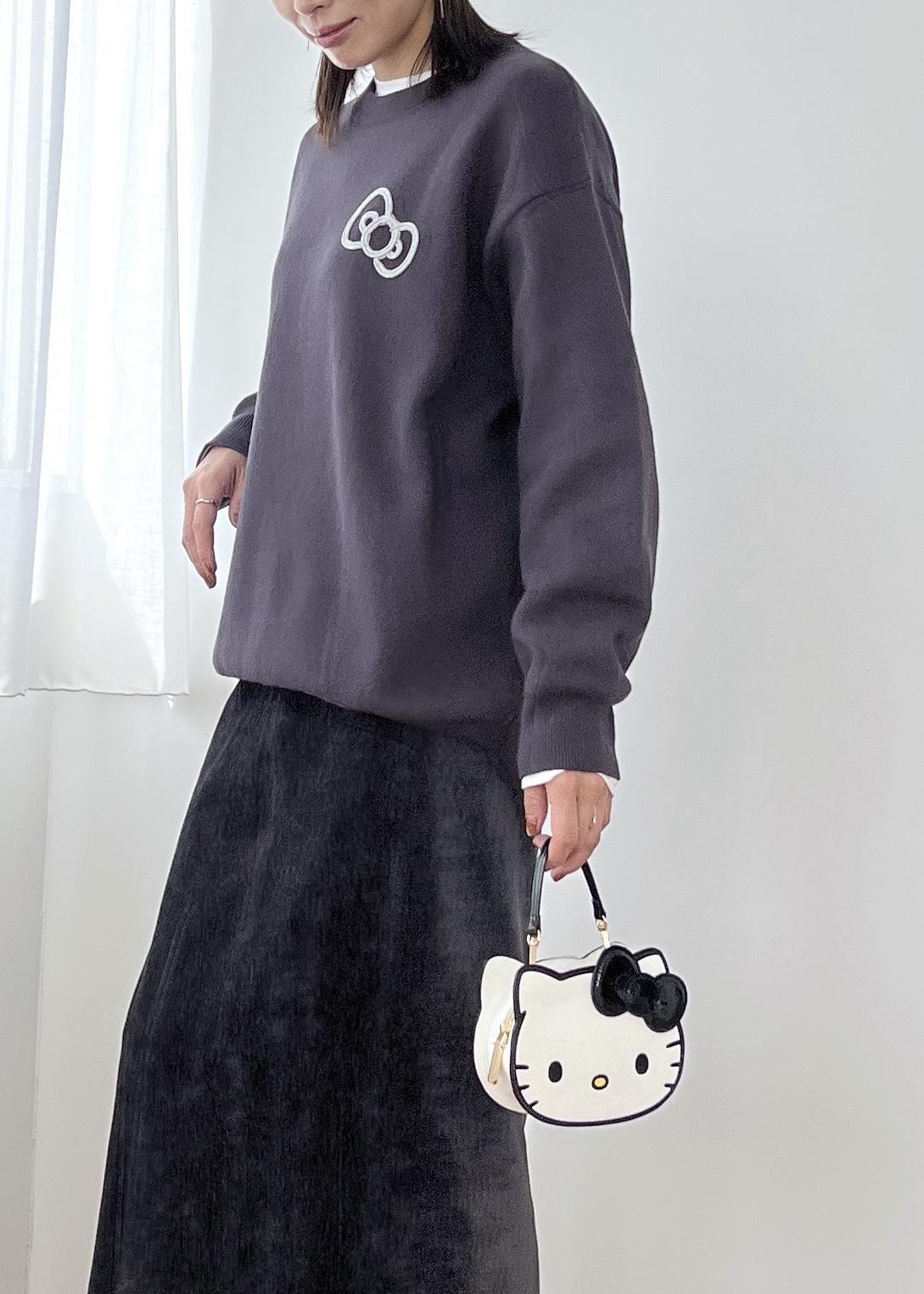 カジュアルなスタイリングでもワンポイントになる、ハローキティのお顔デザインのバッグも◎