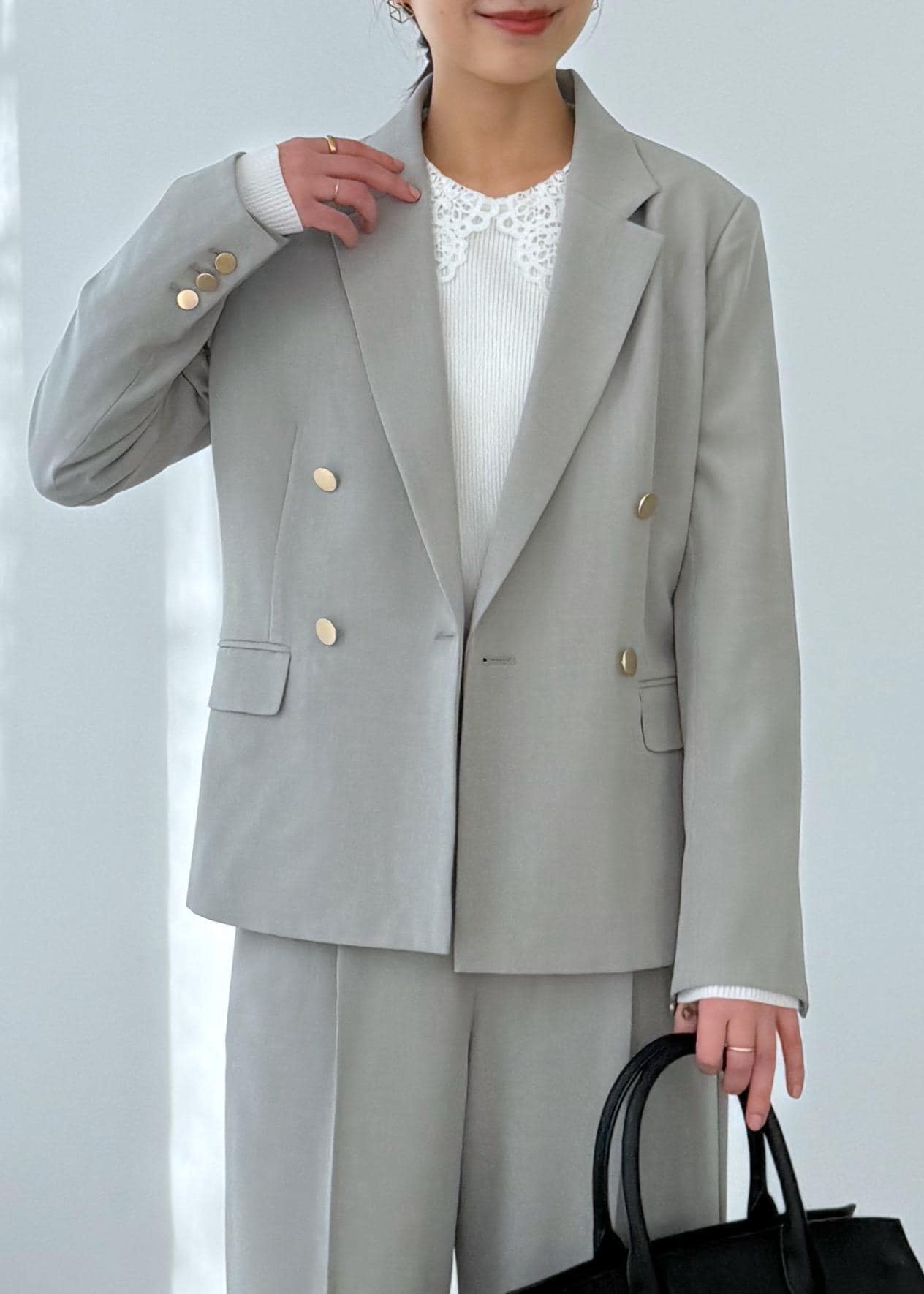 NEW! 予約ROPÉ PICNICクリアツイル金ボタンジャケット/セレモニー・セットアップ対応グリーン系 / M¥8,998レビューグリーン系表記ですが実際はライトグレーのような肌馴染みのいい色合いです。軽く、ゆとりのあるサイズなのでストレスなく着やすいです。着丈は腰が隠れ、お尻に掛かる長さ。マットな金ボタンなのでさり気ない華やかさがあります。