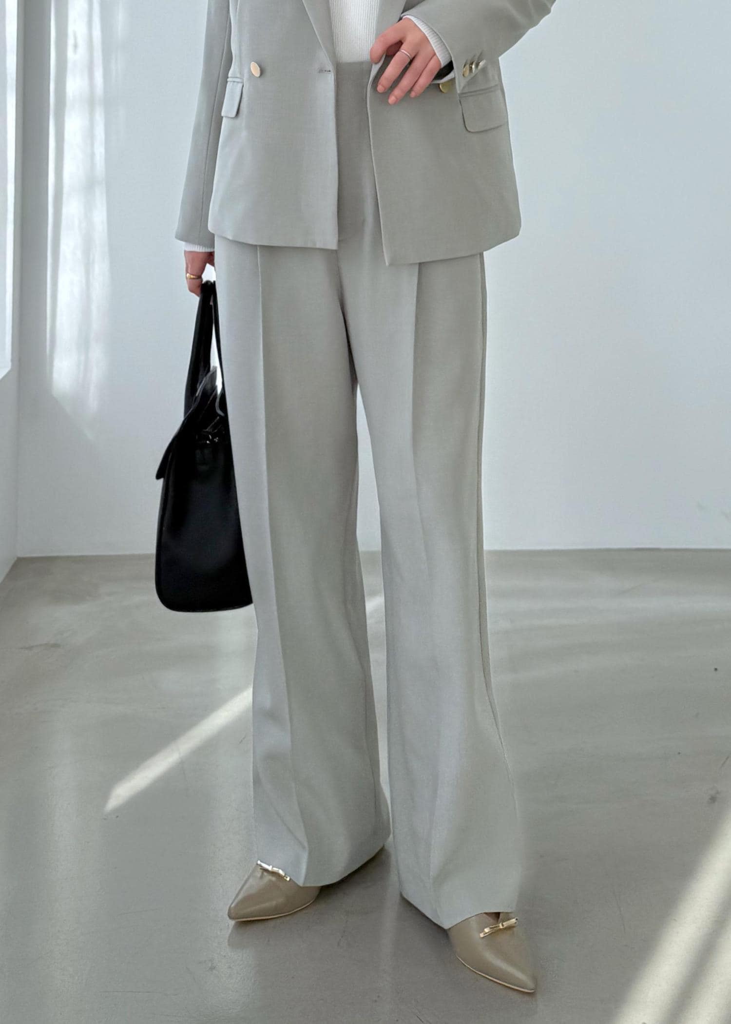 NEW! 予約ROPÉ PICNICクリアツイルワイドパンツ/セレモニー・セットアップ対応グリーン系 / M¥5,995レビューグリーン系表記ですが実際はライトグレーのような肌馴染みのいい色合いです。サラッとした表面感で爽やかさのある生地です。サイドベルトでウエスト調整が出来ます。Mサイズで足の甲に少し触れる長さでした。