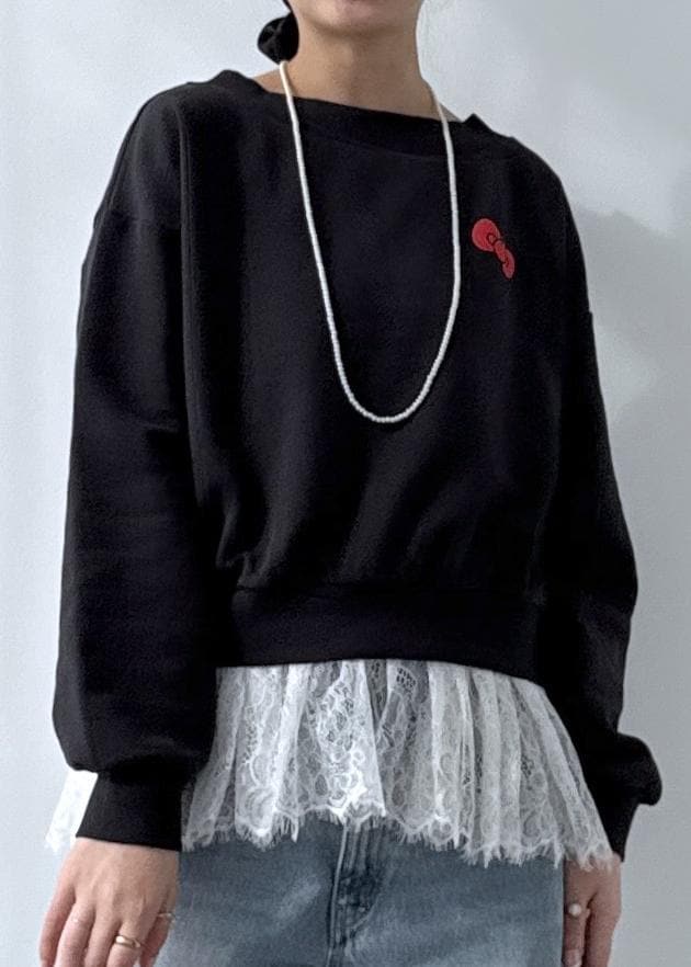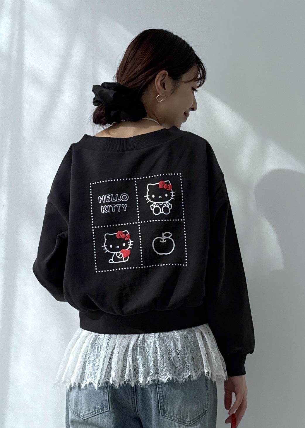 NEW! 予約ROPÉ PICNIC【ROPE' PICNIC×ハローキティ】ボートネック裏毛プルオーバーチャコール / F¥5,489レビューボートネックなので意外と子供っぽくならずオトナ世代も挑戦しやすい。腰上〜ちょうど腰に掛かる着丈。シャツやレースなどレイヤードスタイルも楽しめます♪夏以外は合わせ方次第で長く着られる素材なのも嬉しいポイント◎