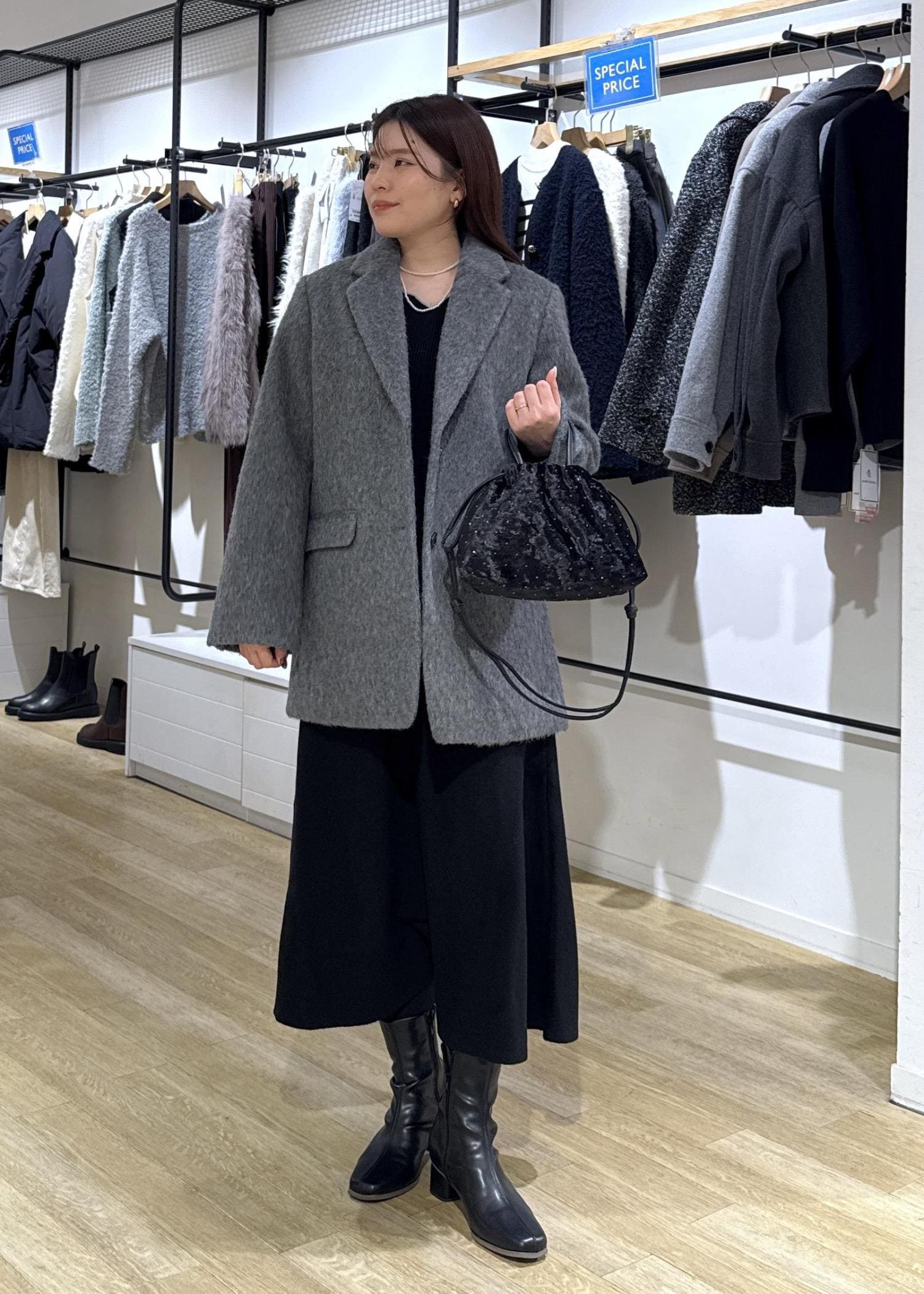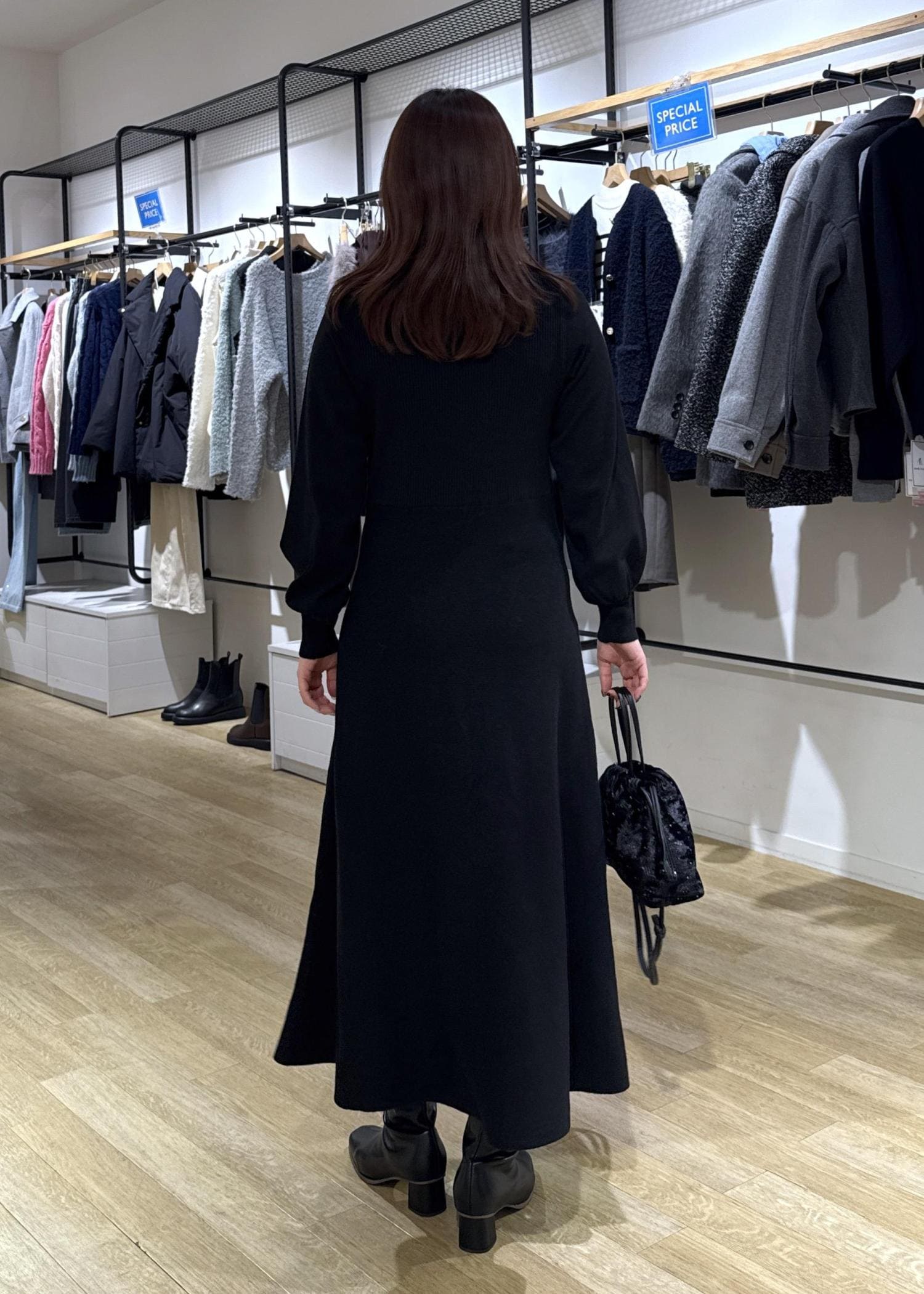 ジャコット×ニットワンピースのきれいめコーデ