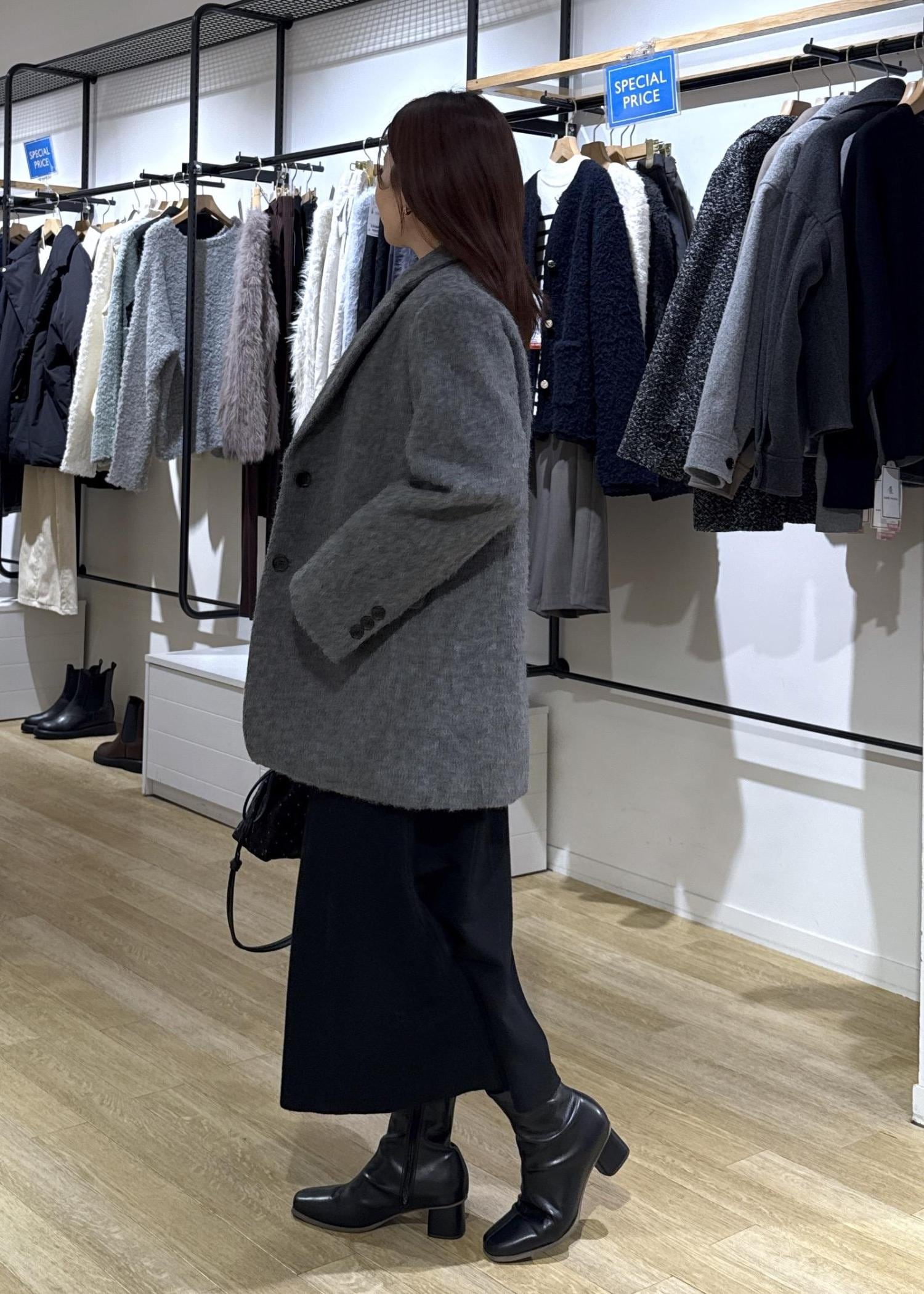 着丈とほどよく着込めるゆとりはありますが、肩落ちのデザインではないのできれいめカジュアルに使えるジャケットコートです。