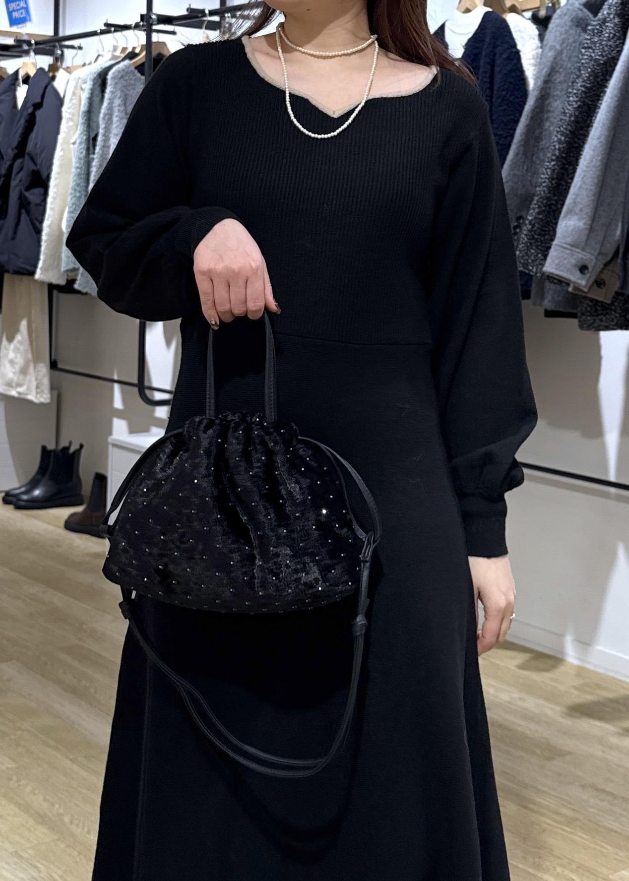 ROPÉ PICNIC PASSAGE2WAYハンドル シャイニーベロアパースバッグブラック / F¥3,072レビュー幅もあるので最低限の荷物は入ります。