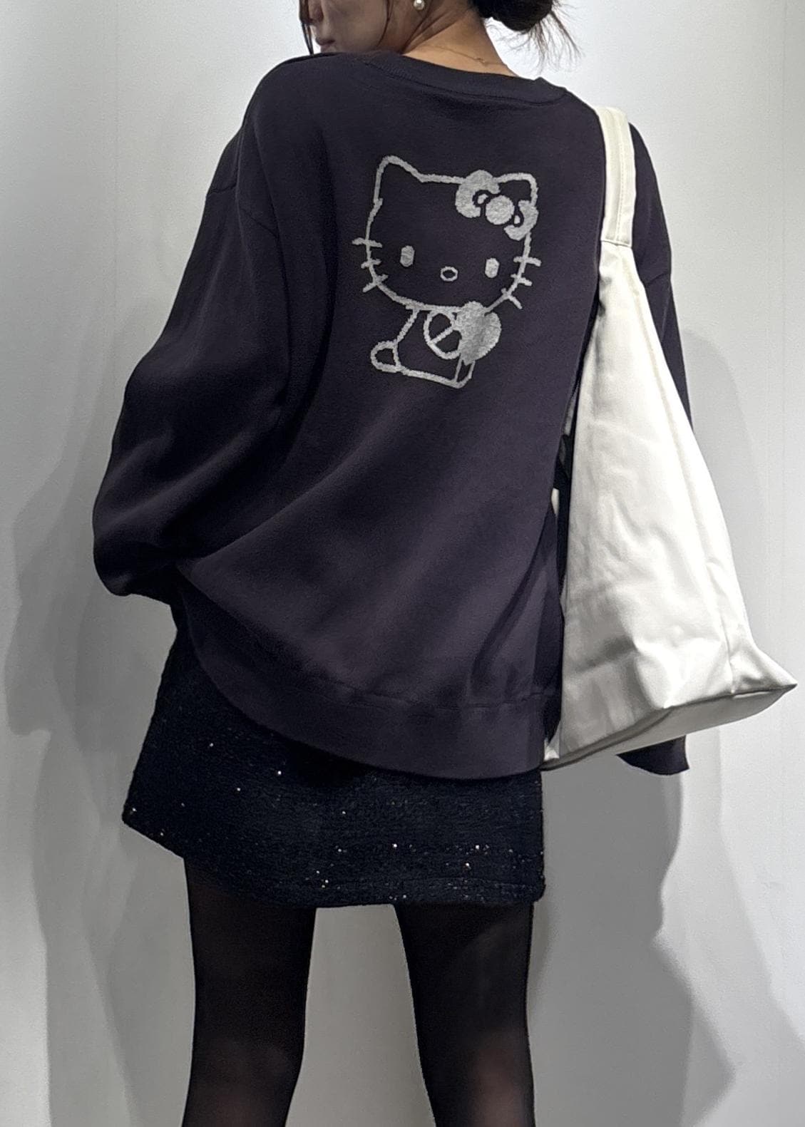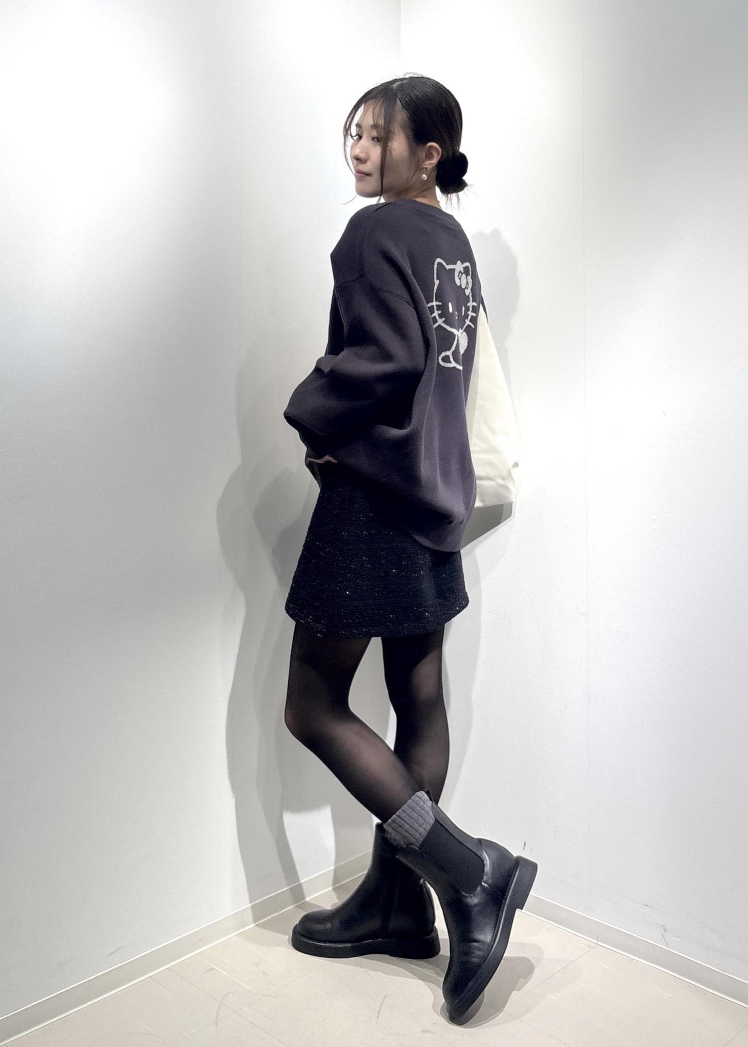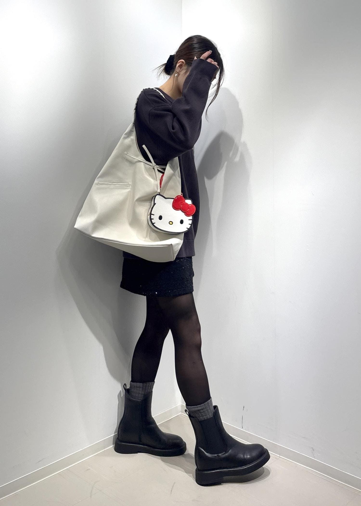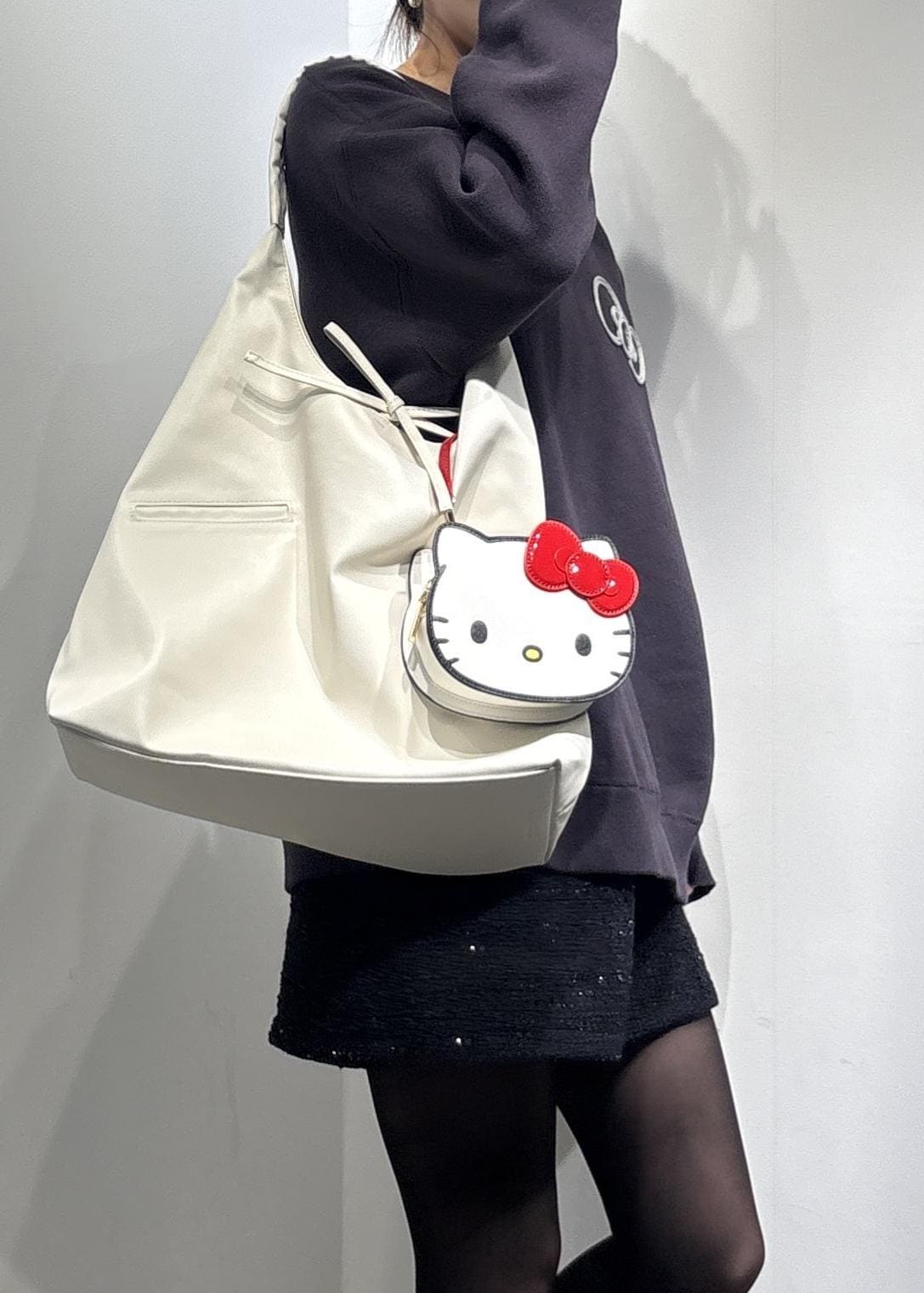 ハローキティのミニバッグがポイントになるブラックコーデです♩