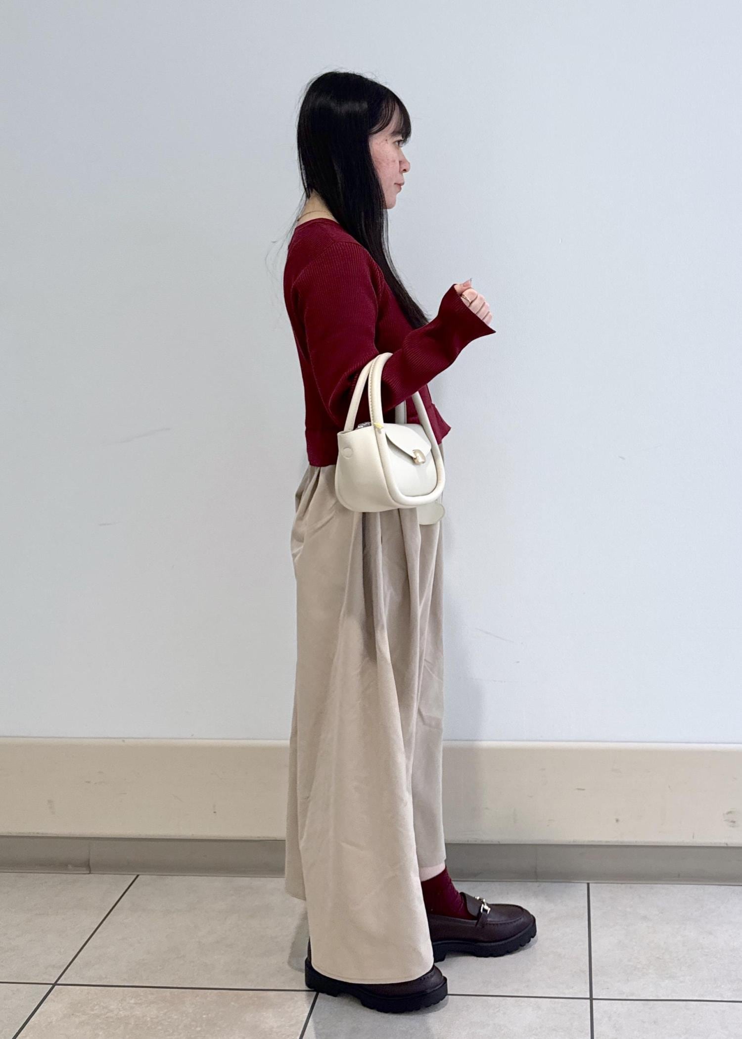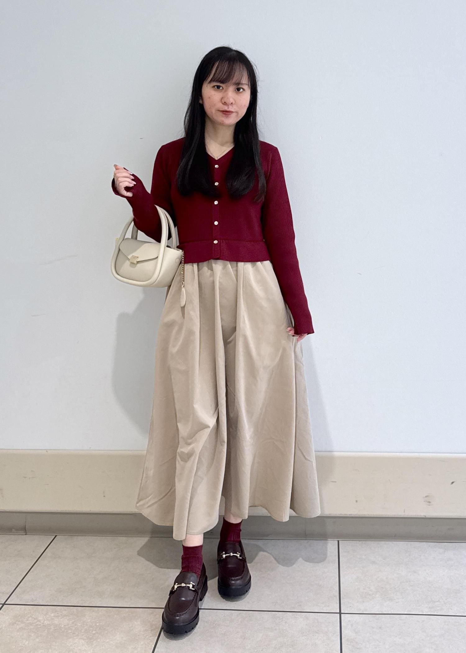 配色もブラウン×深めのレッドが冬らしさがあり、こちらのワンピース1枚でおしゃれな印象になります! -