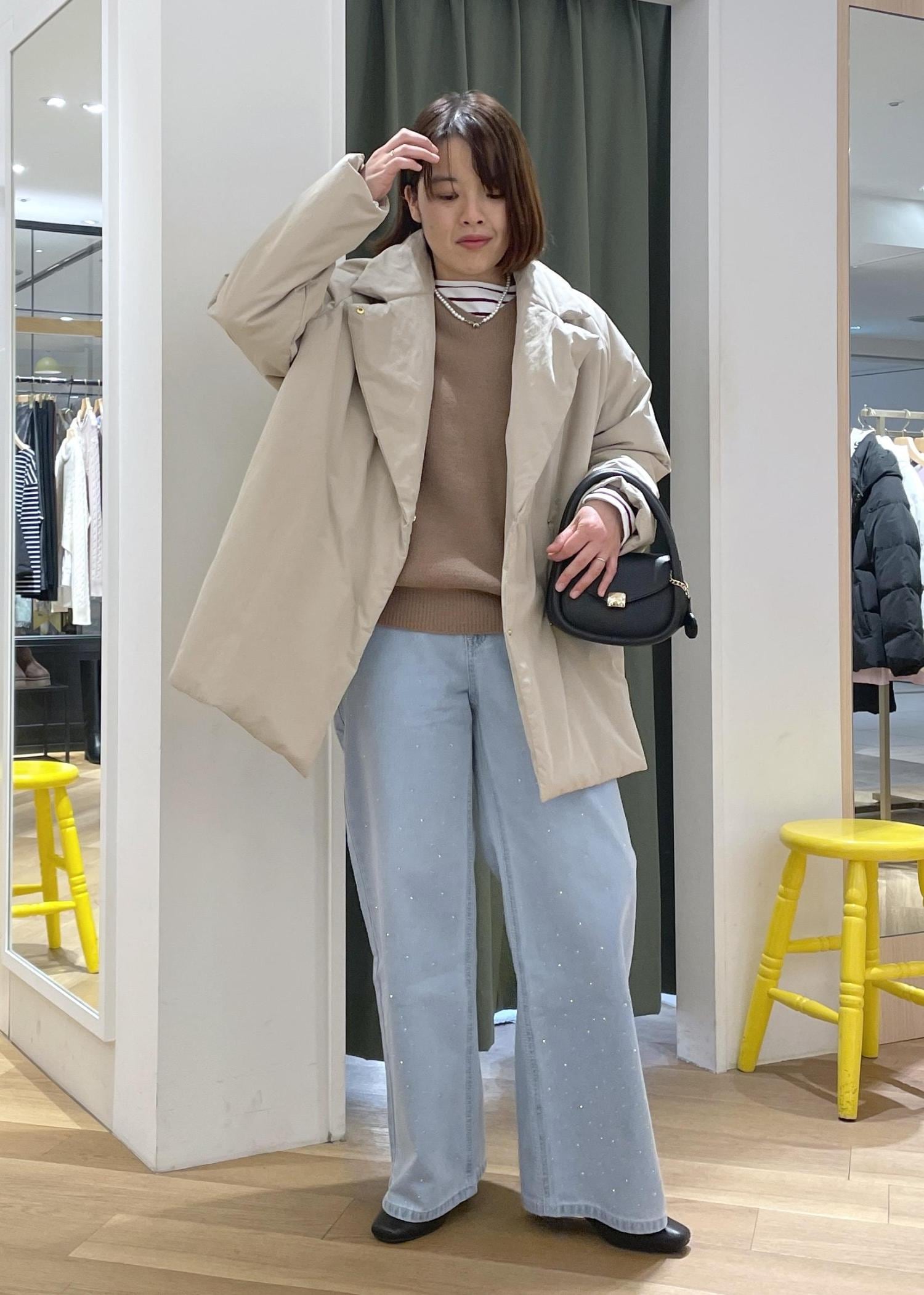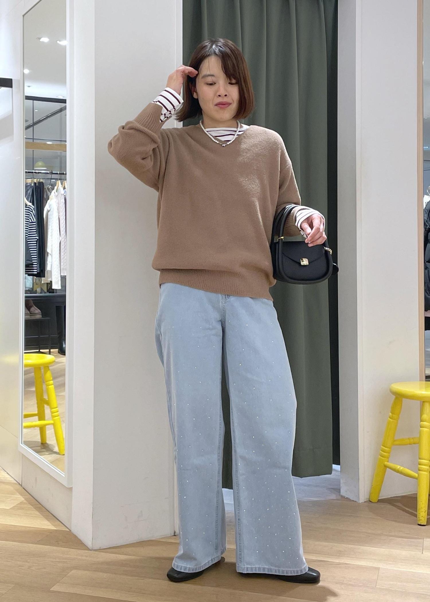 ニットのインナーにはボーダーを仕込んで、デニムはライトブルーを合わせて、少し春っぽい雰囲気をプラスしました!