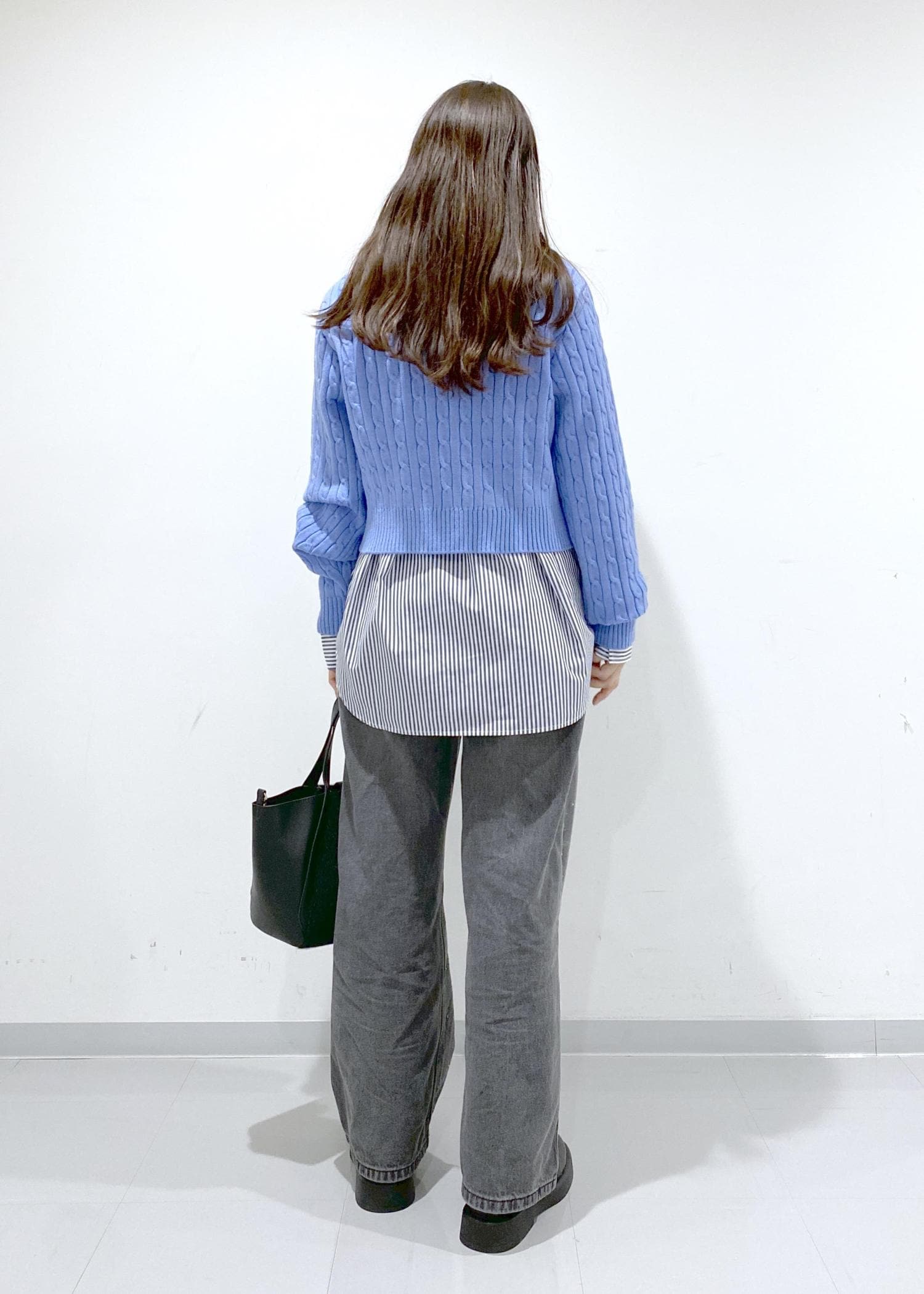 ケーブル編みで、ボディラインを拾いすぎない程よいゆとりがあります。